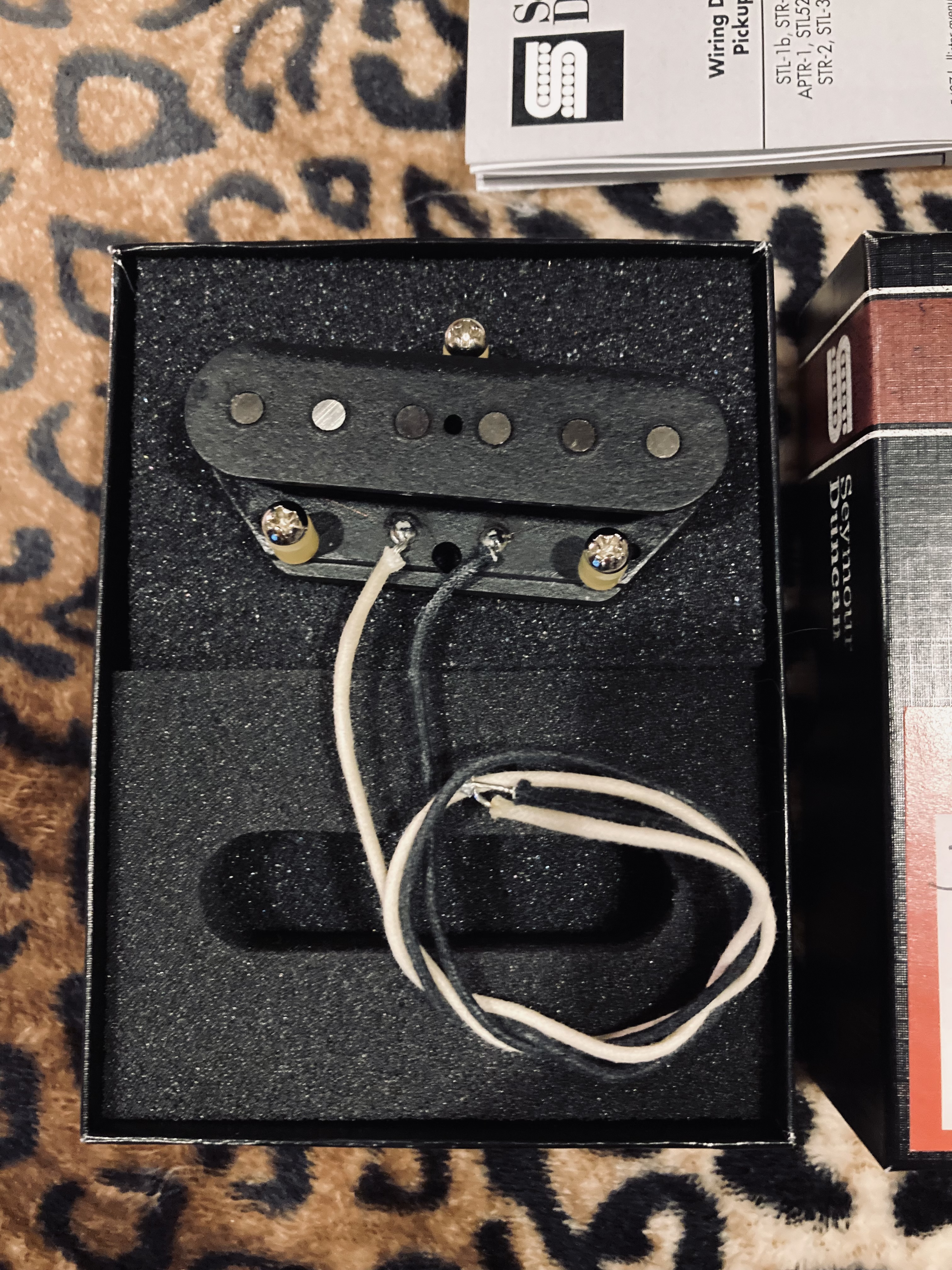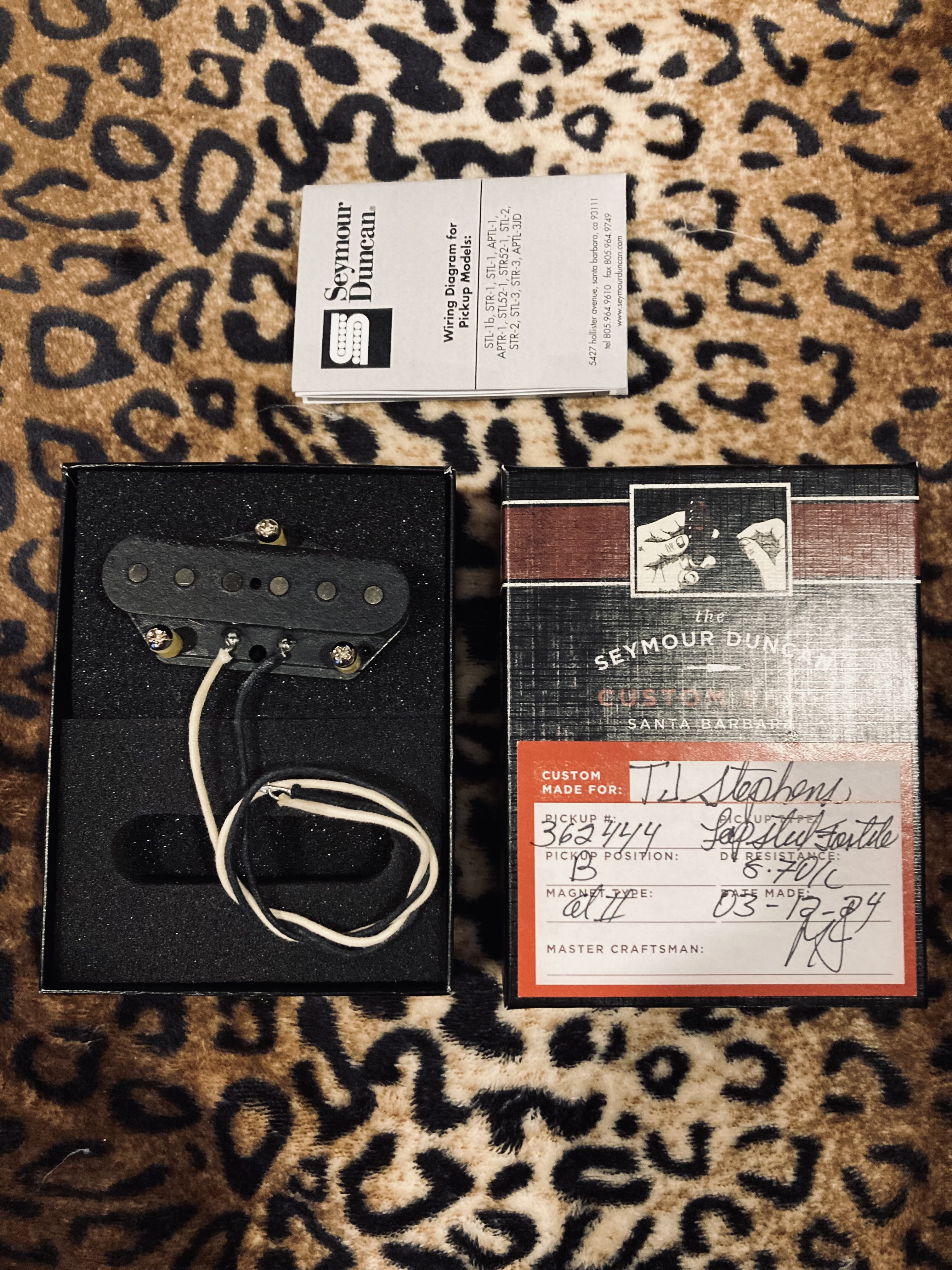 I had this badass custom shop Seymour Duncan Lapsteel pickup made to get as close to the Keith Richards tone and sound as possible. Unfortunately I have sold the guitar I had it in and I’m now, regrettably, letting it go to a new home. It kicks ass and I also asked for a mini humbucker that would complement in the tone to get some of the raunchy neck pickup stuff that Keith uses. I can do a deal on the pair if someone wants them, I can throw the pickguard in for free if you buy both too.