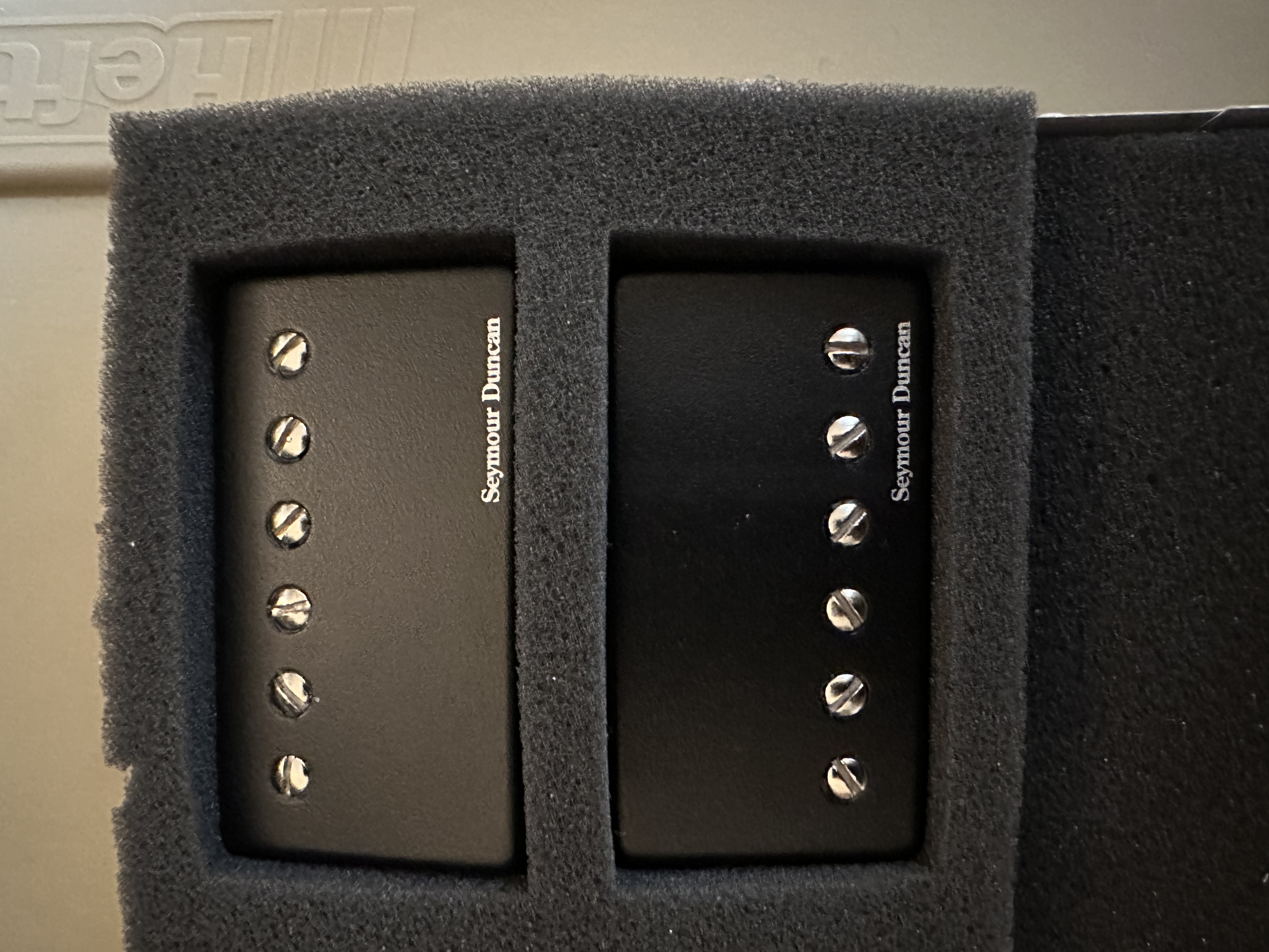 Up for grabs is a Seymour Duncan SH-11/PG-1 Custom Custom/Pearly Gates Black Covered Set.