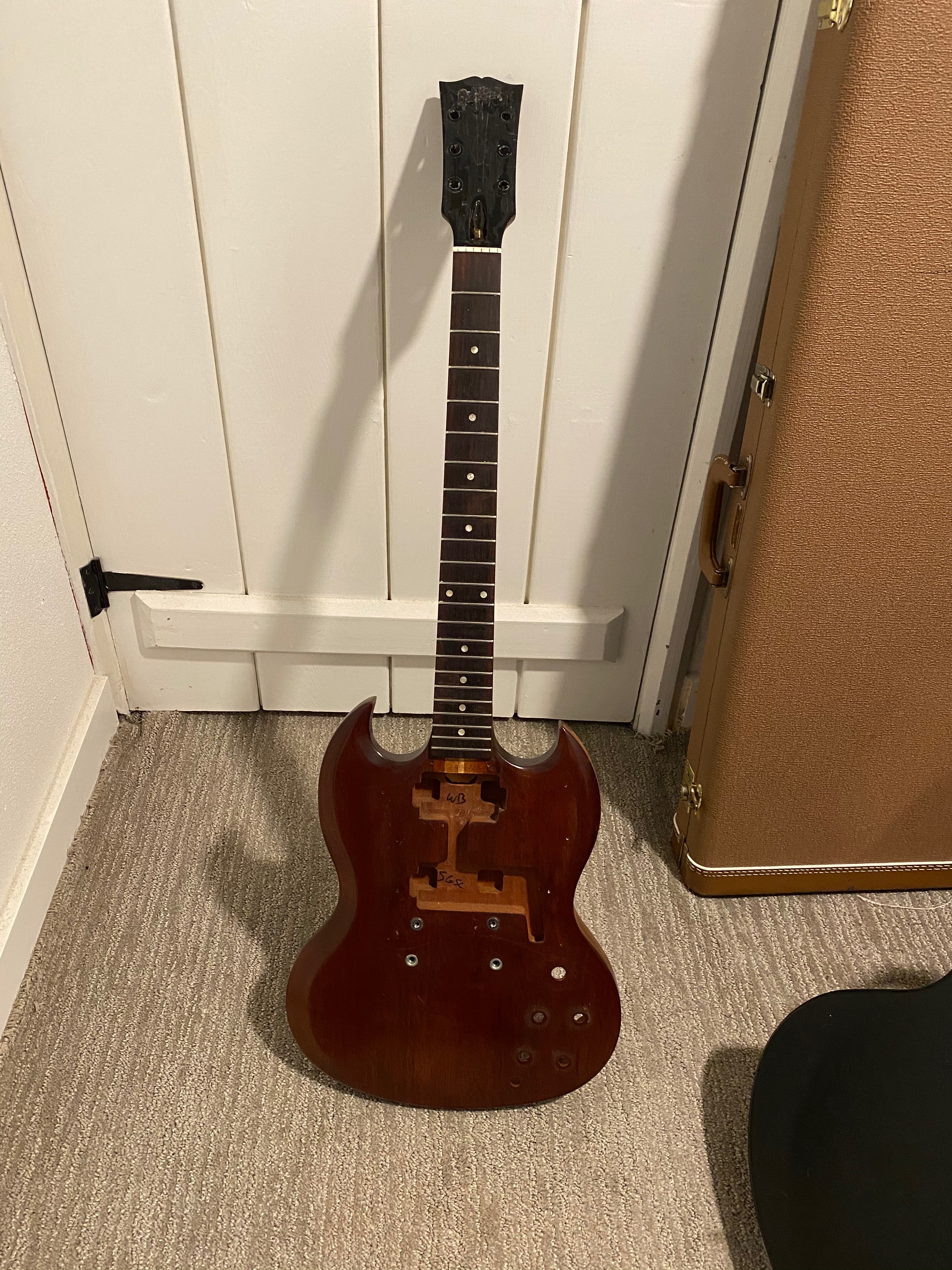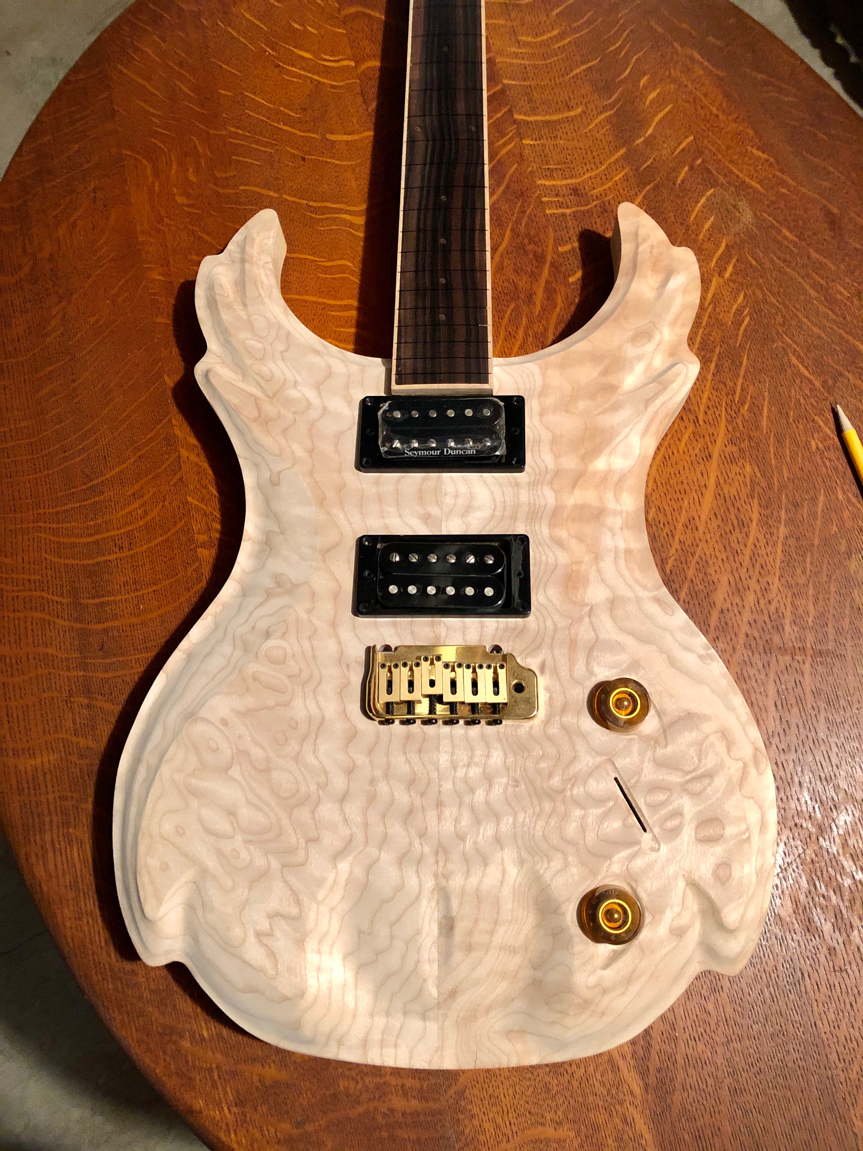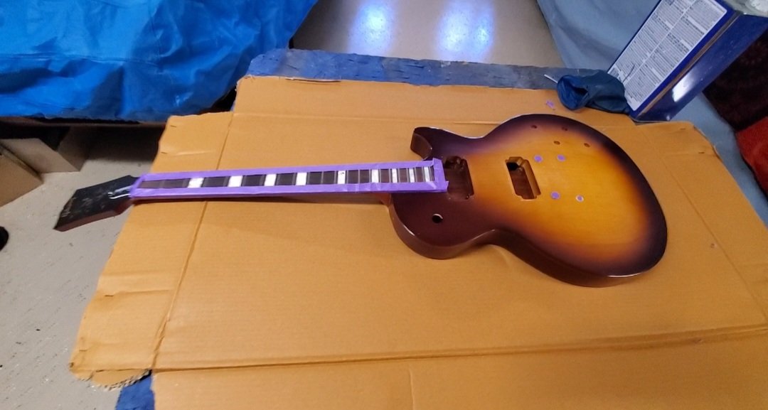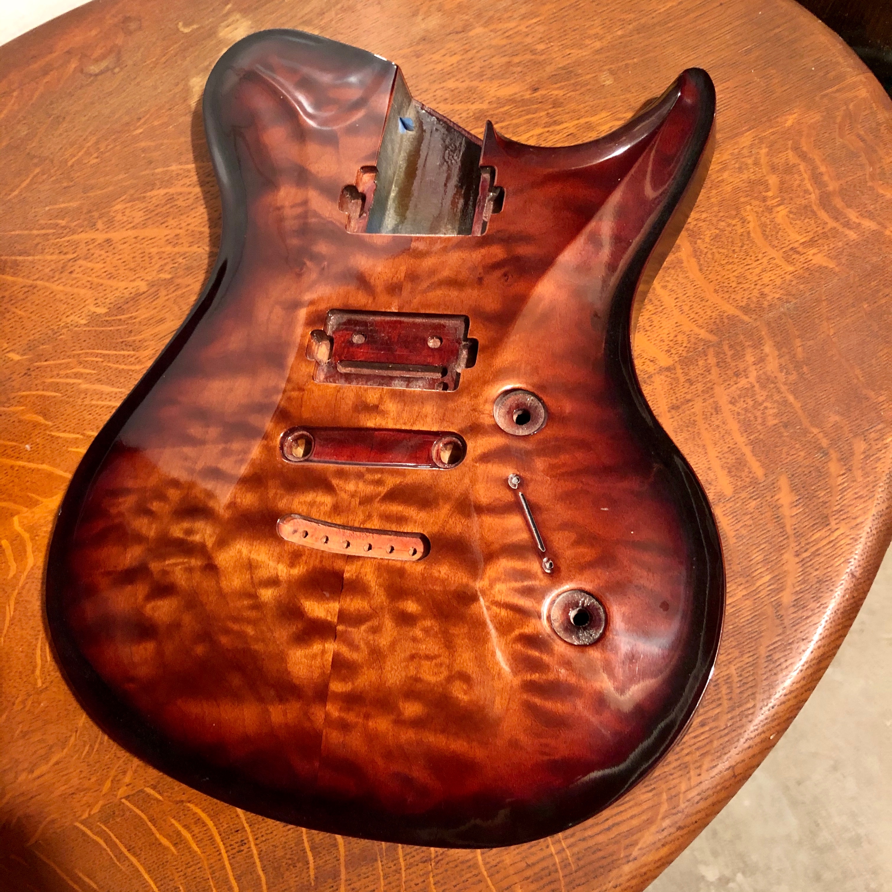 Body is pretty much ready. Just waiting for the neck to arrive next week and I’ll put on the decal, darken the board and it should be ready to rip.