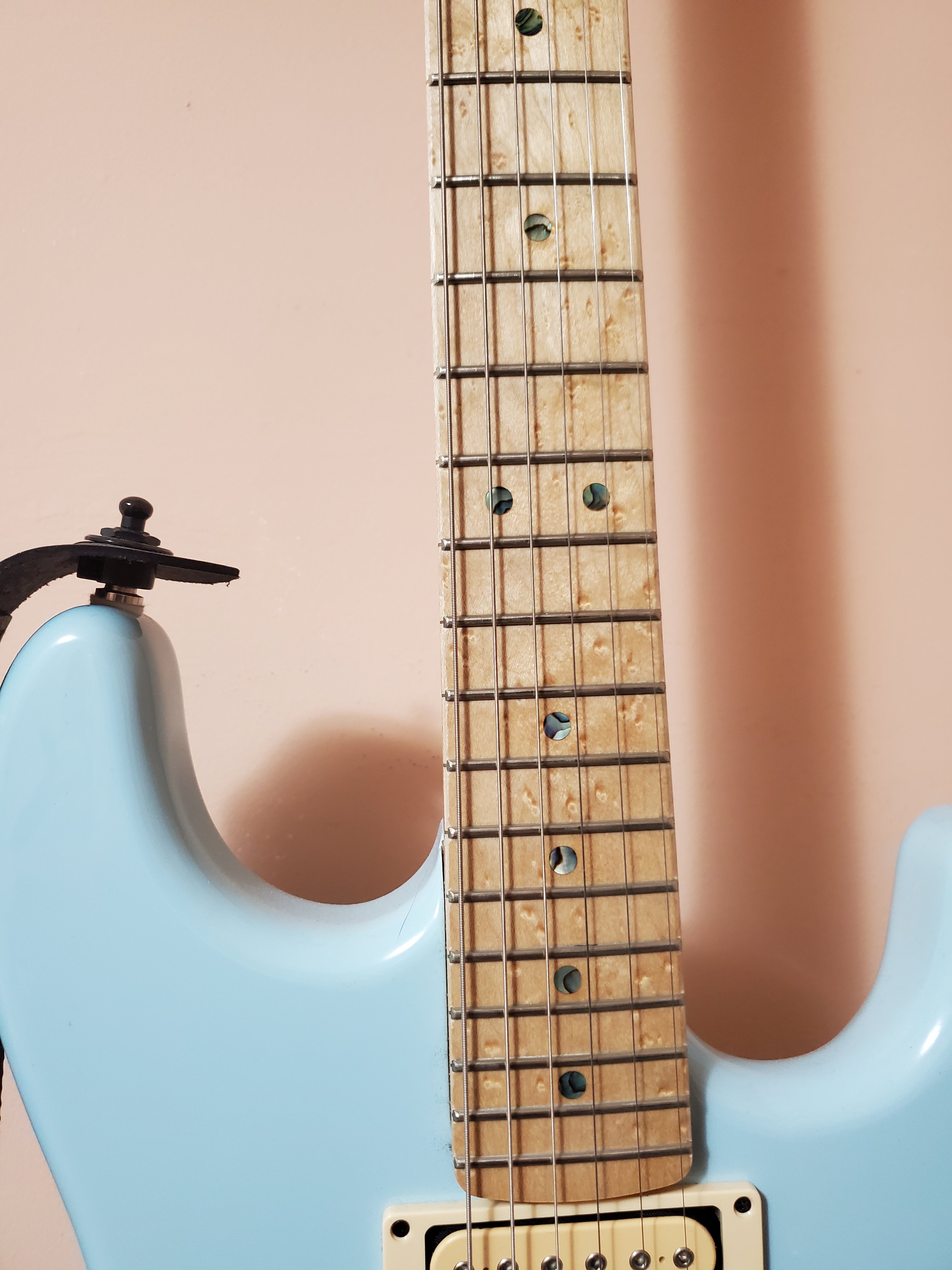 I'm not exactly sure but I think after Grover sold to IMC, Charvels were still made in Japan in the early 90s..Toothpaste logos etc. The Jackson line was still profitable so the custom shop US/production line still put out Soloists, RR, King Vs, DK1s etc. My guess is that in 94-96, USA shop managers decided to do a Charvel run, with the SD1-4s. The Japanese line did the same with their versions MIJ. That would explain the closer in similarity to Jacksons with 24 frets, recessed Floyds, etc vs a traditional Charvel USA with top mount Floyds, 22 frets etc. Easier to do a more Jackson-like Charvel reissue since they're already doing 24 frets etc. Just my guess anyway.