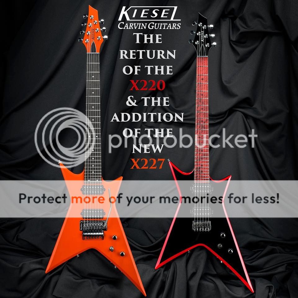 "X220 is back, this popular 90's era model is now available again. With it addition we have also made a 7 string version called the X227. Both models are standard with Hipshot Products Inc bridges and are available with optional "Official" Floyd Rose bridges.