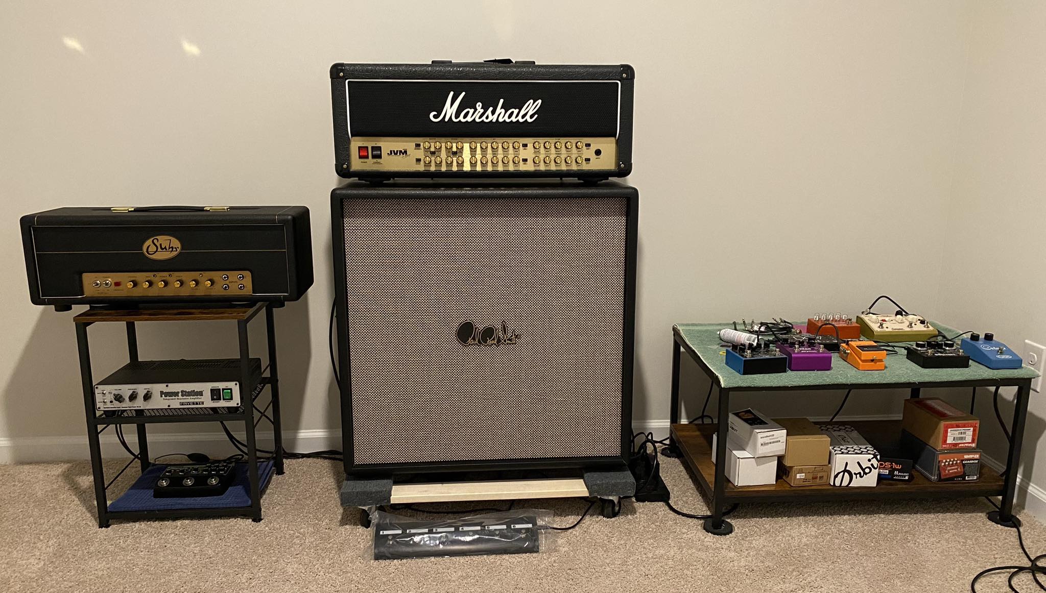 I love the sound of a Strat thru a gained up Marshall or Marshall based amp . Gary Moore got some great tones back in the day with the Strat/Marshall comboI'm not a good clip-maker! I use Strats, I don't play 80s rock or metal. Anyway, at the moment I'm dialing in my new JVM410H I wasn't planning on buying, but Sweetwater had 1K off, plus I saved additional on the Tax.