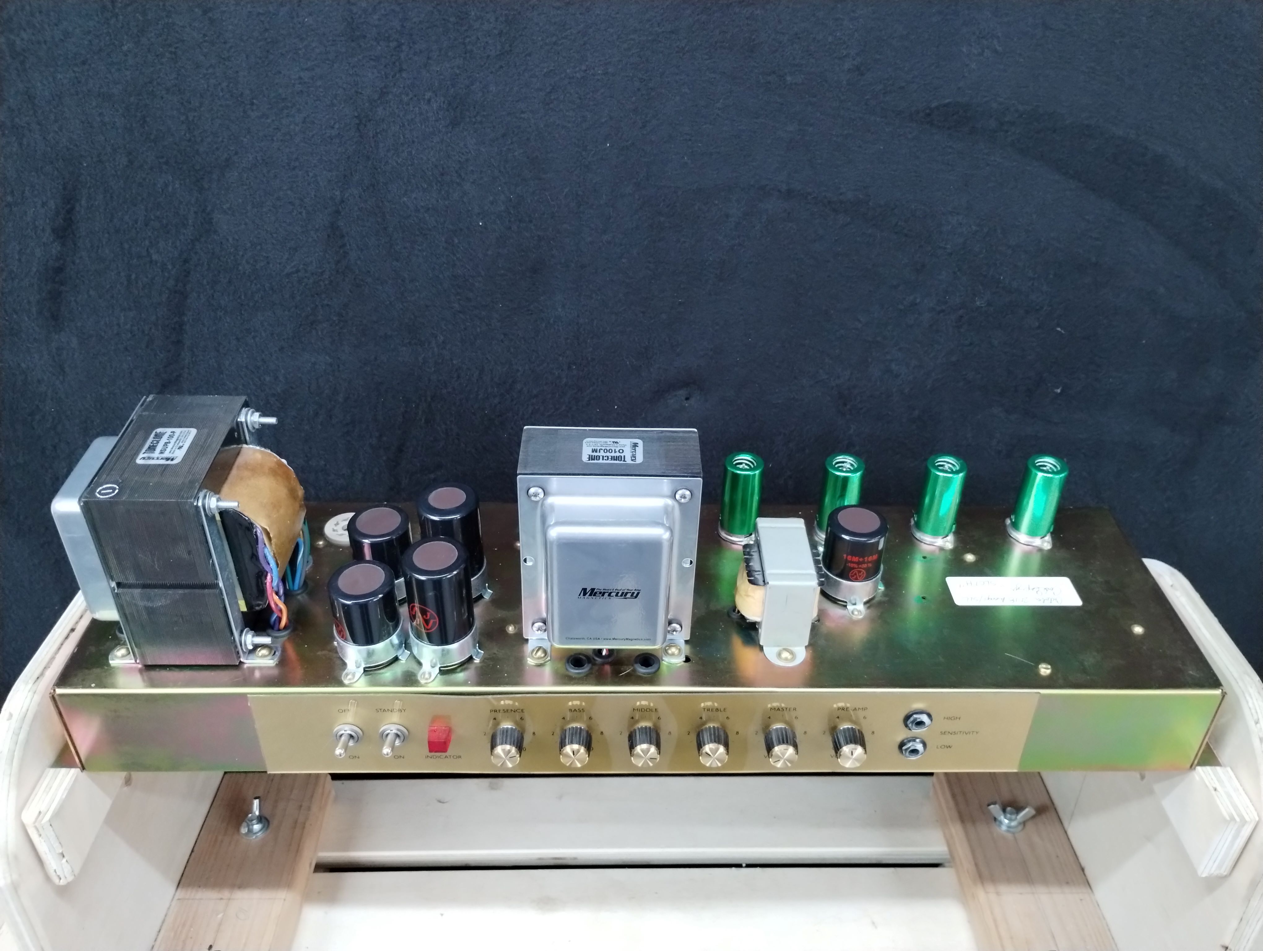 The thread on Fusionbear and his amps, got me to thinking about taking some pictures of mine for posterity. Also, when I received it, it only had one end bell on the transformer and it's been really bugging the OCD in me. ?