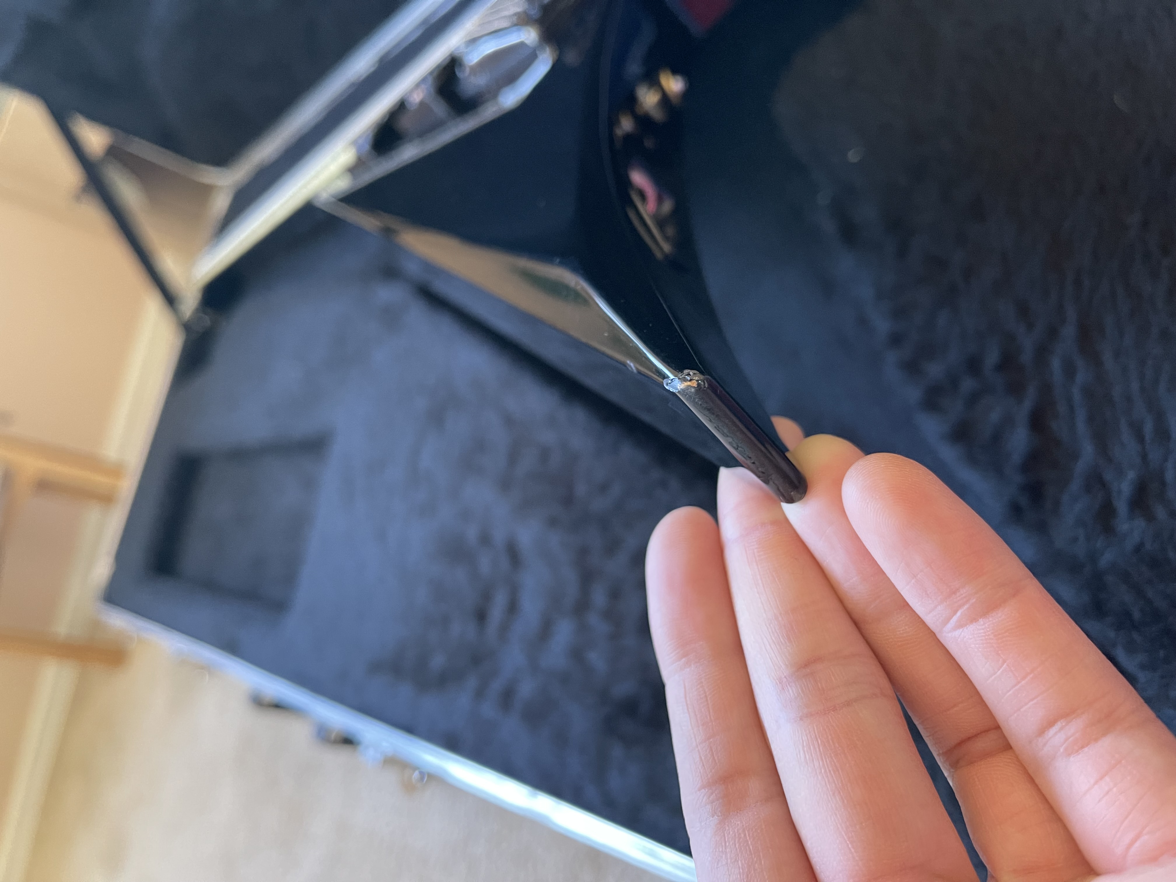 This guitar plays well and has been used by the orginal owner before me and very little playtime from myself. Everything is original, minus the tuners. Minor dings on each tip of the wing and a minor clear coat defect on the headstock. All pictured below.