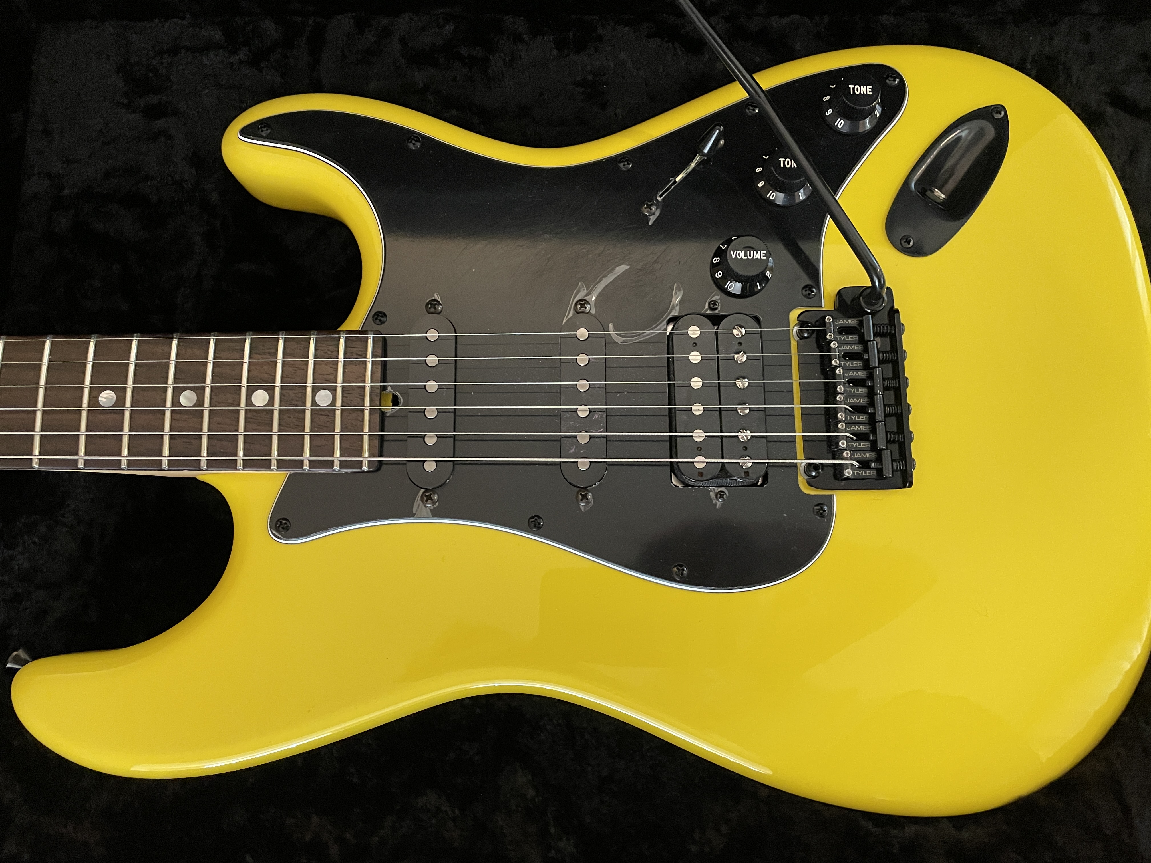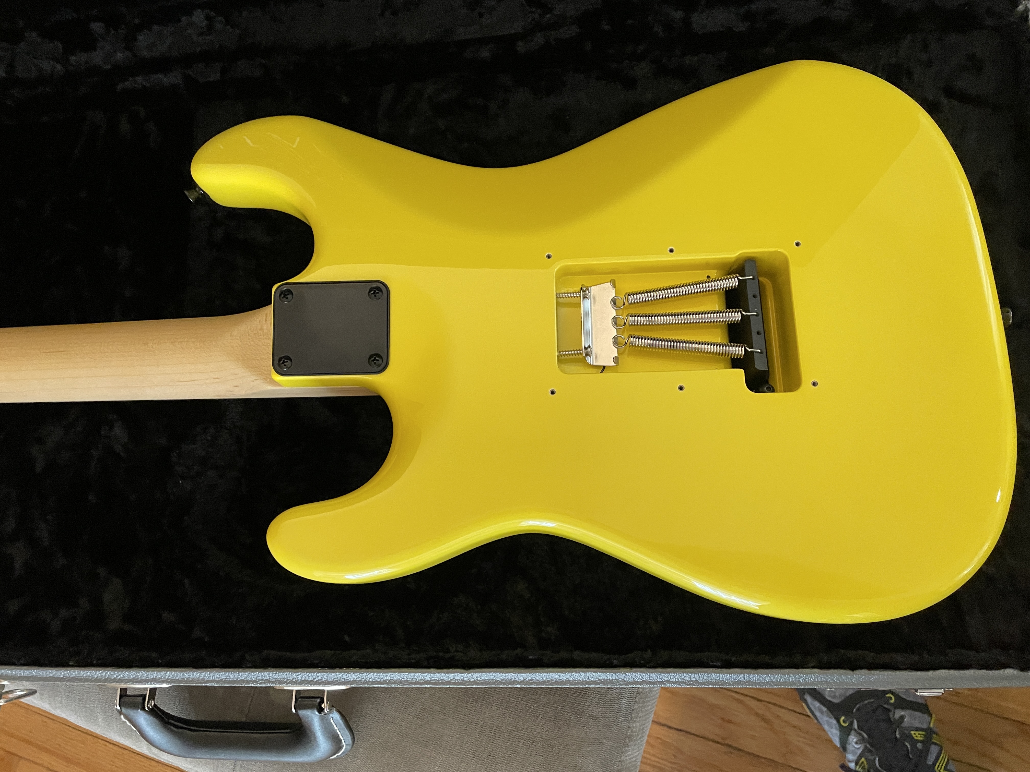 Excellent condition. Still has plastic on pickguard & trem cover (not shown but included). Cool Fly Yellow with matching headstock. No wear. $4600 CONUS. No trades.