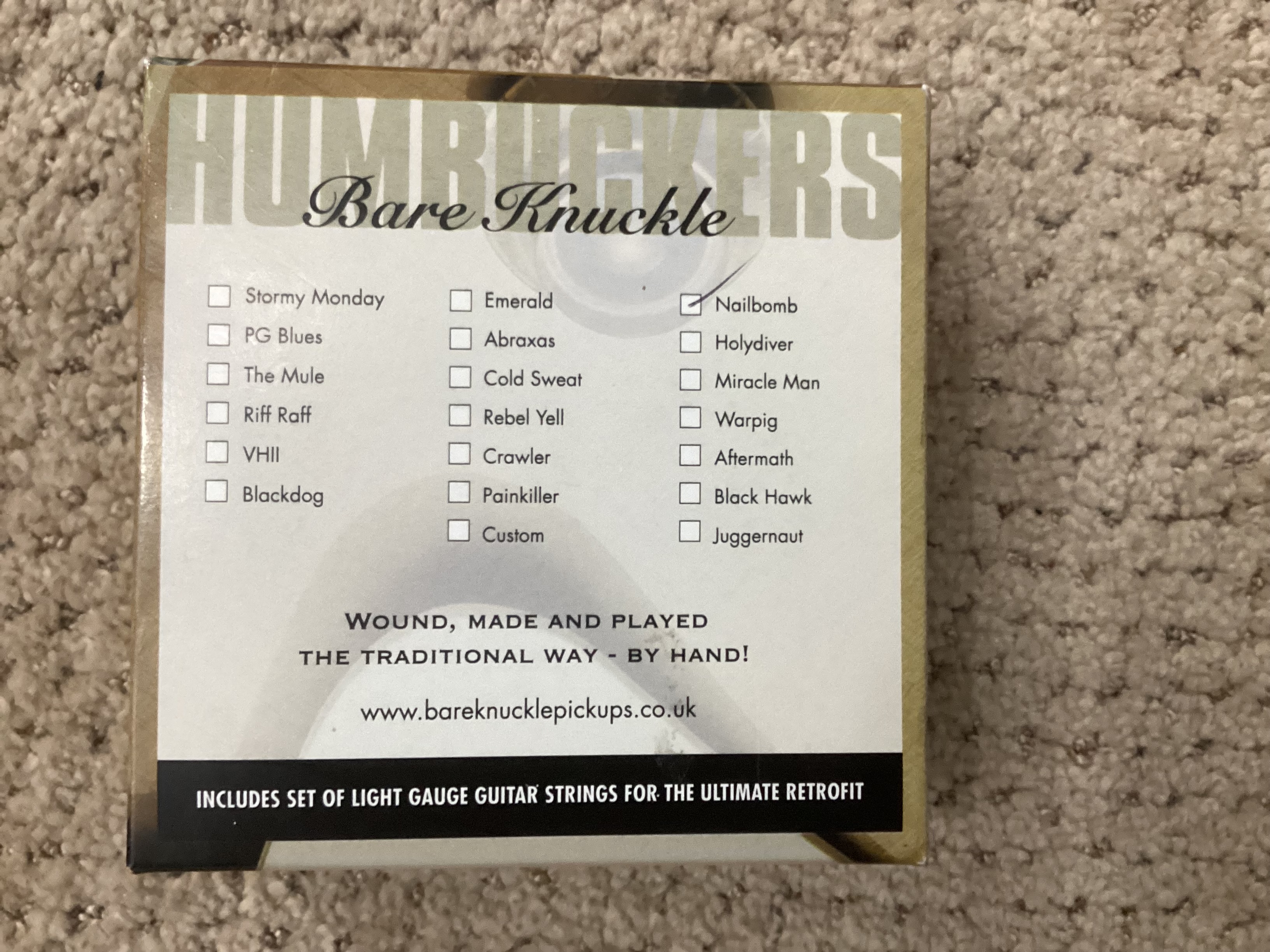 Bare Knuckle Pickups Nailbomb Bridge Humbucker Pickup. Brand New, Un-Used! Bought for a project I never completed. Alnico 5, Wide Spaced, 4 conductor wire. Short Legs.