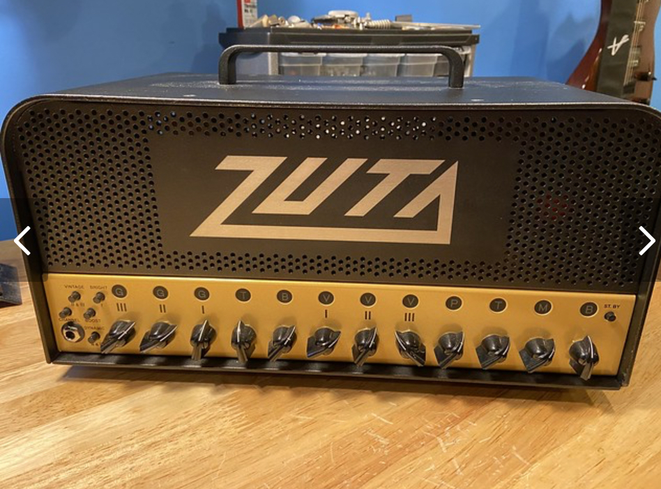 Excellent condition Zuta 25 head made in Macedonia by Bogner. For some reason Bogner had a falling out with the company and gave the rights to them to keep making the head this amp has all the components and circuit boards of the bogner 25 I played a Friends bogner 25 and there’s no difference. Three channels the clean channel has a bright switch gain bass treble and presence controls. Channel 2 is much like on my bogner 101B as between seven and 10 the gain gets very chewy and thick . Channel 3 goes from there and you could do great palm mutes and chugs on channel 3 and play liquid solos both channels have a boost on the floor pedal there also is a vintage mode which is plexi-ish or and a dynamic switch which changes the gain structure and tone. Fx loop has a return knob And there is a virtual mic out with position and access knobs to run direct to PA. Amp has more than enough volume and new was $2500. I’ve had all the Bogner gain model in the amplifiers and this one is awesome. 1375.00 shipped with PayPal “help”