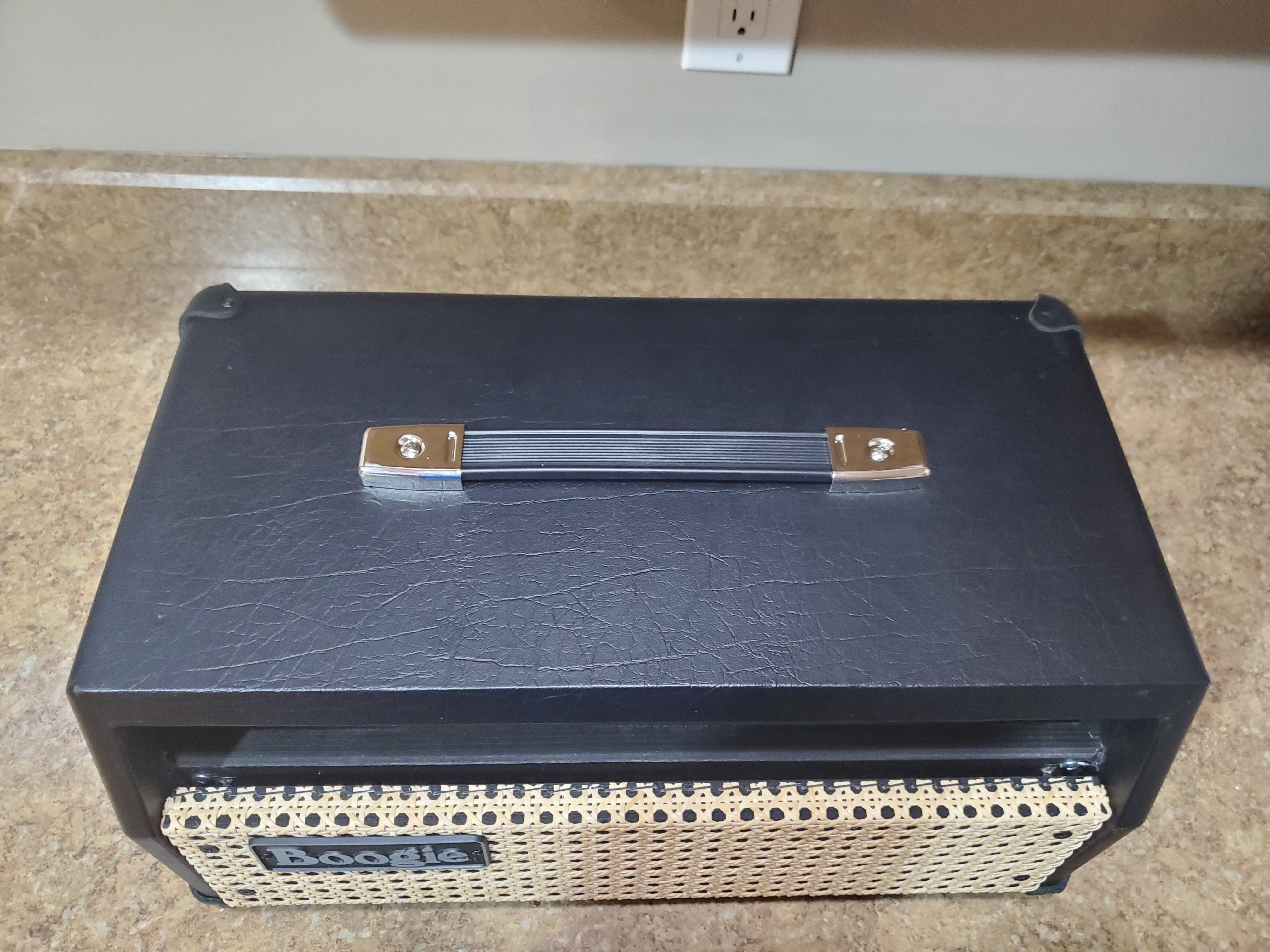 Ordered this headshell from Mesa but the transformer wouldn't clear one of the side cleats, so I had to make a modification. Mesa sent me a new one that fits so I'm selling this one. It's a bit of an eyesore on the back but clean from the front. Custom wicker plate and new reverb tank.