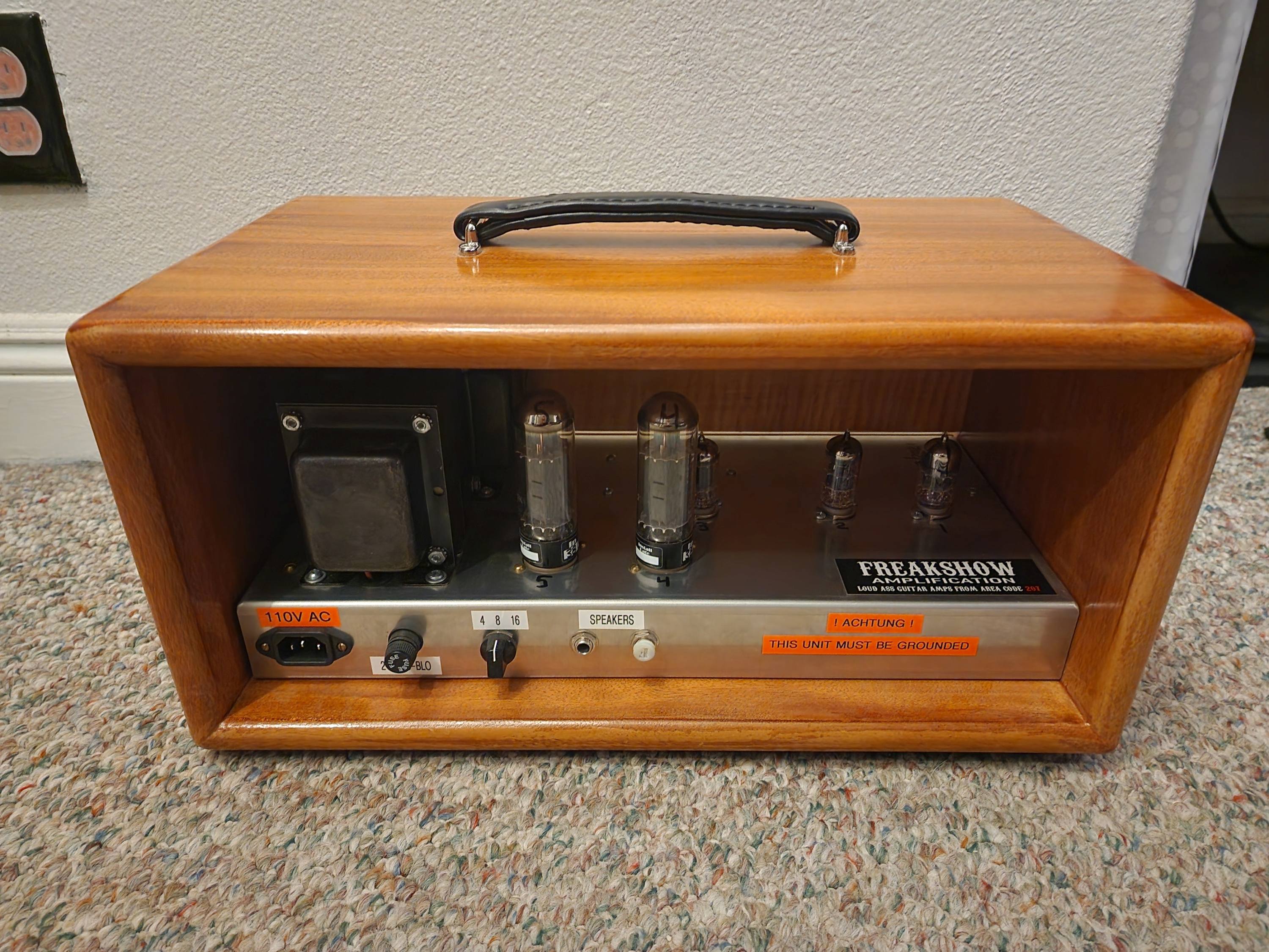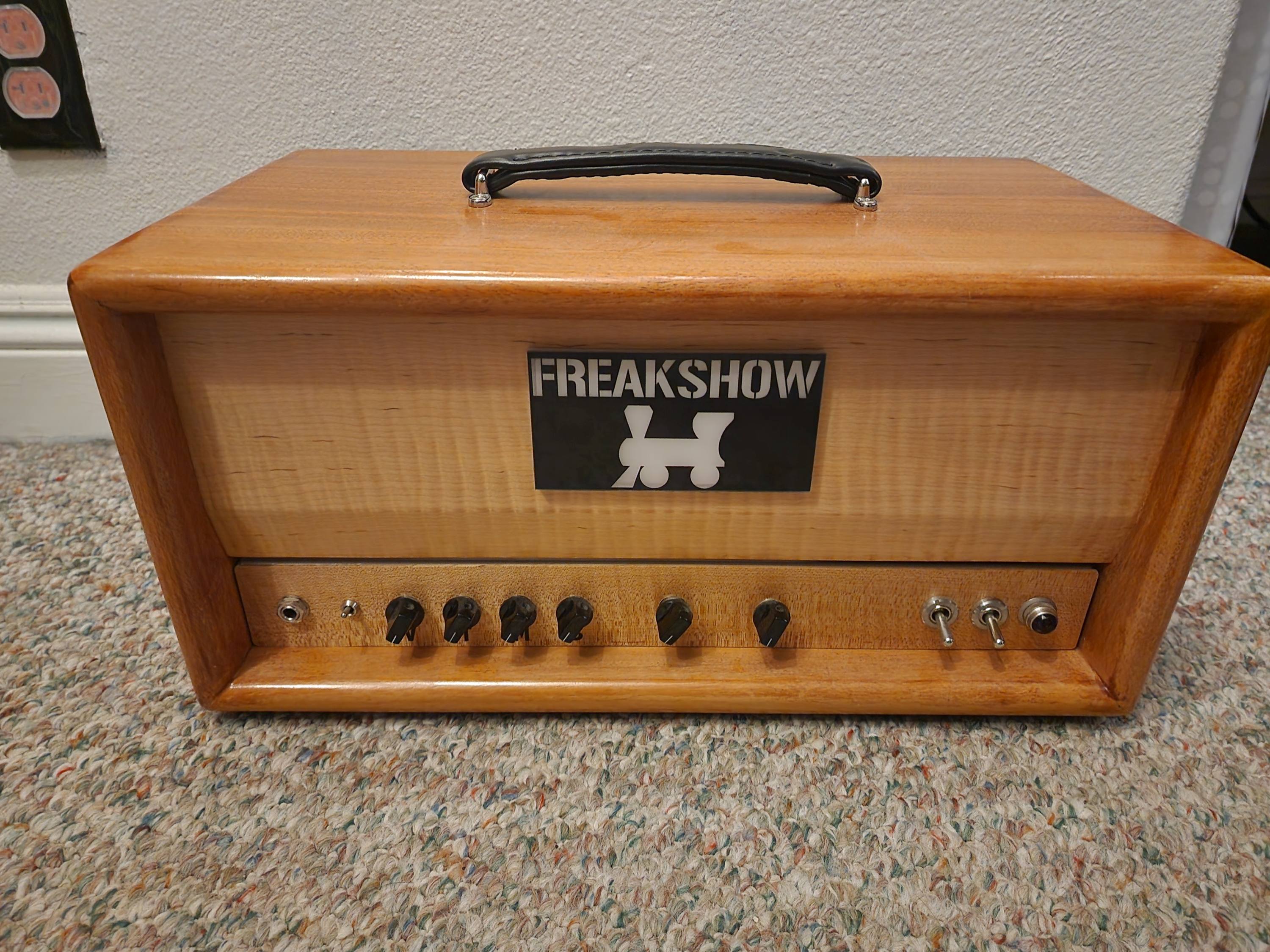 1. Freakshow trainwreck express clone. This amp is not only built like a tank with amazing parts but i had the chance to compare it to a real 1989 trainwreck express two years back and was stunned how close they were ( 95% ) The clone had more gain available and more low end thump at high volumes. The amp was made in 2020 by Justin at Freakshow amps with a custom maple headshell and set me back almost 2k. I'm only selling it to fund my dream amp ( early 70's Hi-Watt DR103 ) $950 shipped PPF&F or Local pickup only continental US