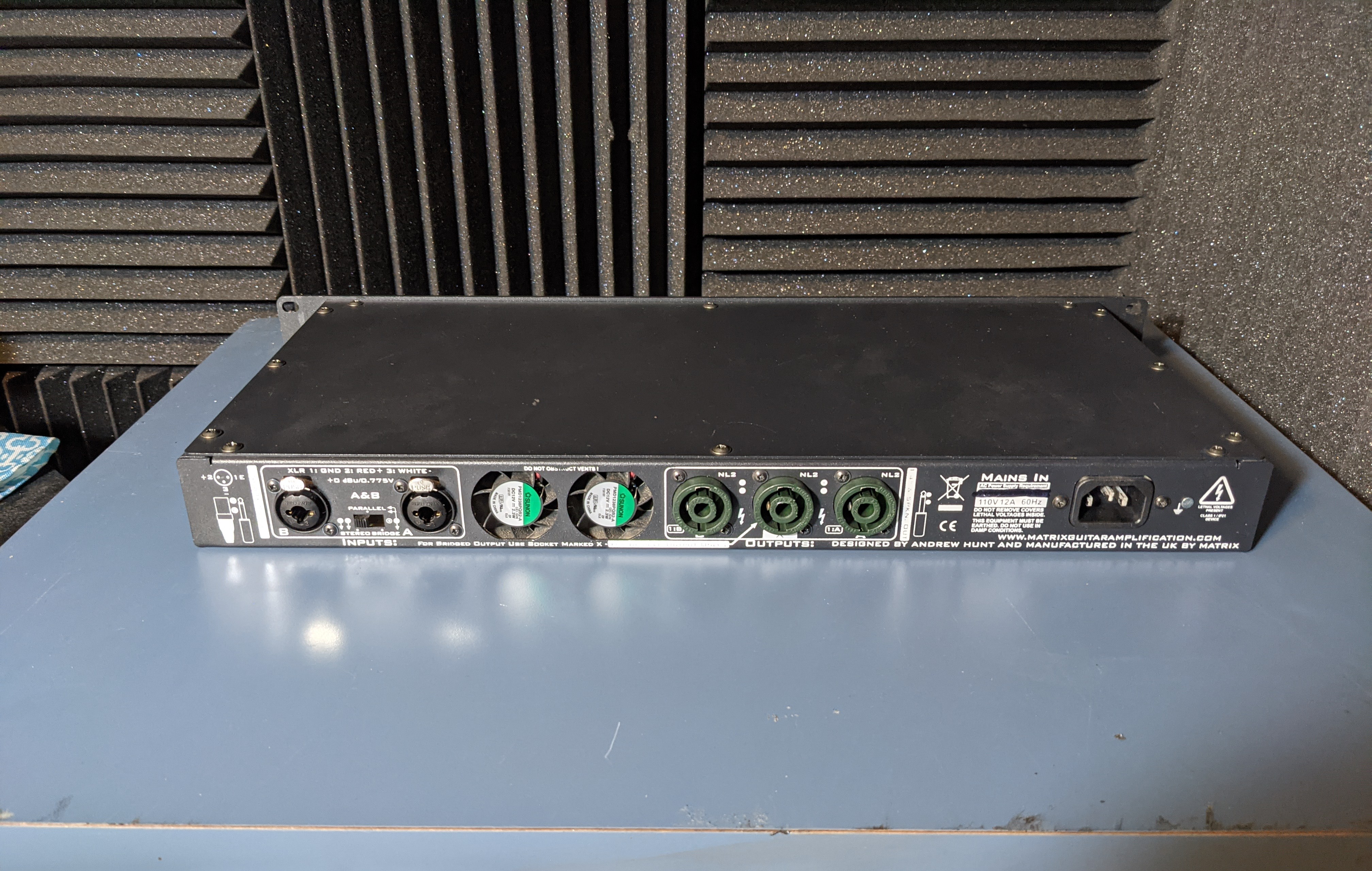 Matrix is in good condition, works great. I ran a Quad Cortex and Axe-Fx III in stereo with it. Nice clean and flat power.