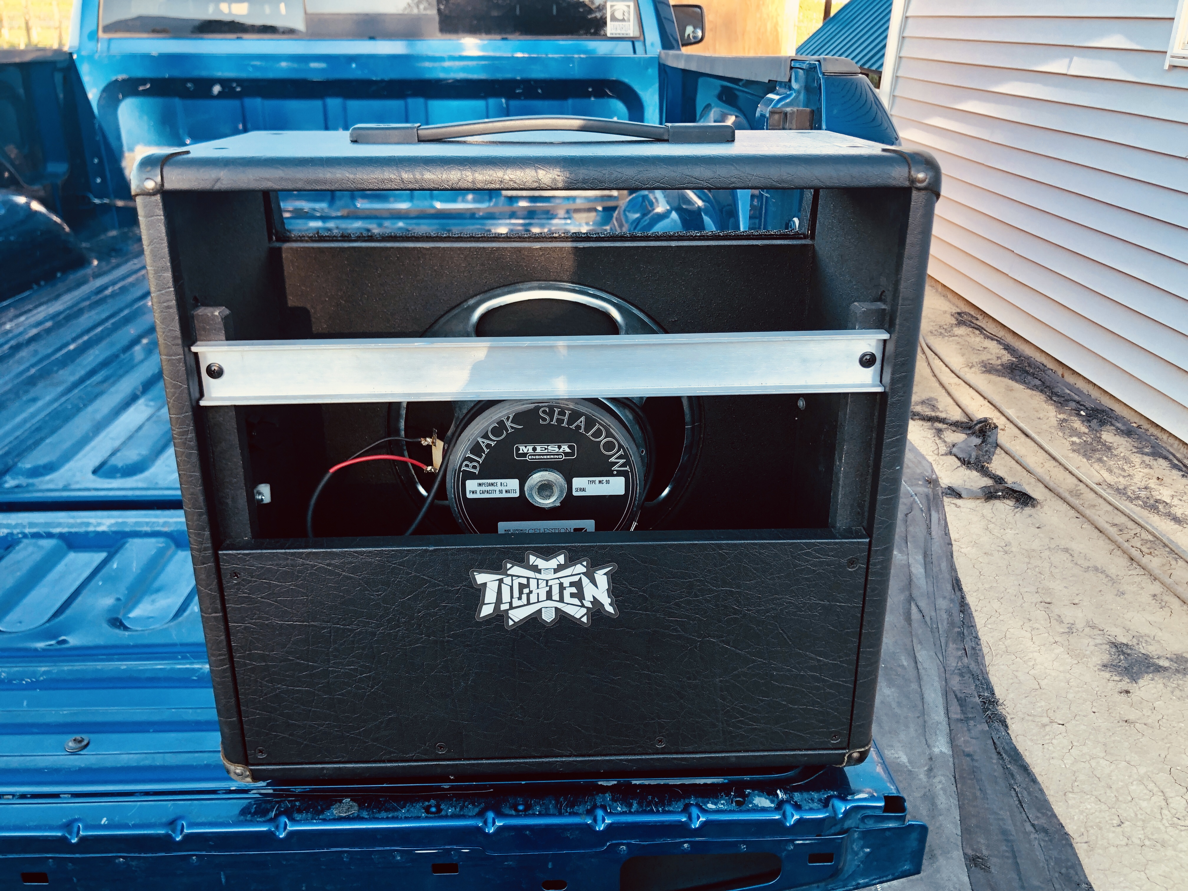 *SOLD* For sale is a very clean 1999 Mesa Boogie 1x12 combo shell with a Black Shadow MC-90 speaker. This will fit Mark IIC+, Mark III and Mark IV short chassis or can be used as a simple 1x12 extension cab. 15 3/4" chassis screw spacing. Asking $175 net to me shipped to CONUS.