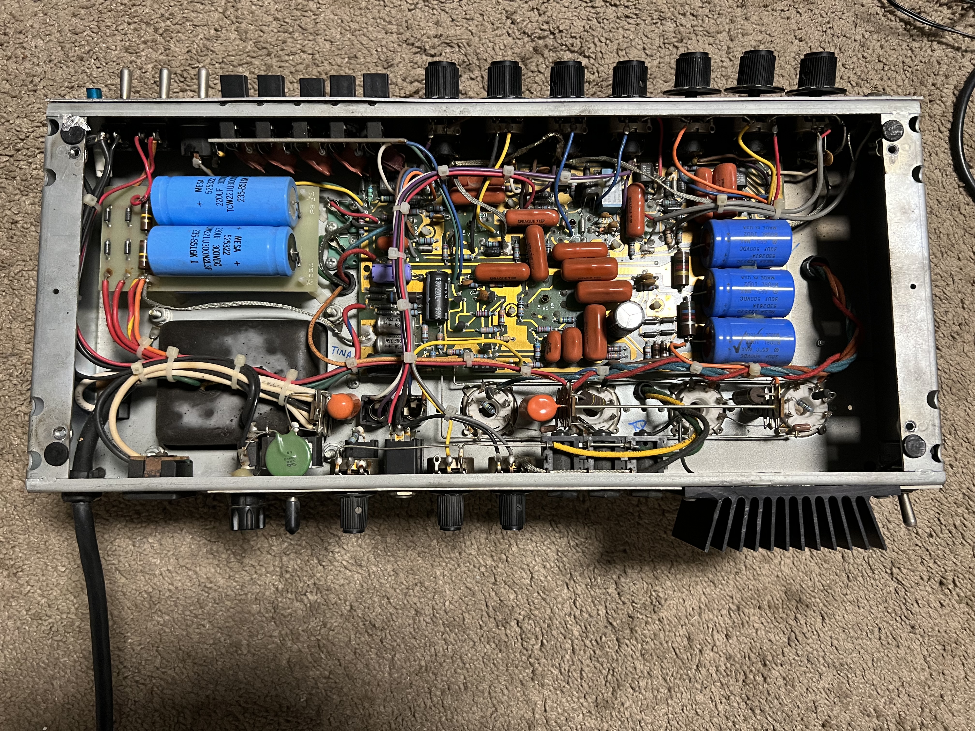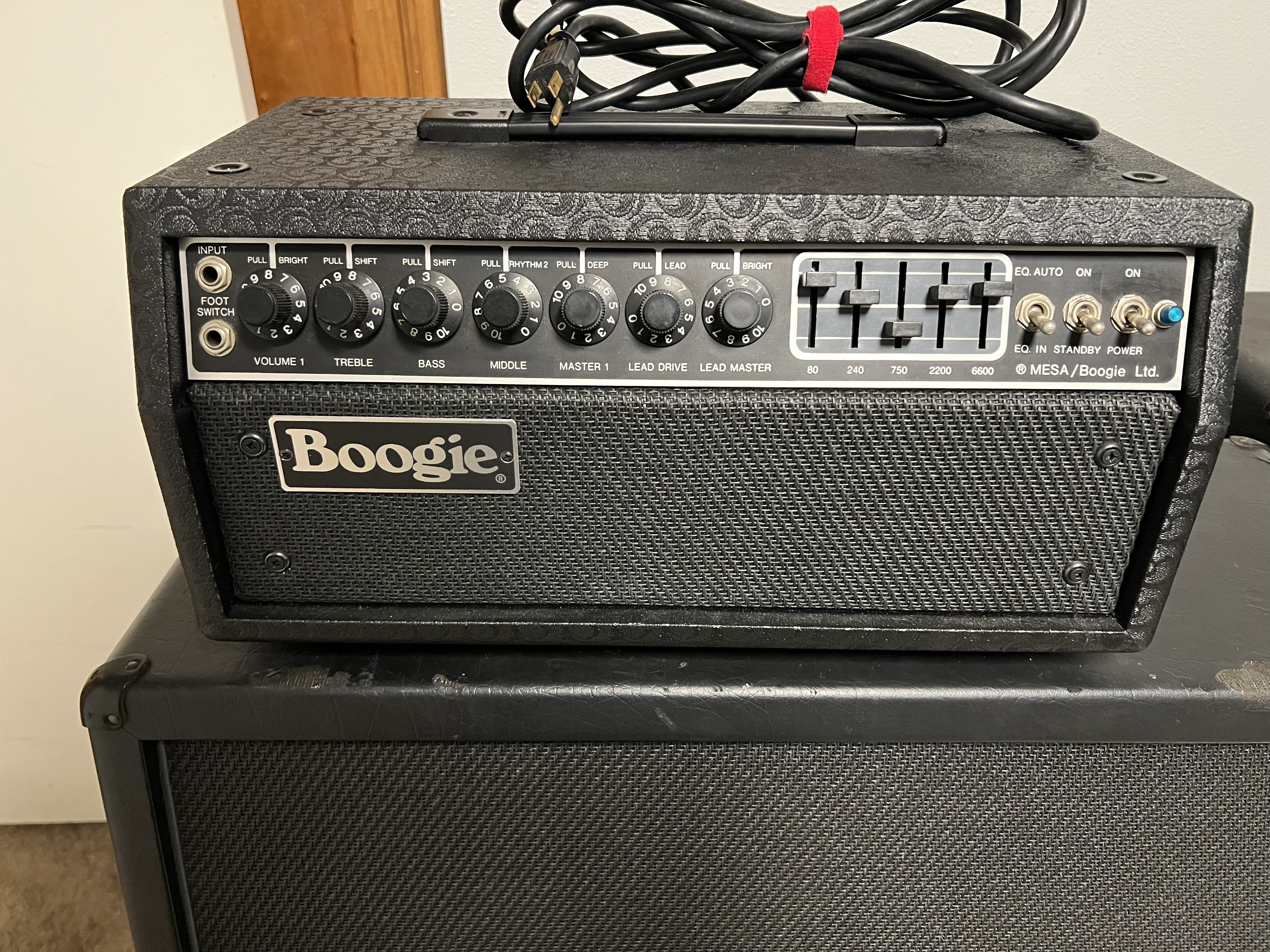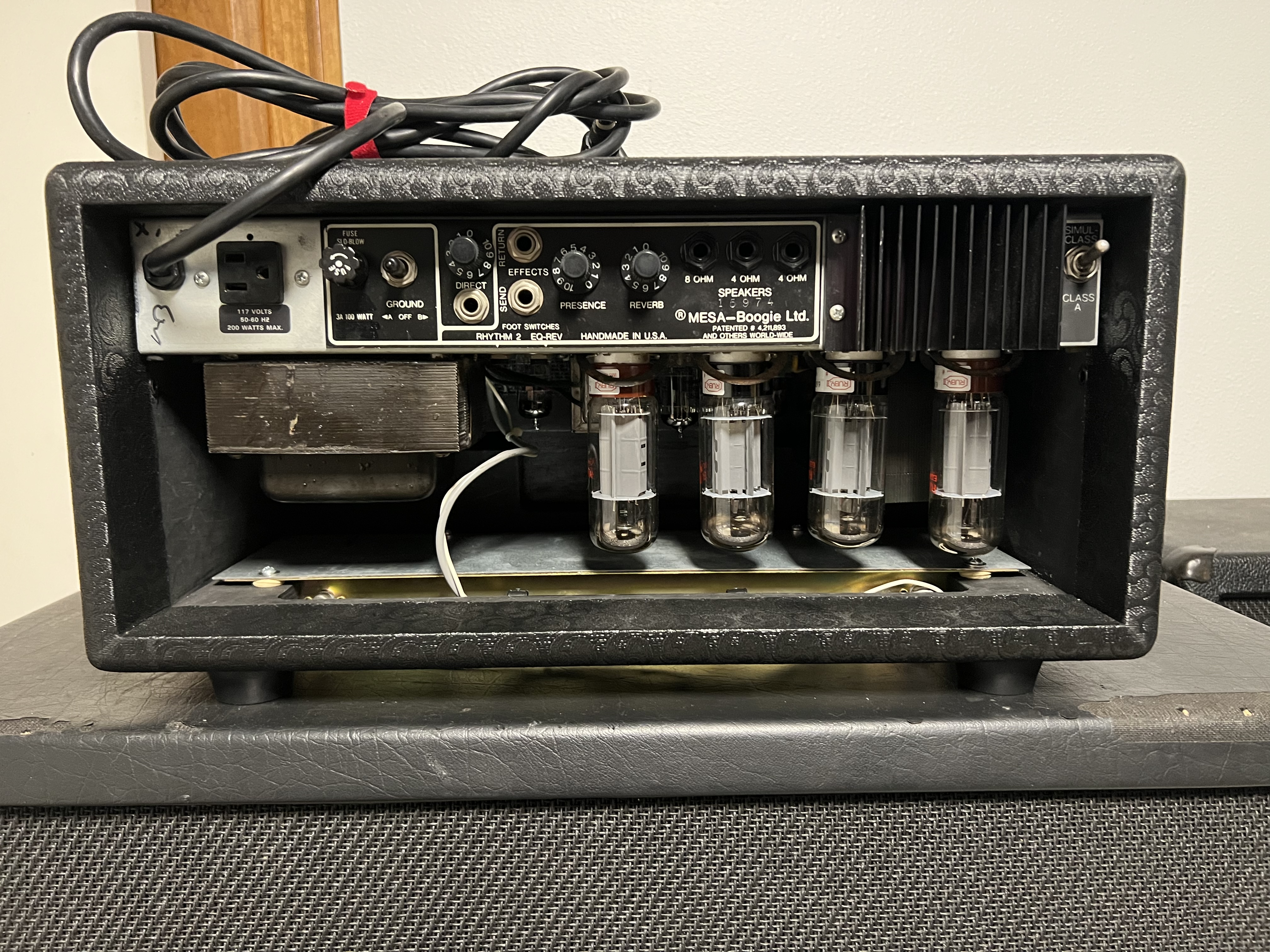 Mesa/Boogie Mark III no/black stripe in amazingly clean condition. DRG, fully loaded model - graphic EQ, simul-class poweramp, and reverb. Super early Mark III model, early enough that they were still using faceplates from the Mark II - see the difference in font on the faceplate controls for “Pull Rhythm 2”.