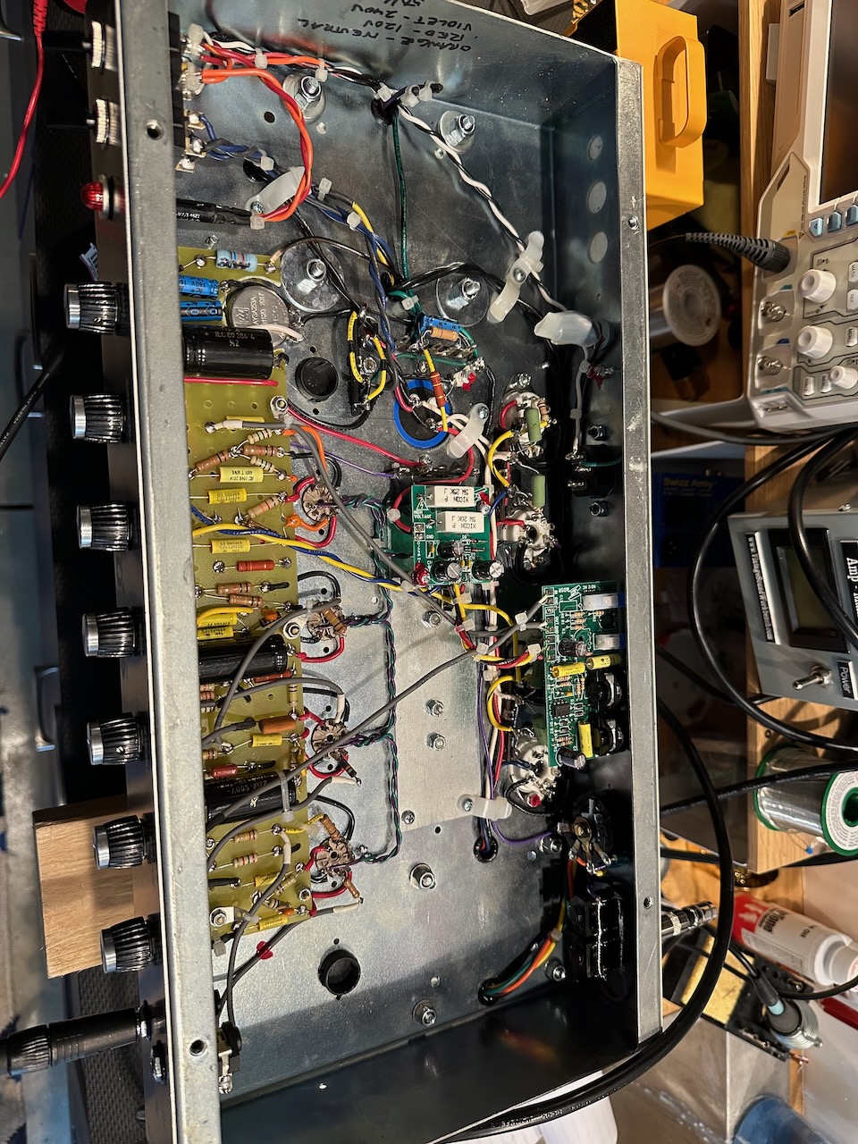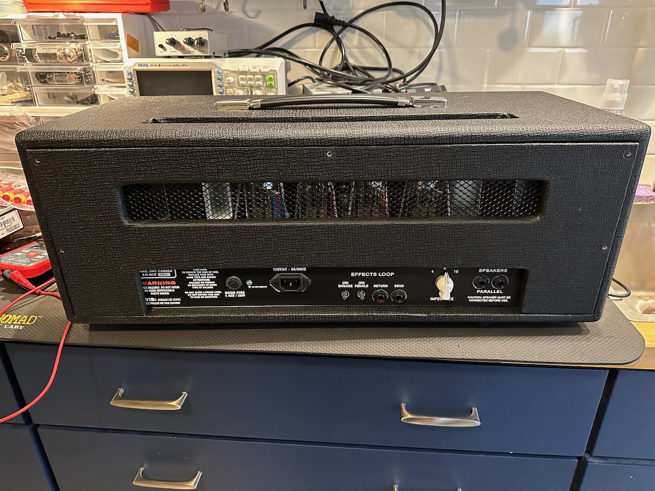 This is a single channel 105-watt model in good condition. It looks like Glen has made added a few controls since this one was built, so note the simplified control setup here. I picked this up a bit ago but have decided it doesn't fill any particular need I have right now.