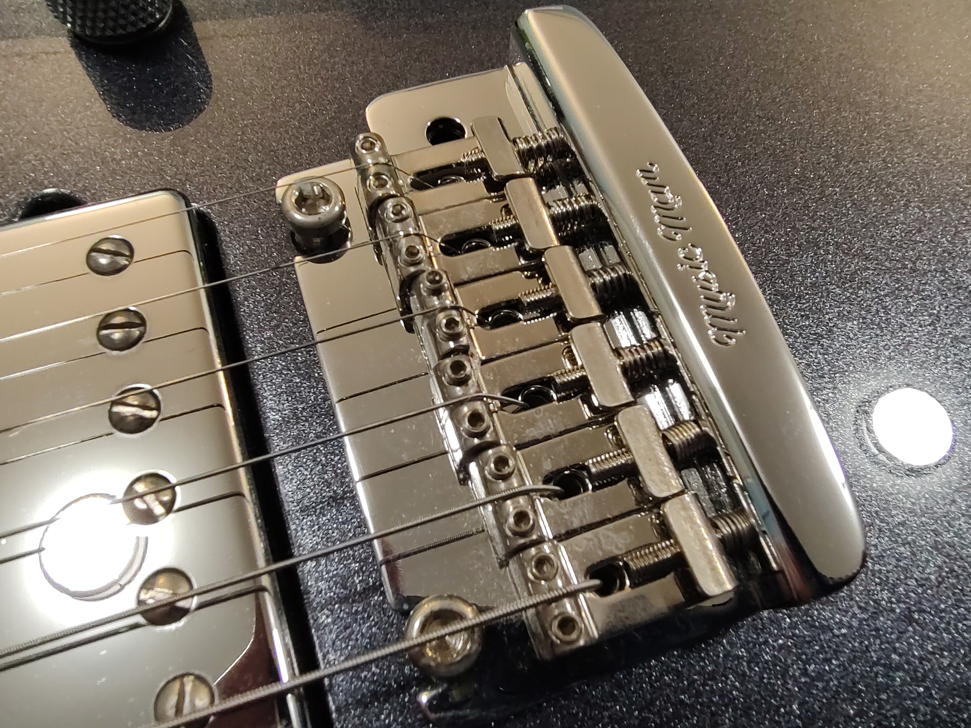 Included are the trem arm, hang tag, and factory hard case. The latter has few small dings on the exterior, but is otherwise solid and fully functional.