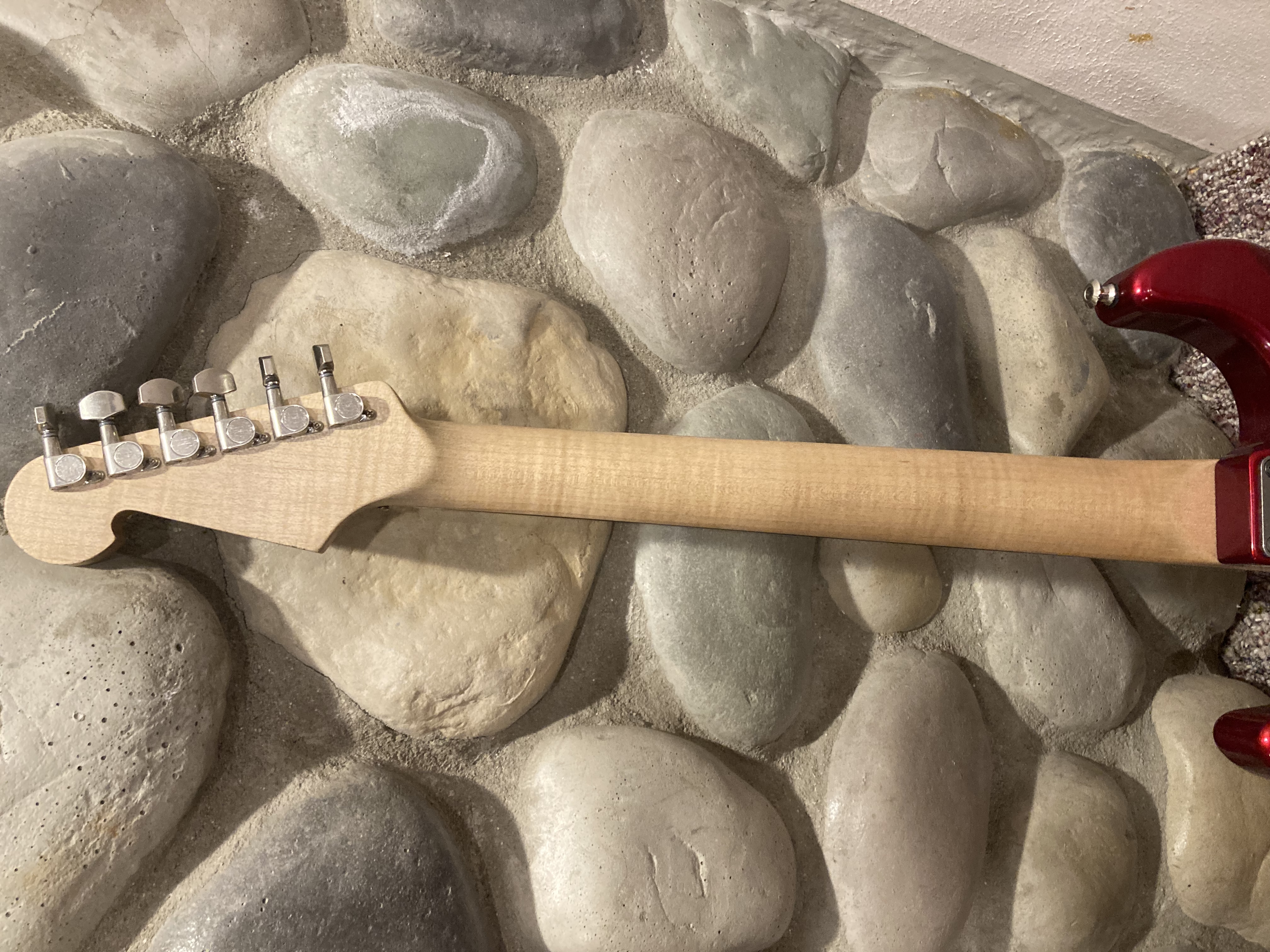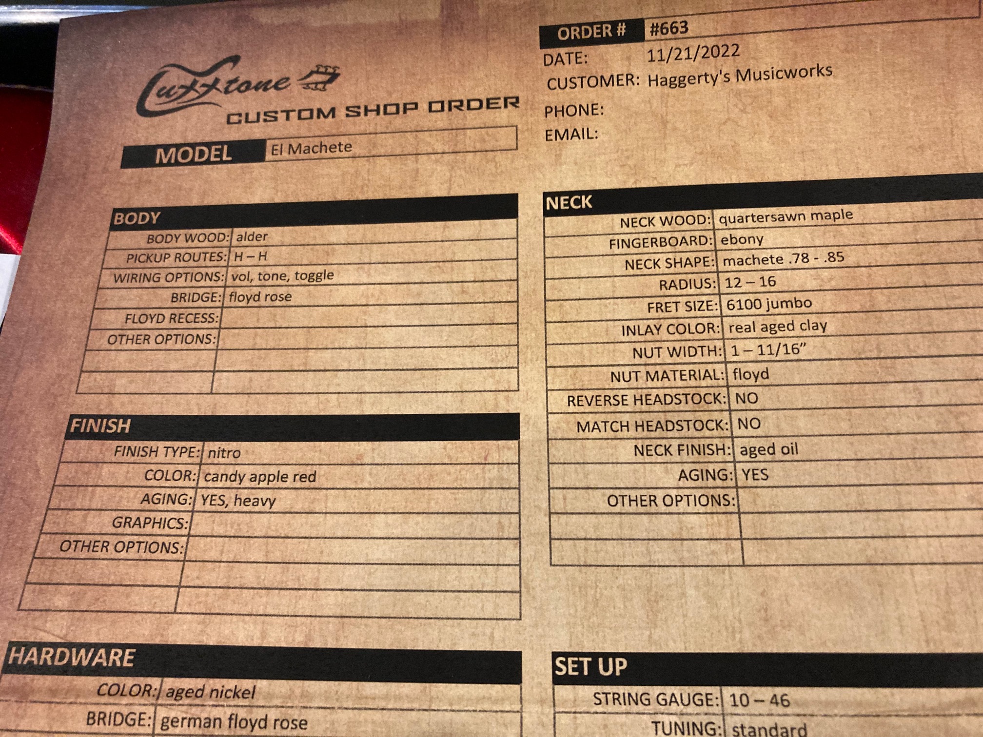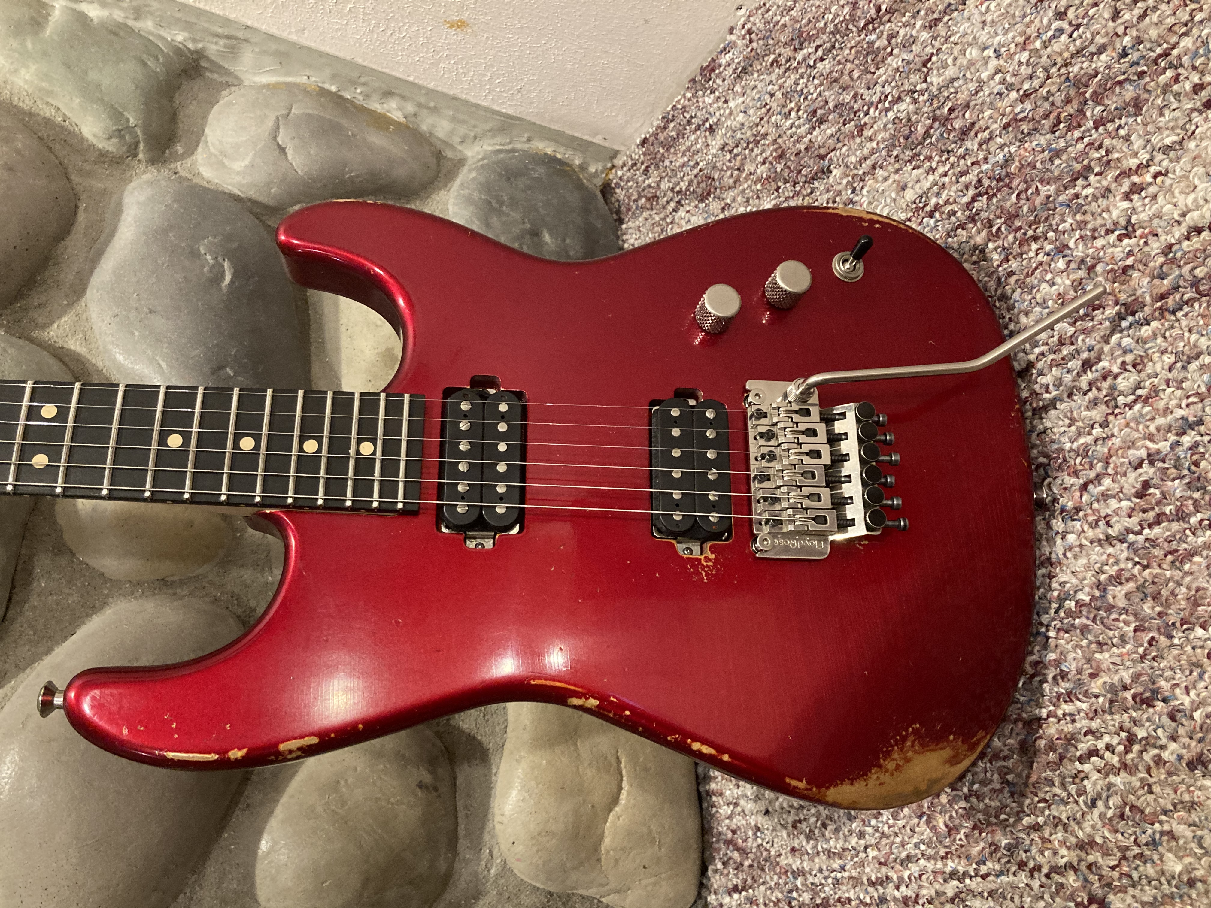 Aged Candy Apple Red Nitro finish painted over metallic gold