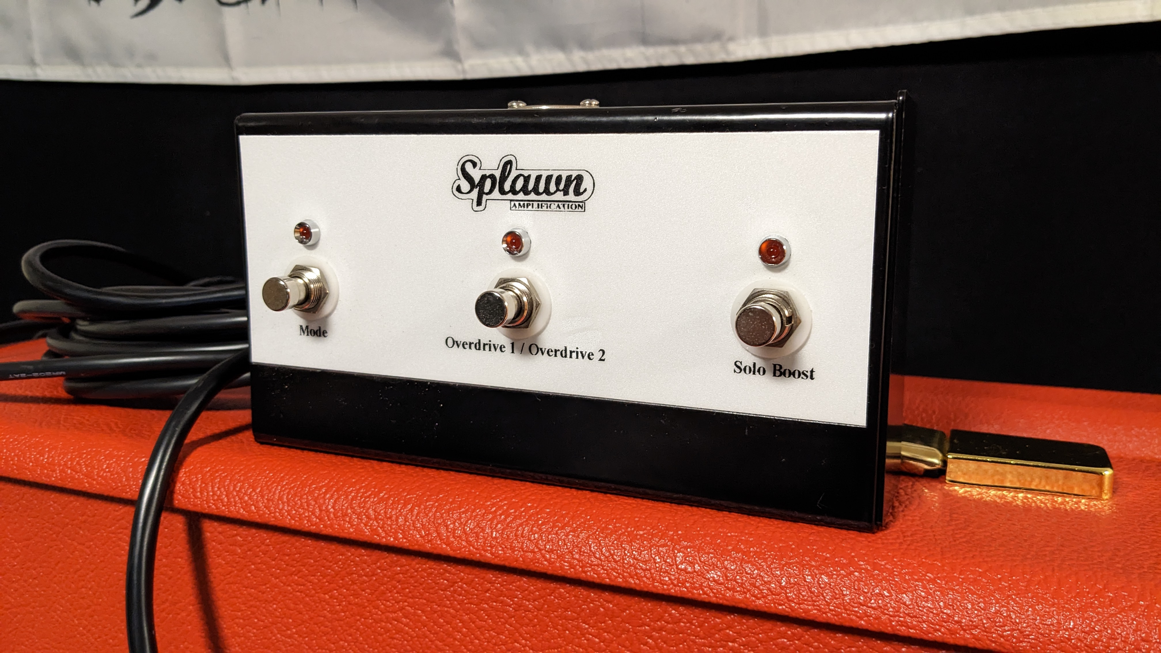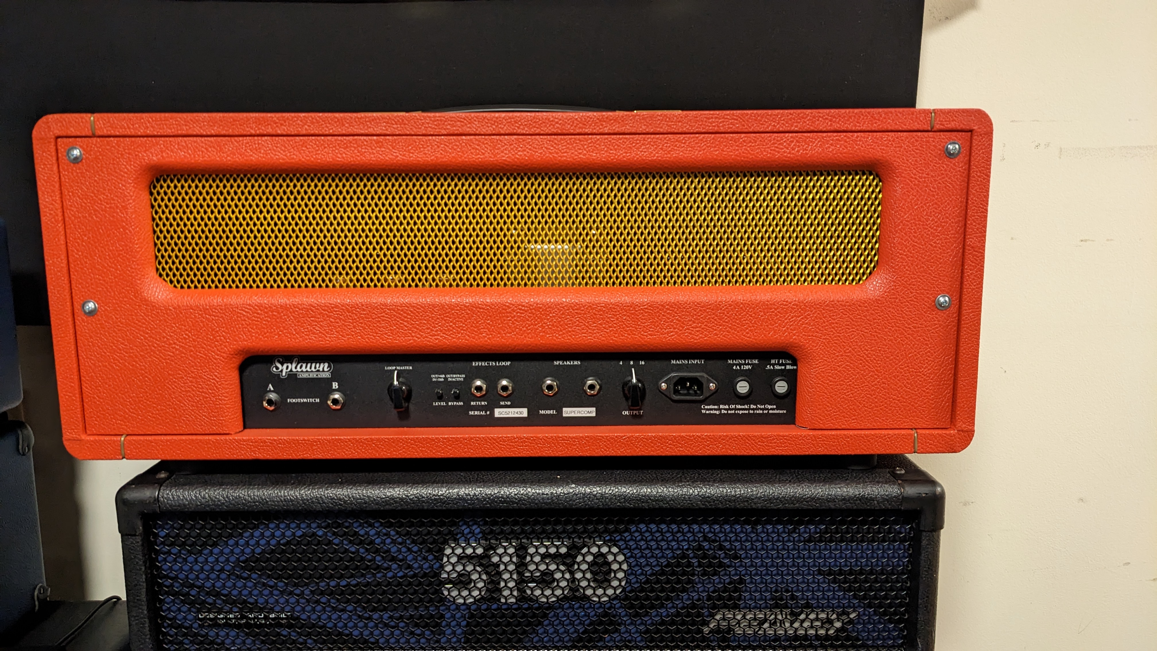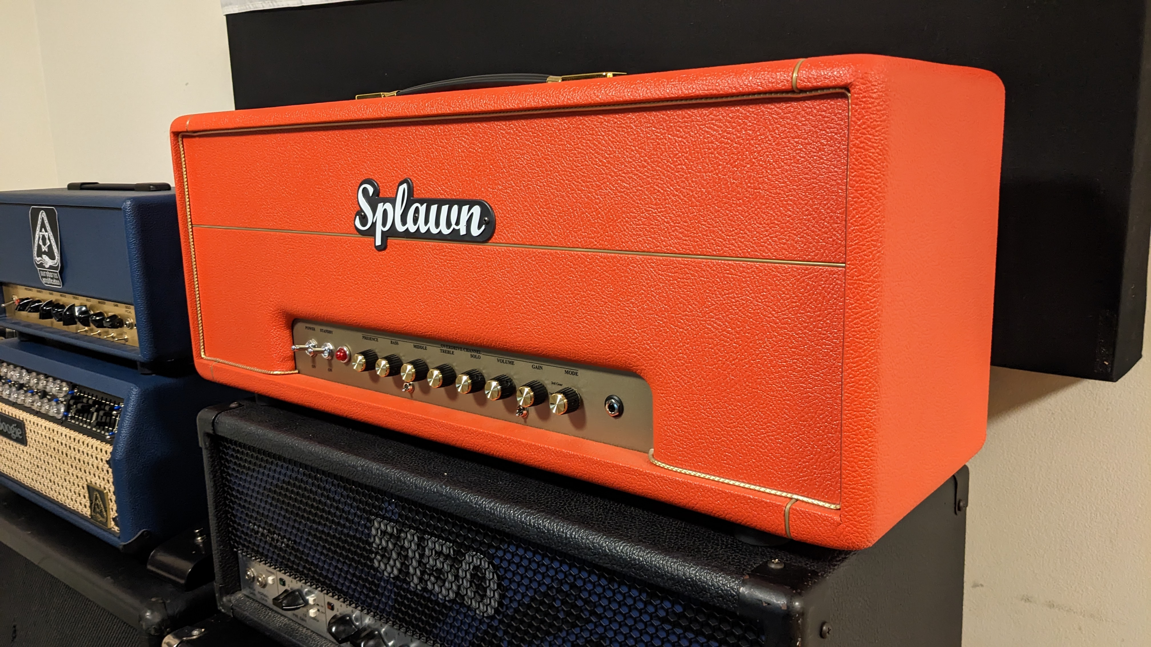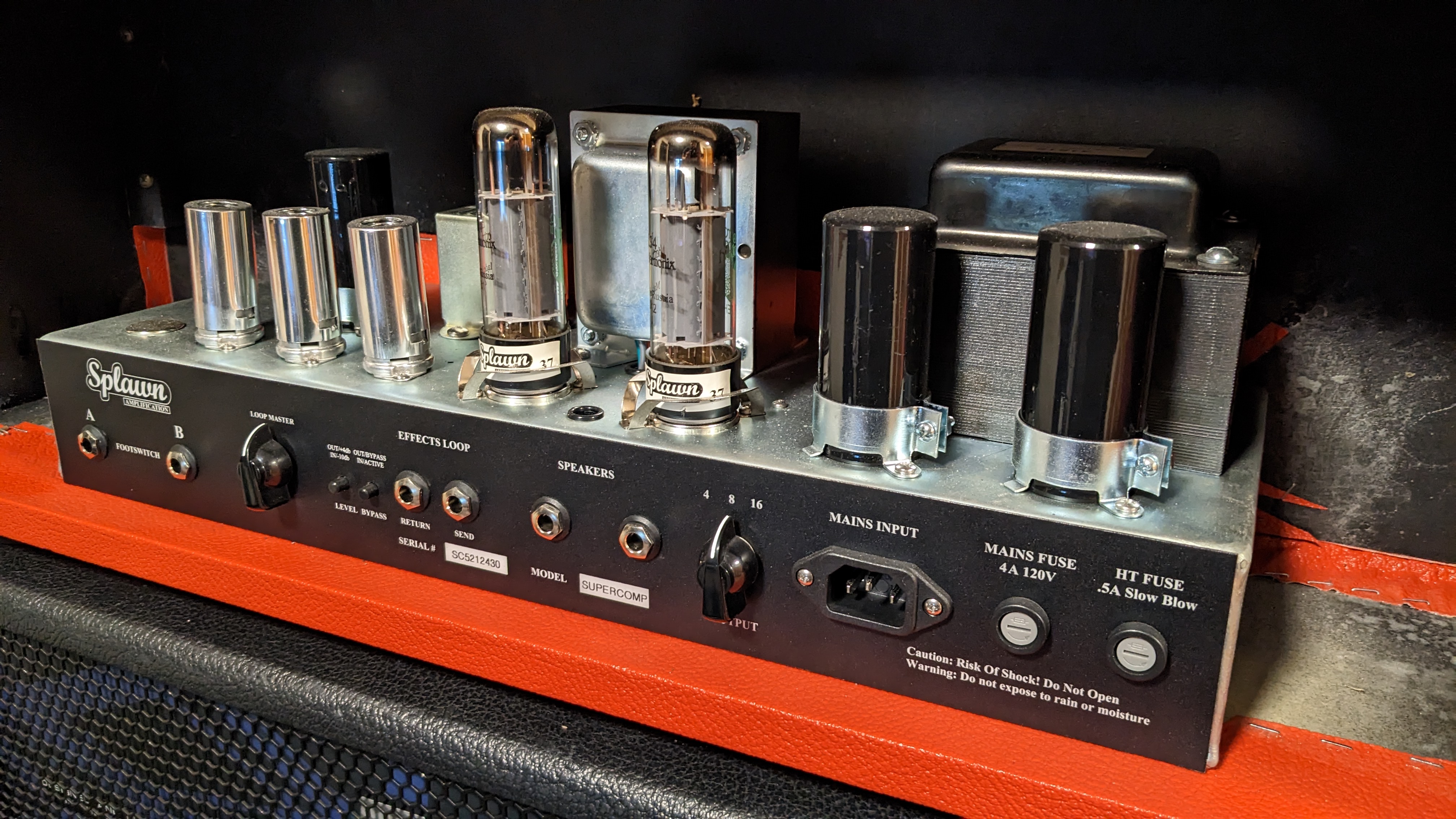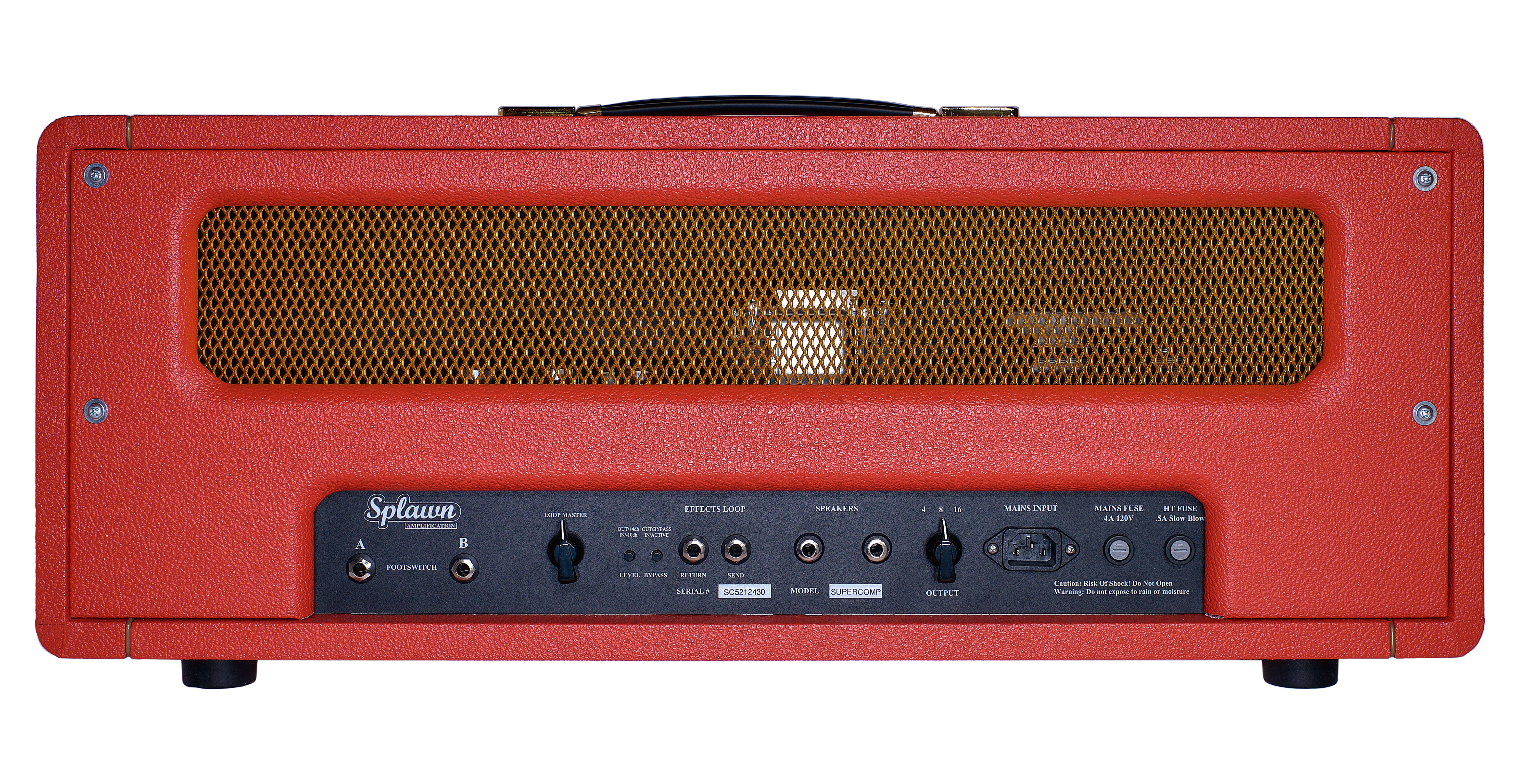 Splawn Super Comp 50w in red tolex with some cool gold accents with the piping, handle hardware, grilles on top and back. Sick. Comes with the power cable, footswitch and the footswitch cable. It's in great condition and sounds absolutely massive. This is the single channel version of the Splawn Nitro. This amp will get you in trouble FAST :-D.