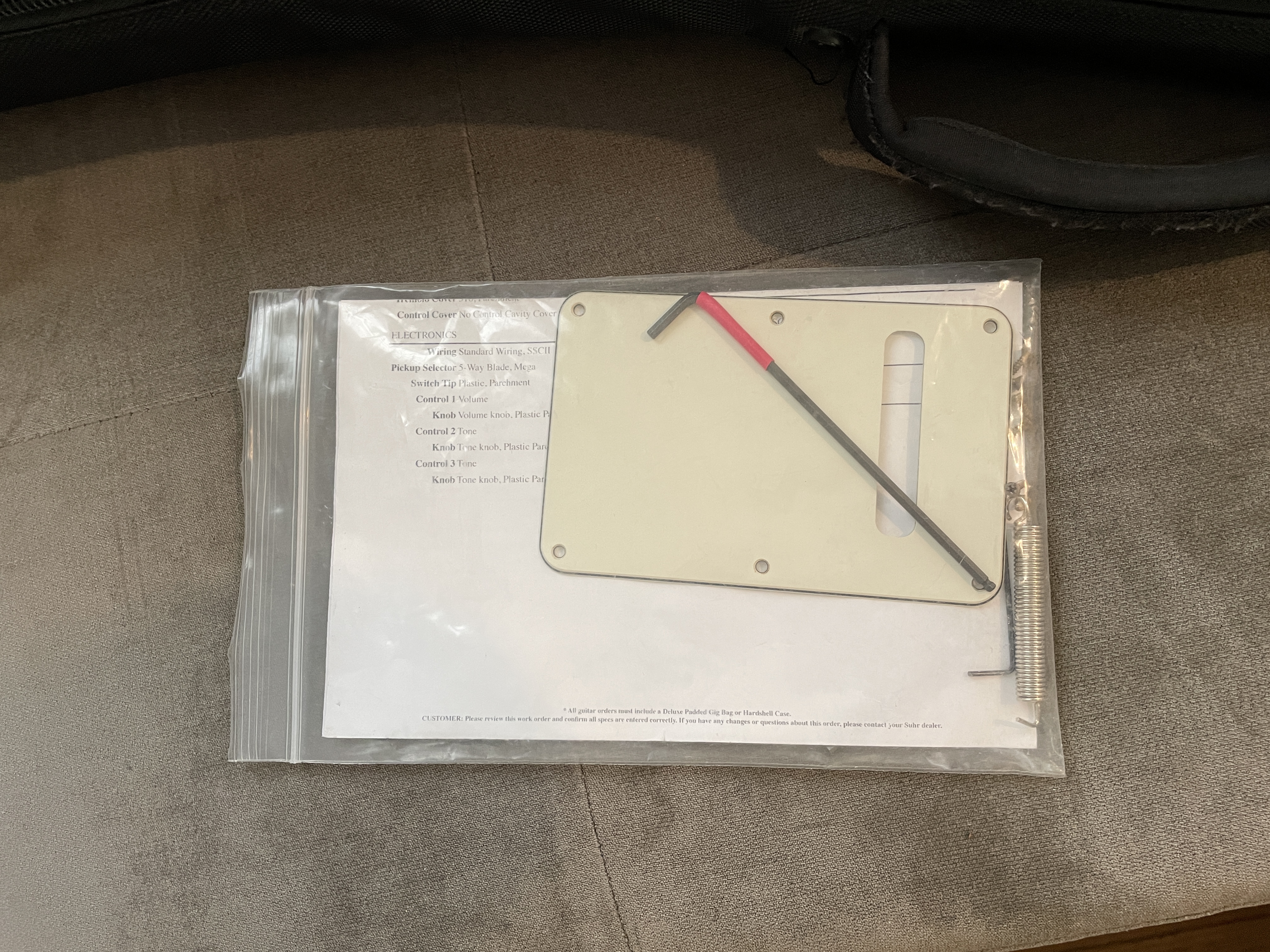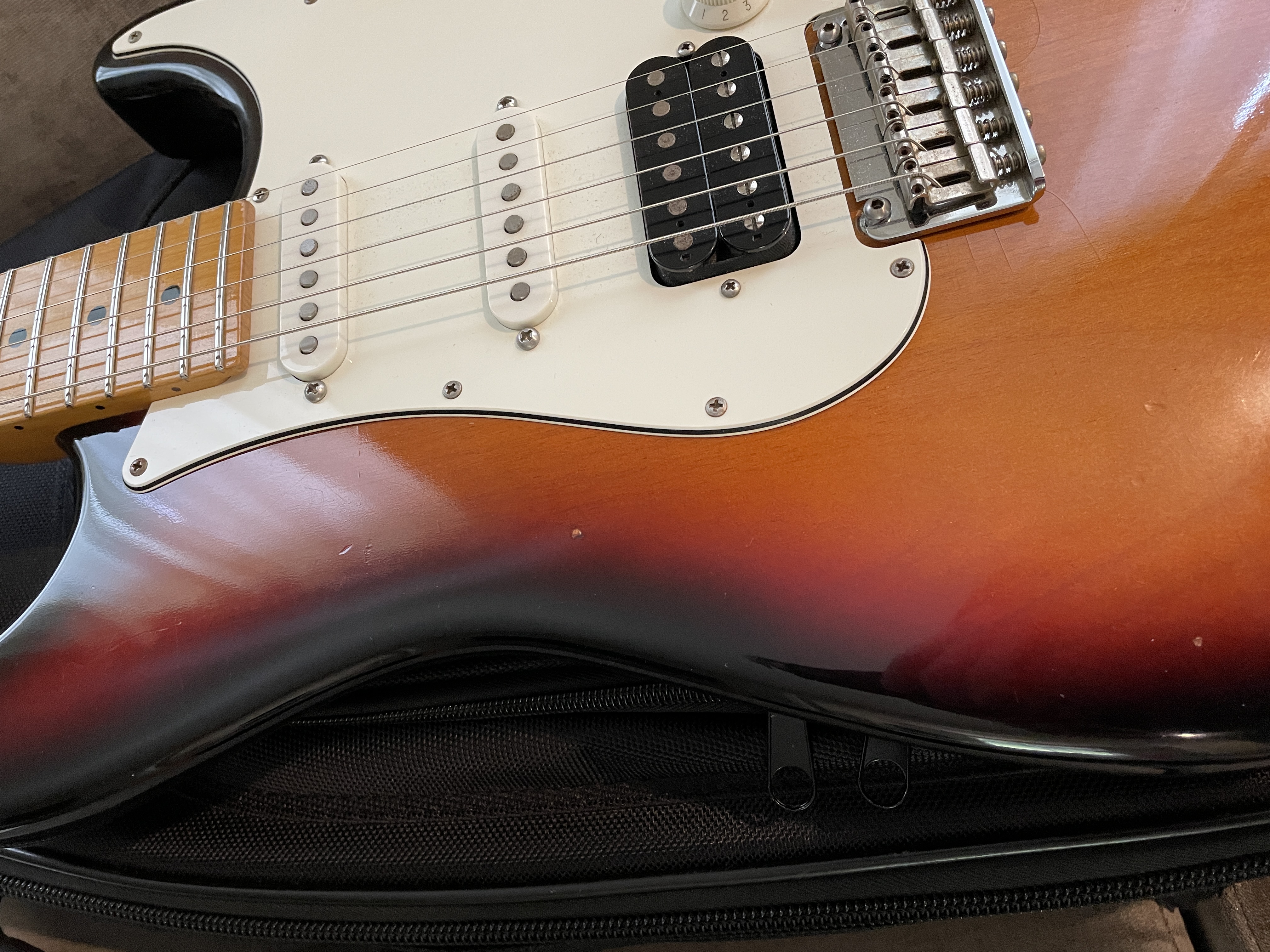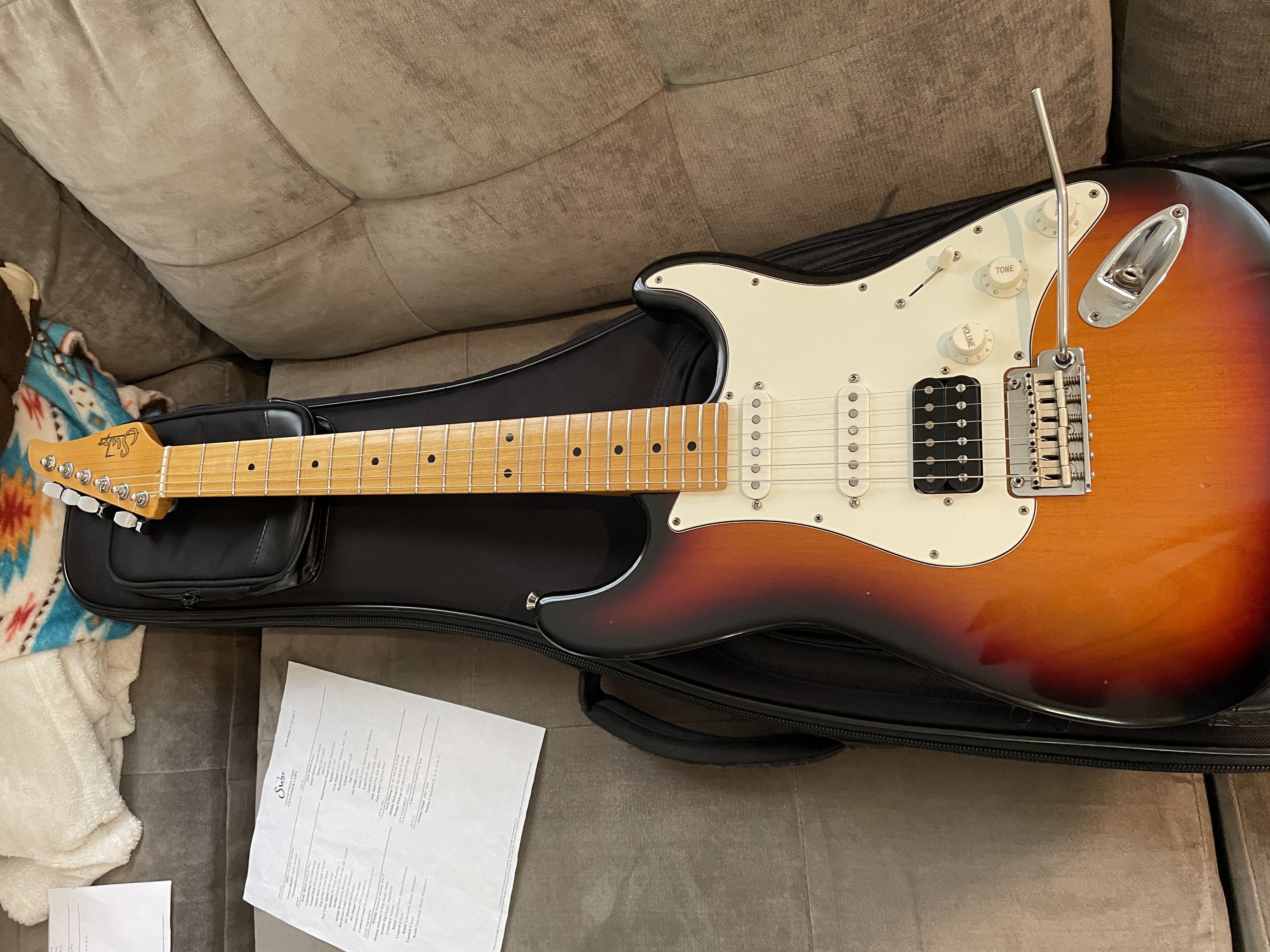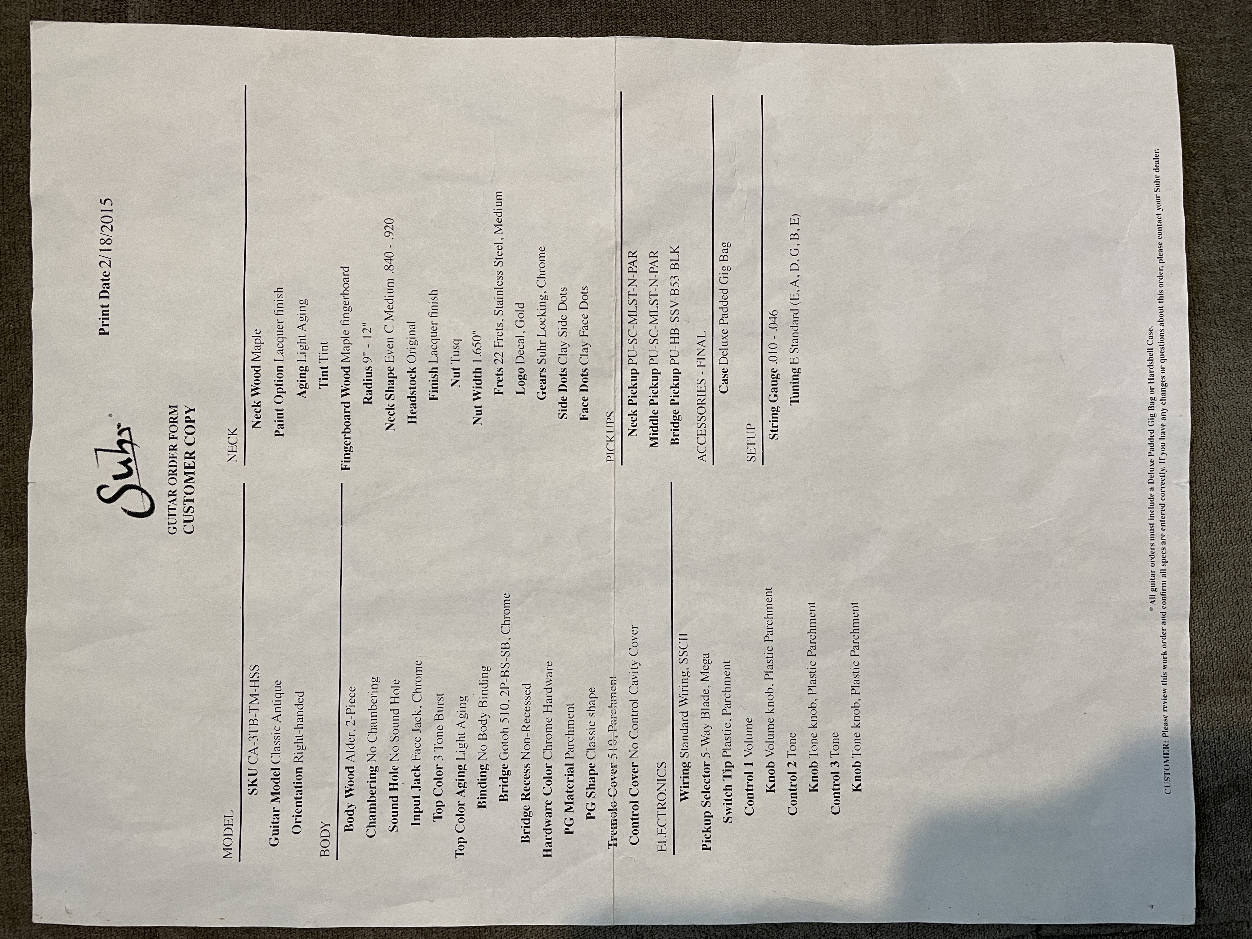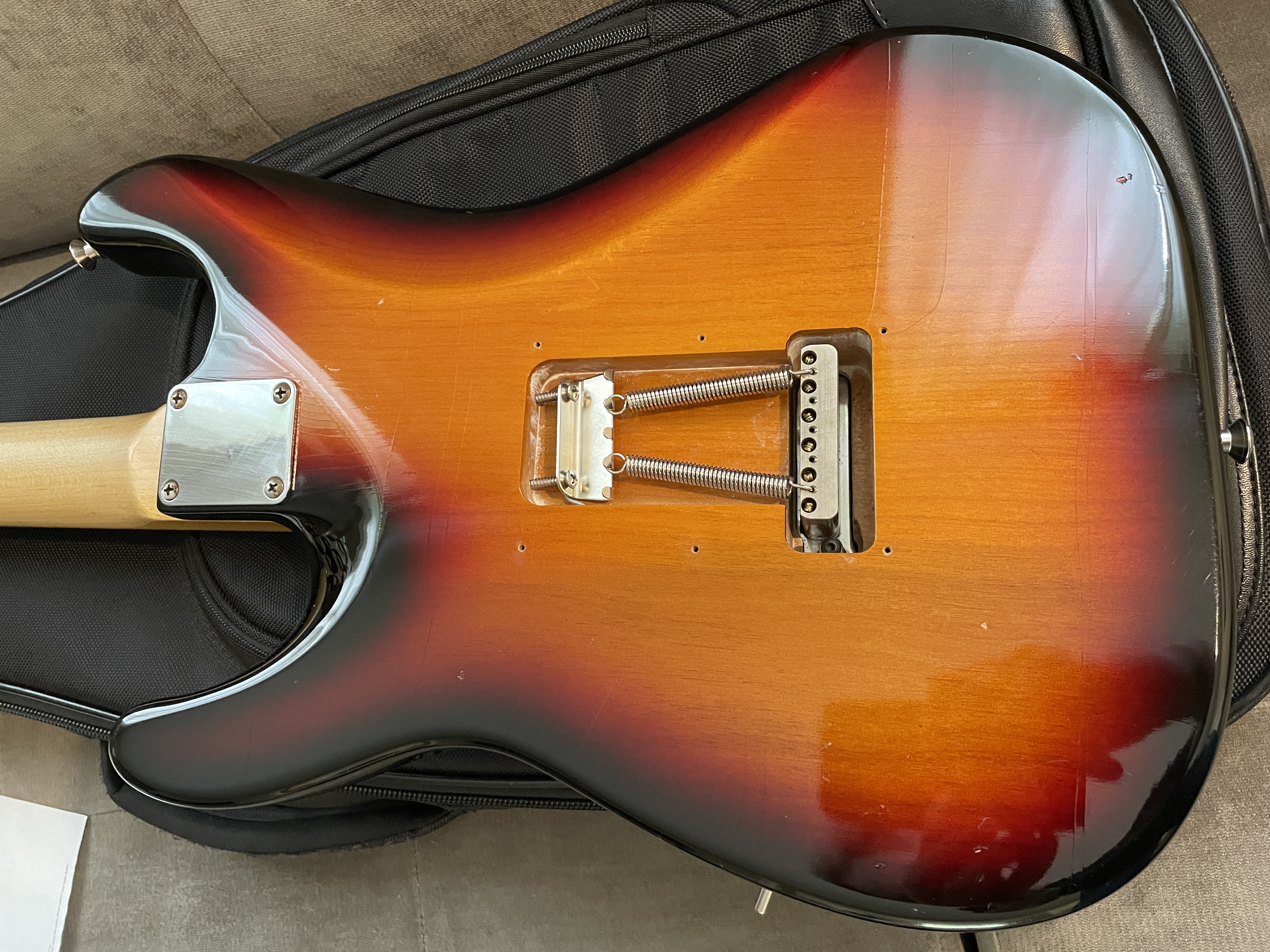 Great shape. Light aging/dings from the factory. Previous owner removed the lacquer from back of neck. HUGE improvement. All specs as show in build sheet. Currently has 2 springs but 3rd is included along with tools, vibrato arm, Suhr padded gig bag.