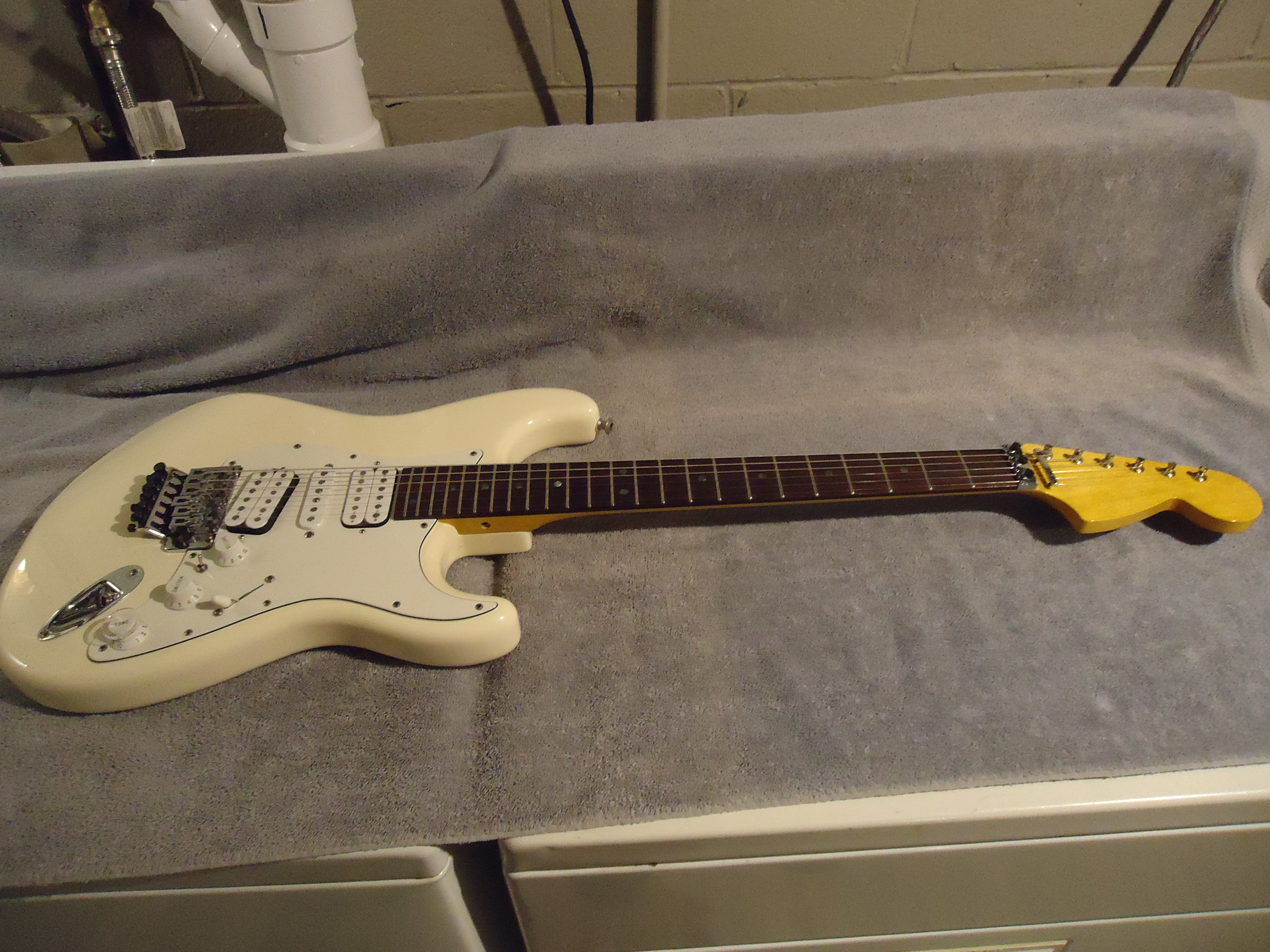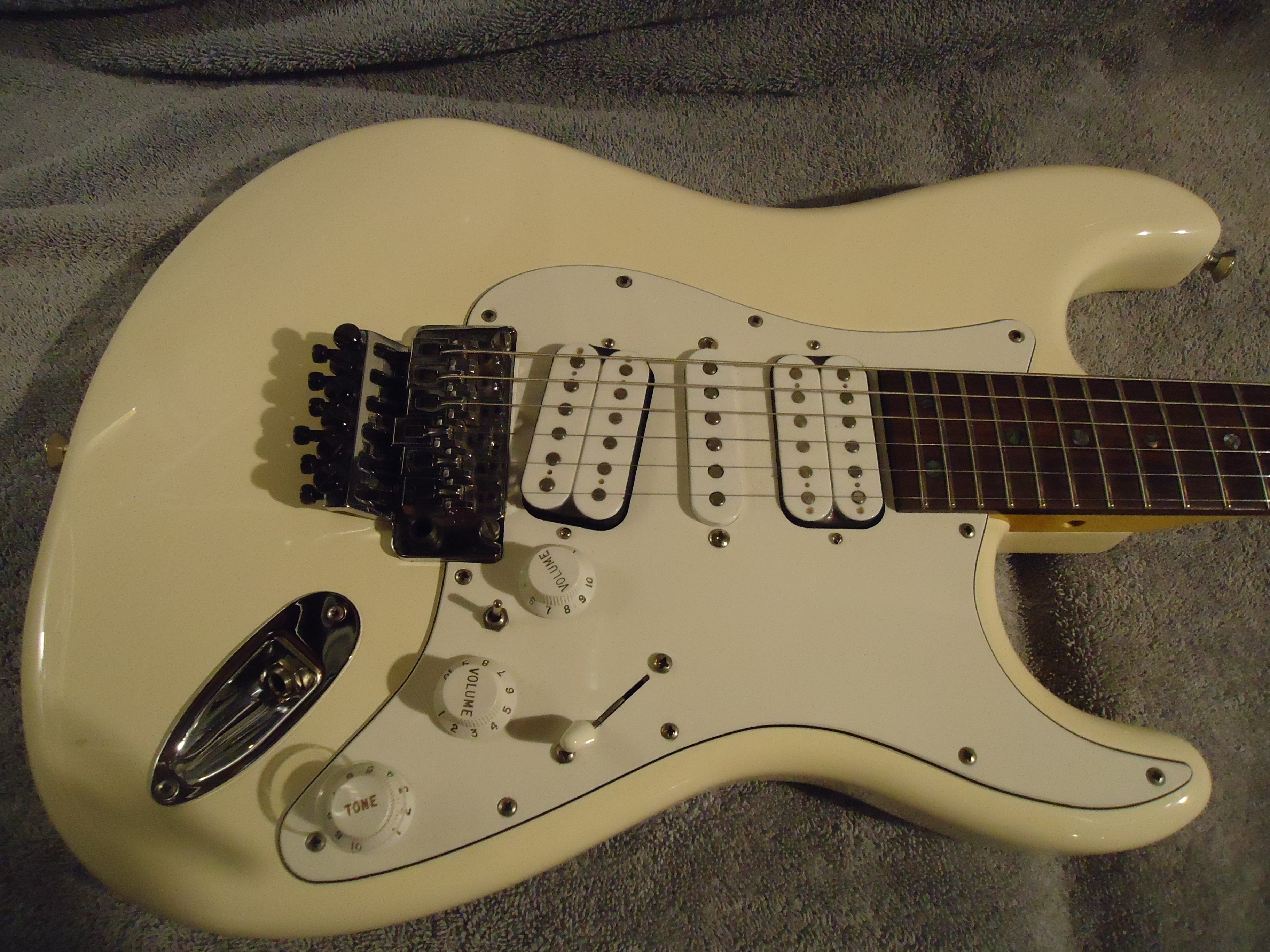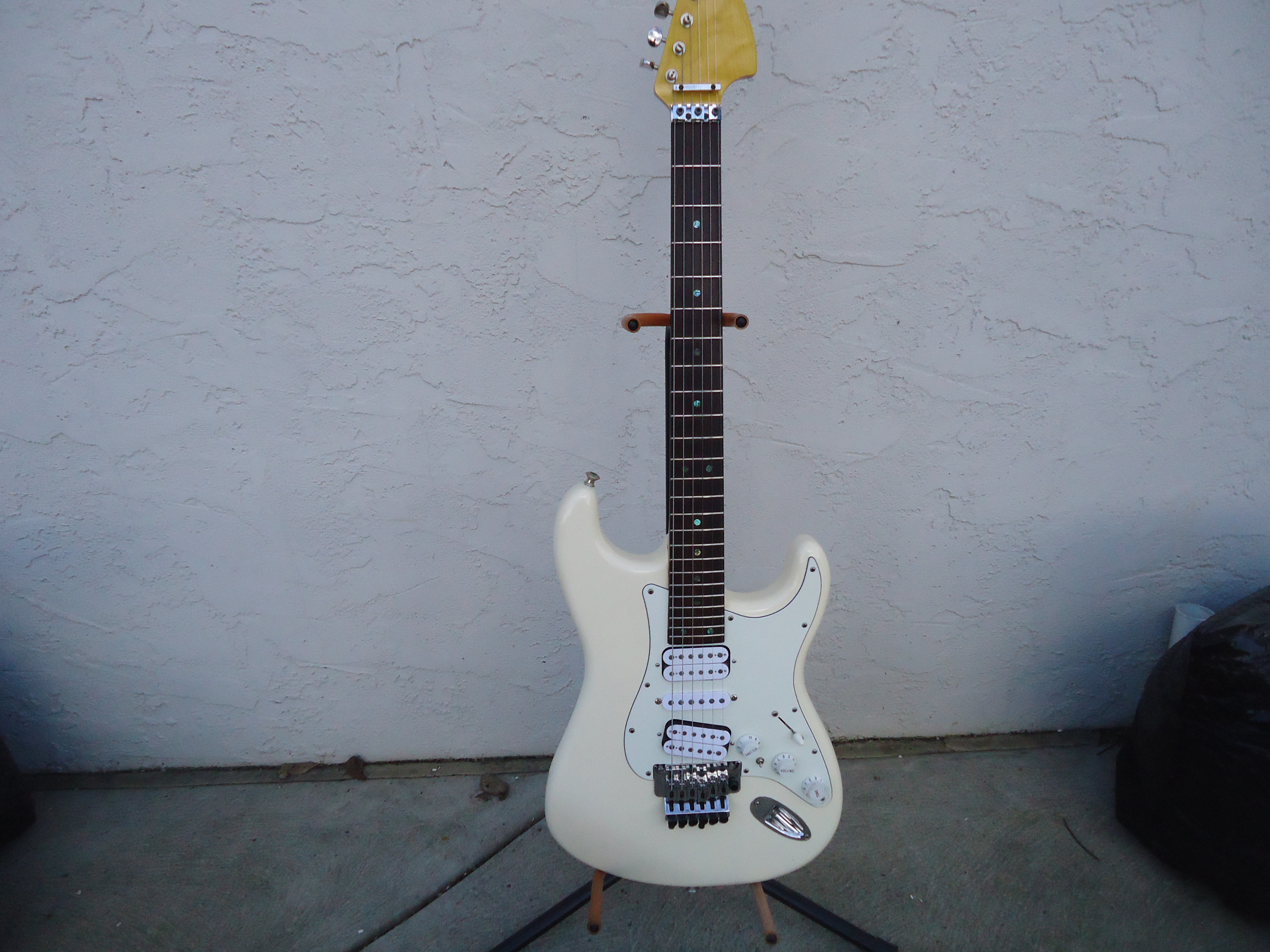 I have to admit fellow metalheads , I thought people would jump on this with both feet when I posted based on the parts used alone but I basically had an incomplete shitty description so we will start over This is a Warmoth Dommenget Mastercaster clone I bought awhile back . Alder body , 24 fret maple neck with a 10-14 radius . It does not have jumbo frets and I'm not sure if the frets are stainless but they have no wear on them Rosewood fretboard non recessed Floyd Rose dive only, 5 position switch and a switch to bypass the controls and go directly to the jack, coil splitter . The luthier that built this gets a hands down 11 on a scale of 1-10 on the build Plays great and easy , stays in tune and the kicker is it has Dommenget pickups in it that cost about 900.00 . Full sounding guitar and I will guarantee with purchase you will play like Matthias Jabs . The guitar is the yellowish white color . The first 2 pics were taken outside and make it look like a bright white. 1000.00 OBO and includes the fees and shipping . It is guitar only I'm out of gig bags and cases but it will be packaged well.