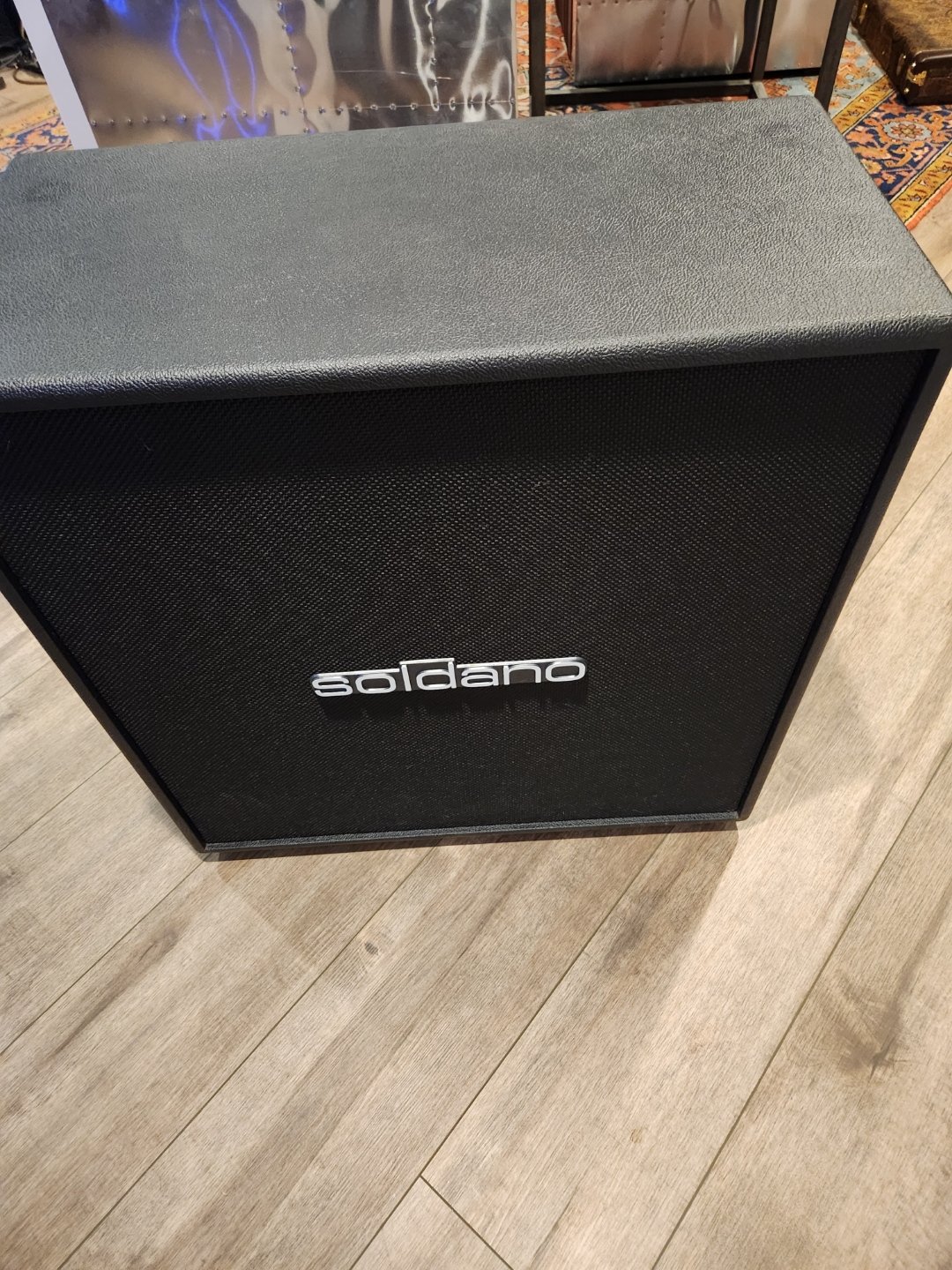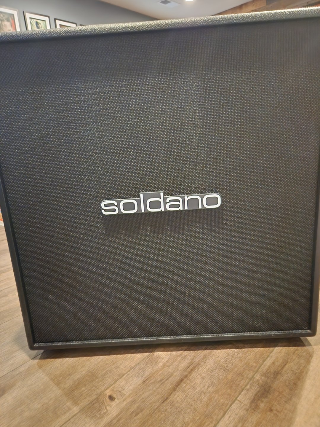 Soldano 4x12 loaded with Celestion V 30's and Celestion Creamback 75's in an X pattern. In overall great condition with few marks on the cab mainly from a head sitting on top.