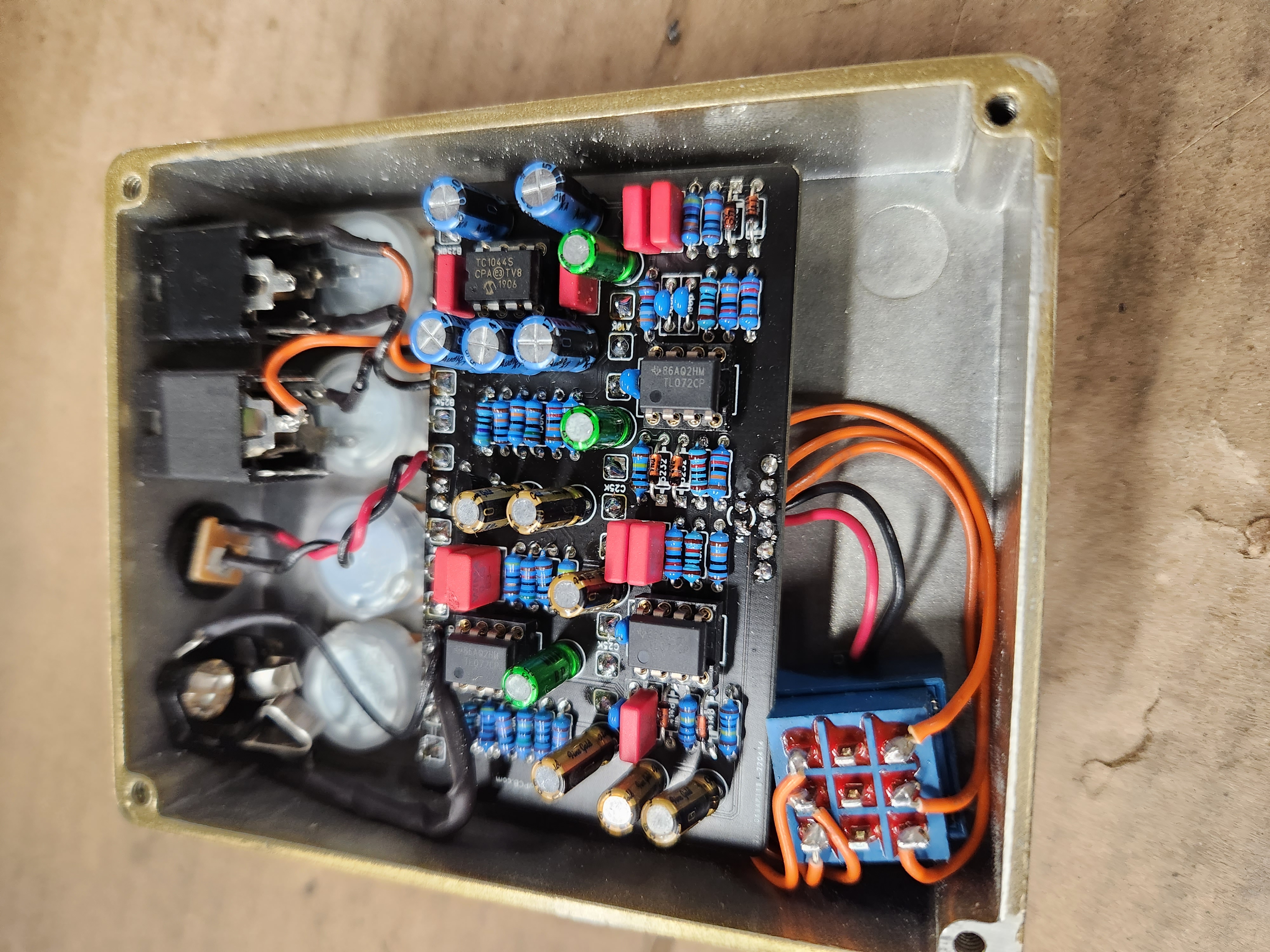 A mildy tweeked and modded VH4 clone .... complete with LED footswitch ( red ) clear epoxy top and custom graphics for JackBootedThug !!