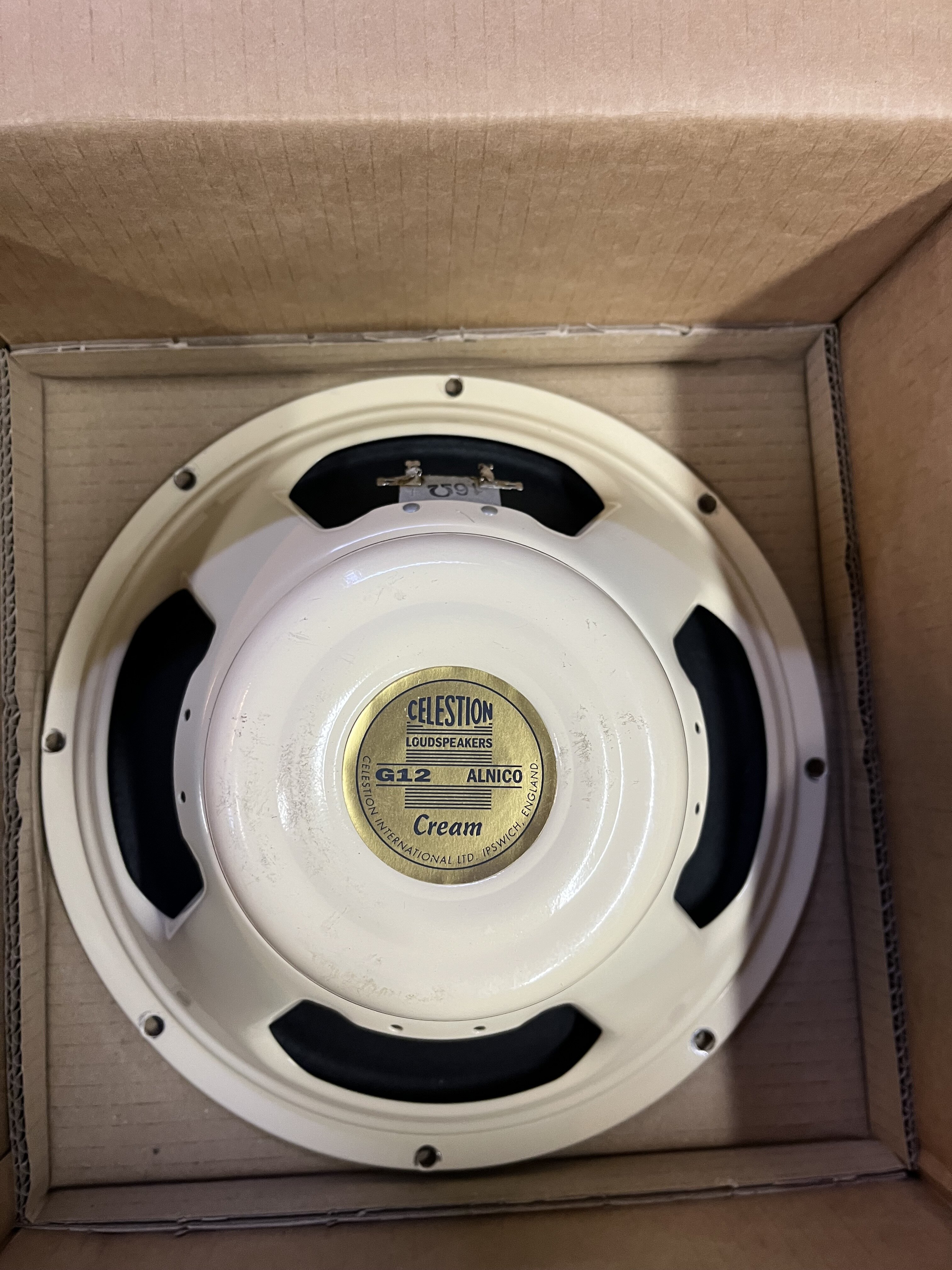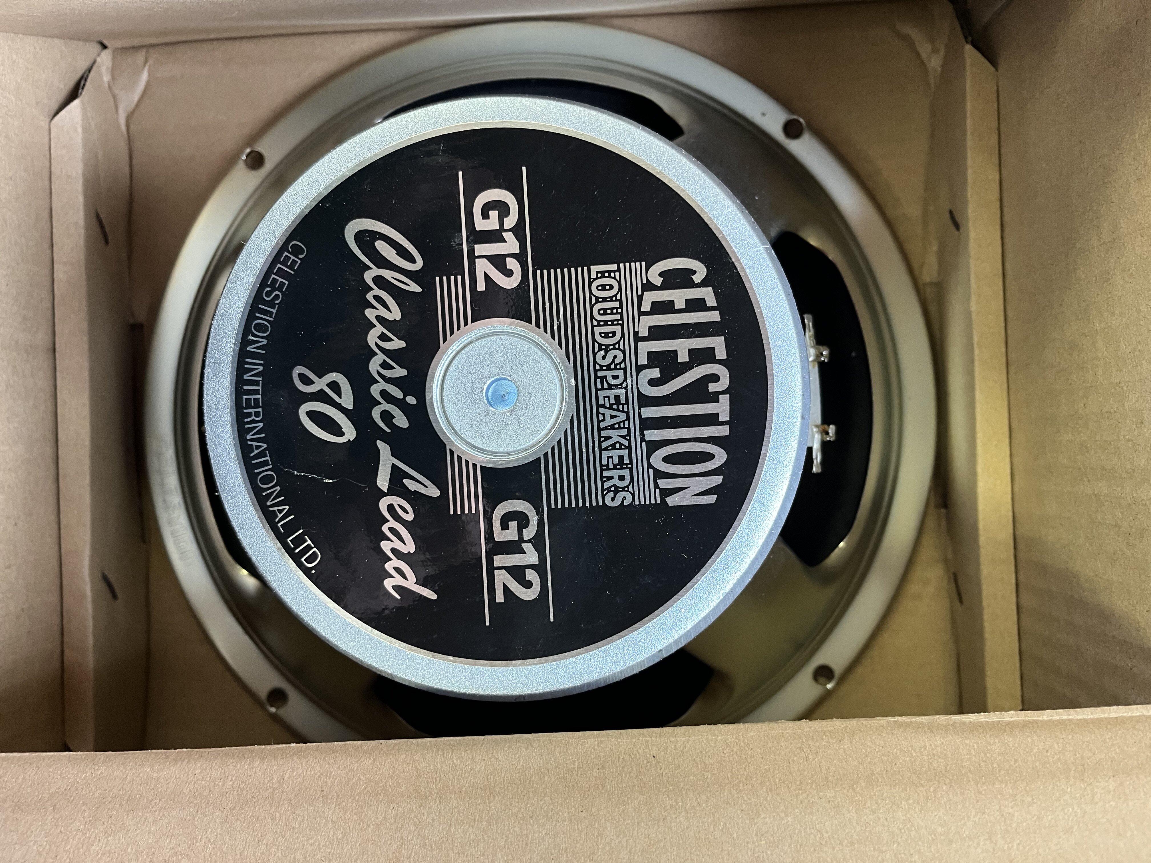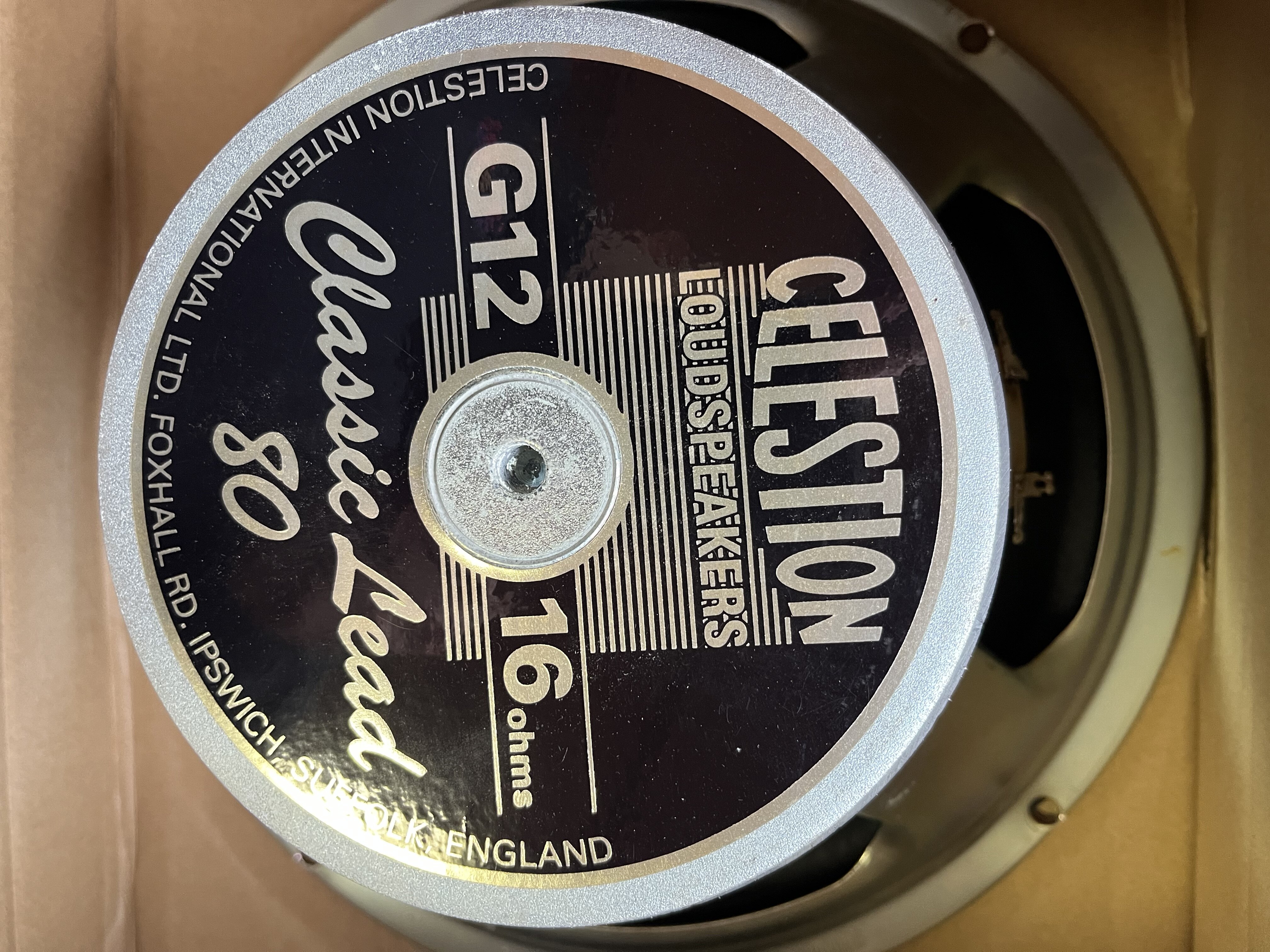 Celestion 16 Ohm Lead 80. There is a little area that is indented on the dust cap. $90