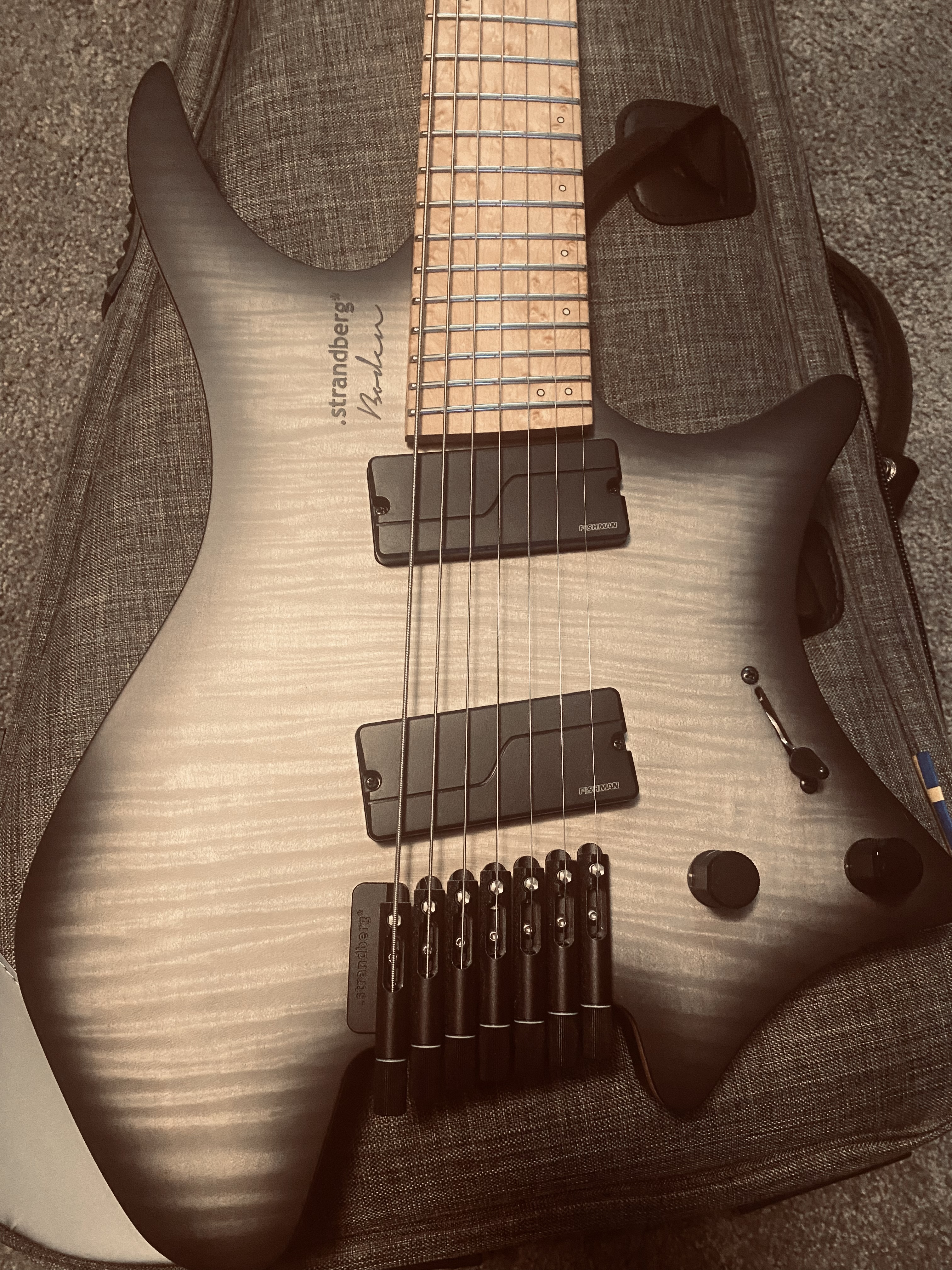 Strandberg Boden NX series original 7 string in charcoal gray.