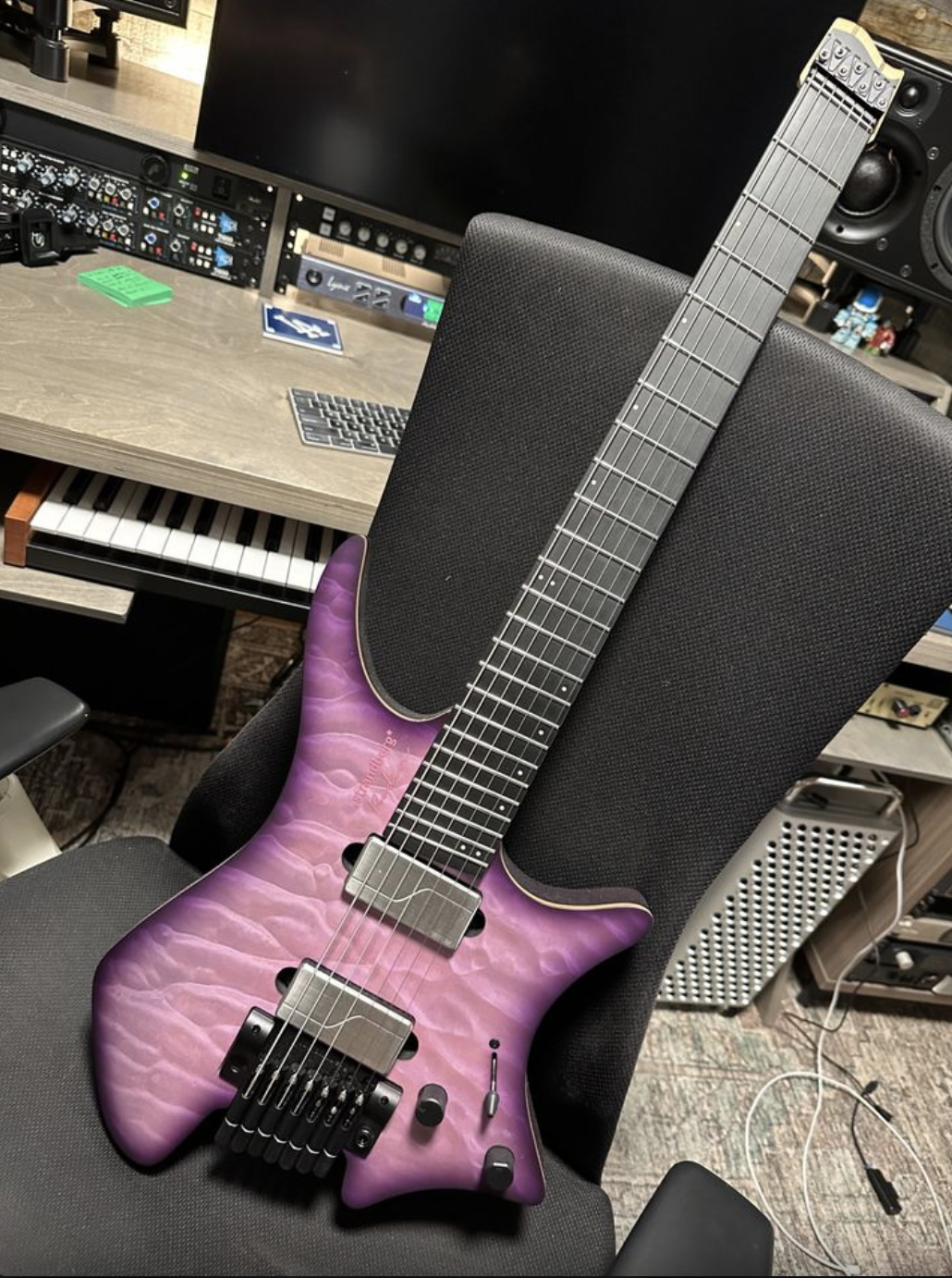 Like new basically. No dings, barely used. I tried, but couldn't wrap my head around the 7 strings. This is a great playing, great looking guitar, with a great setup. Out of the bag ready to rock. Will ship in the original shipping box from Strandberg.