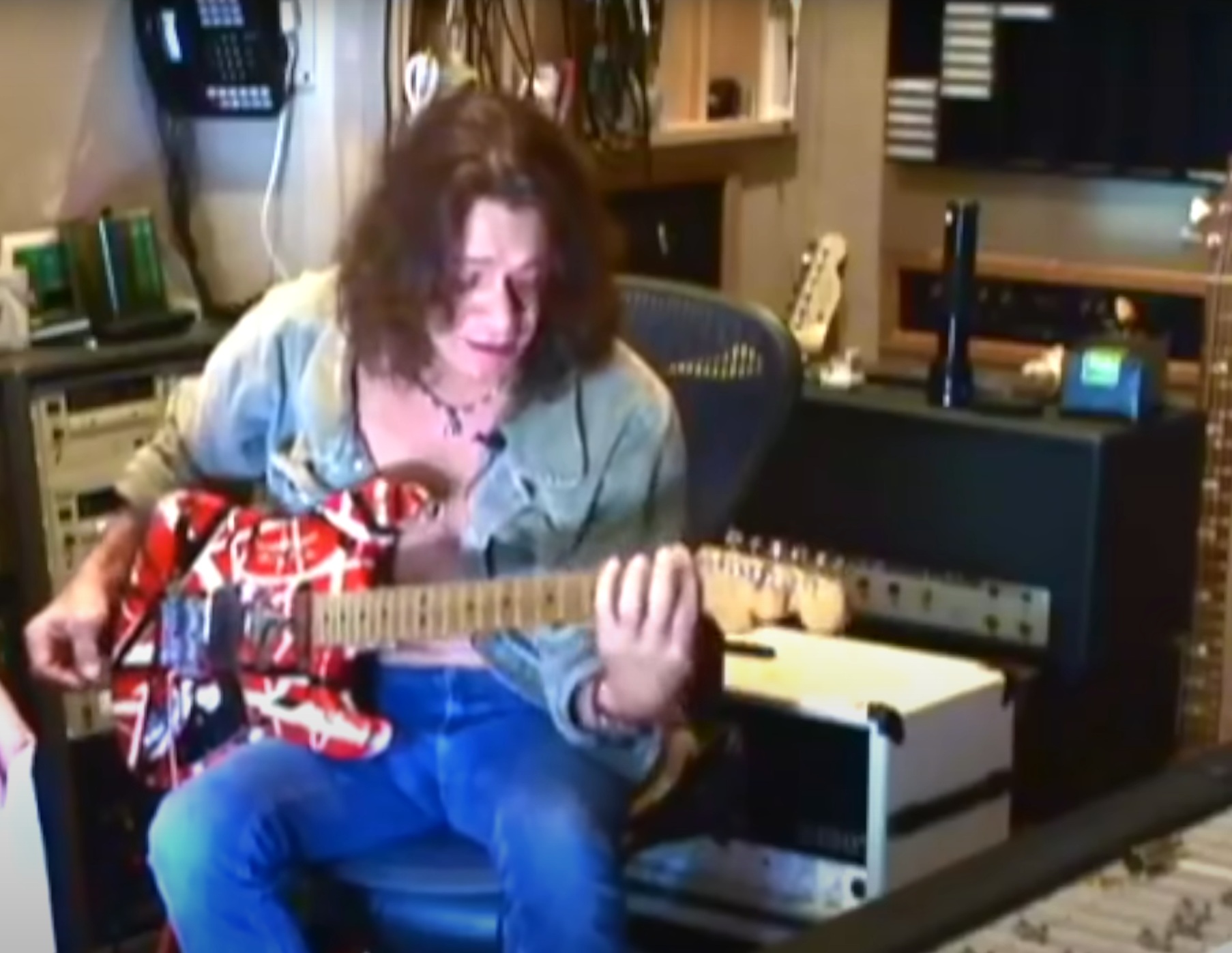 finally there is this obvious marshall head in ed's studio it sits on top of 5150 amps this means it was still heavily used. Eddie had a hangar with lots of amps. Whatever was in the studio recording floor was used. As this amp was not in the hangar but in the studio room it was used on some recordings :