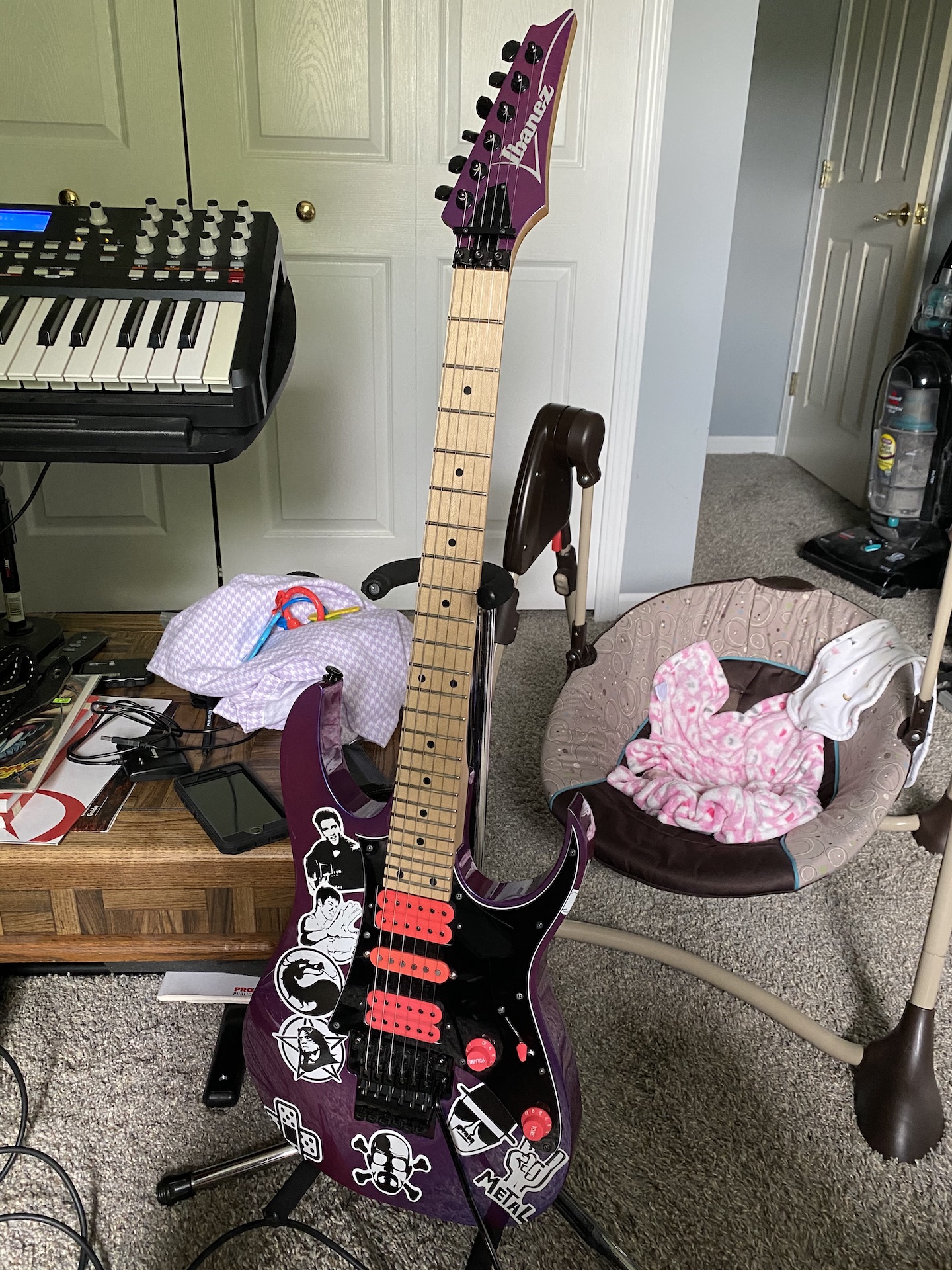 Man to each their own, and more power to ya....but respectfully, man those stickers covering up that pretty finish. Maybe the new ones don't do like the old ones(I have a purple neon rg550 1992)...that has the flip flop blue/purple. It's your guitar, don't mean to dis your axe there....makes me sad to see it covered up!