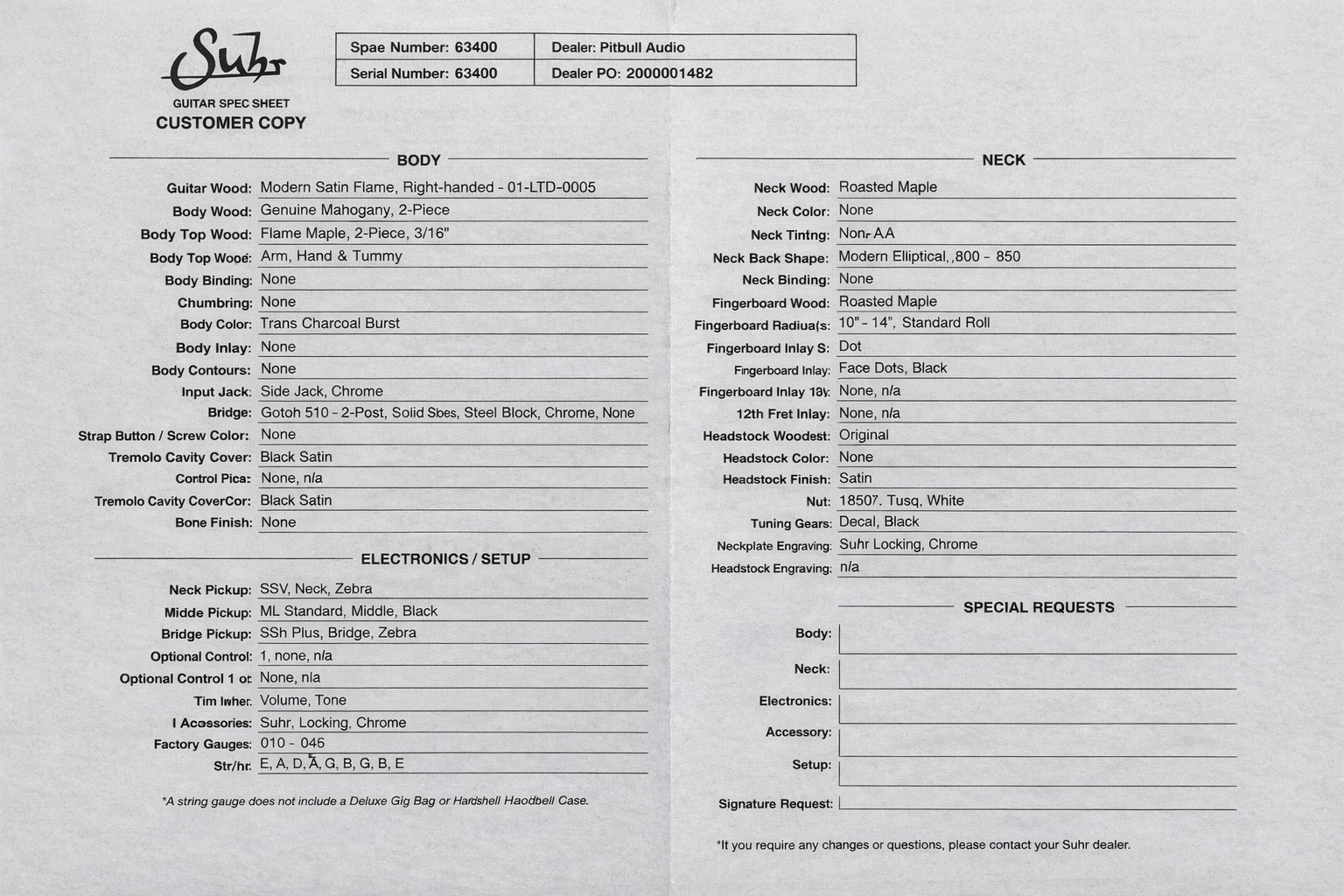 Limited run Suhr Modern in excellent plus condition. See spec sheet in photos for details. Since photos, I’ve installed Wilkinson Locking Saddles for improved tuning stability. Weighs 7.05lbs.