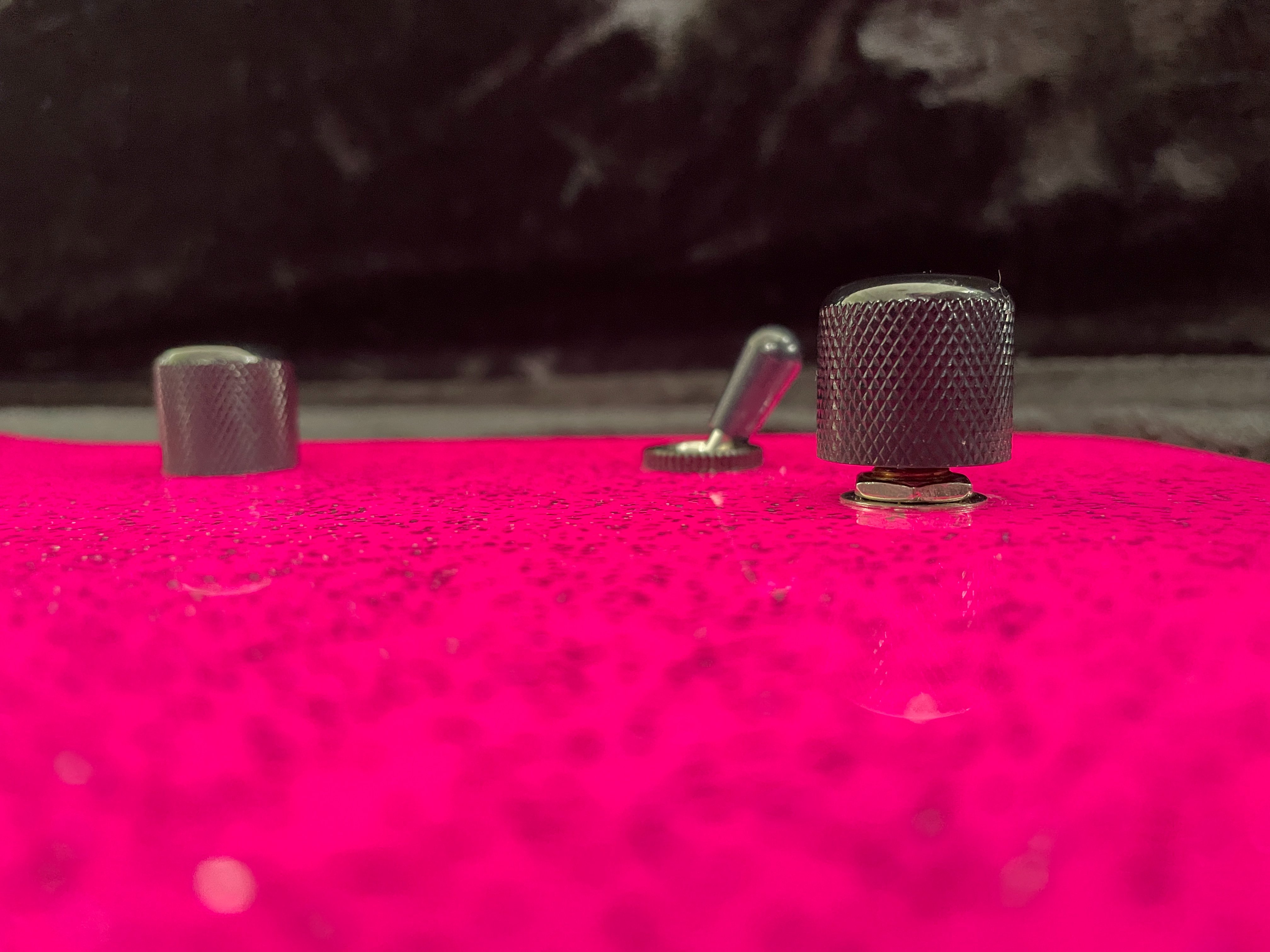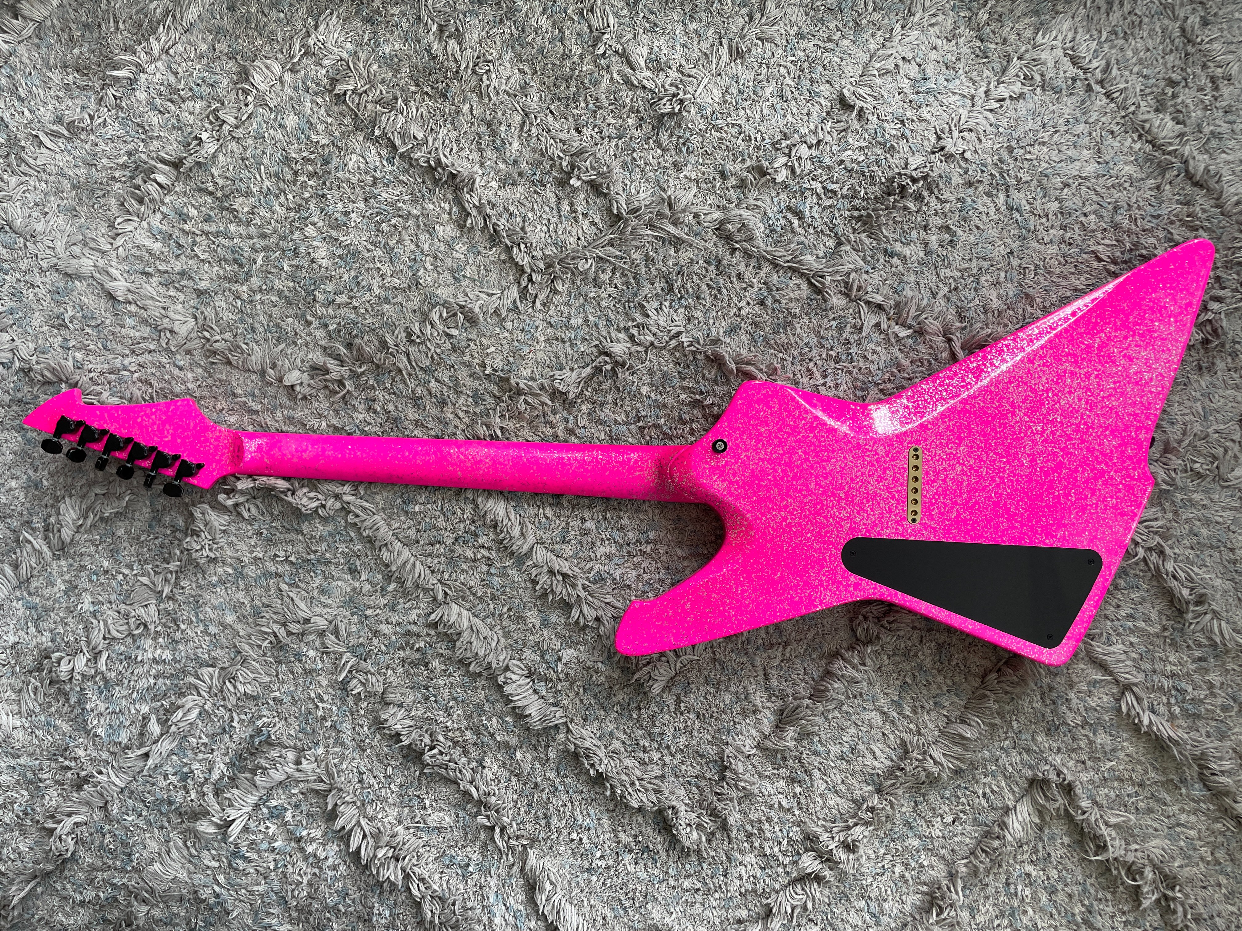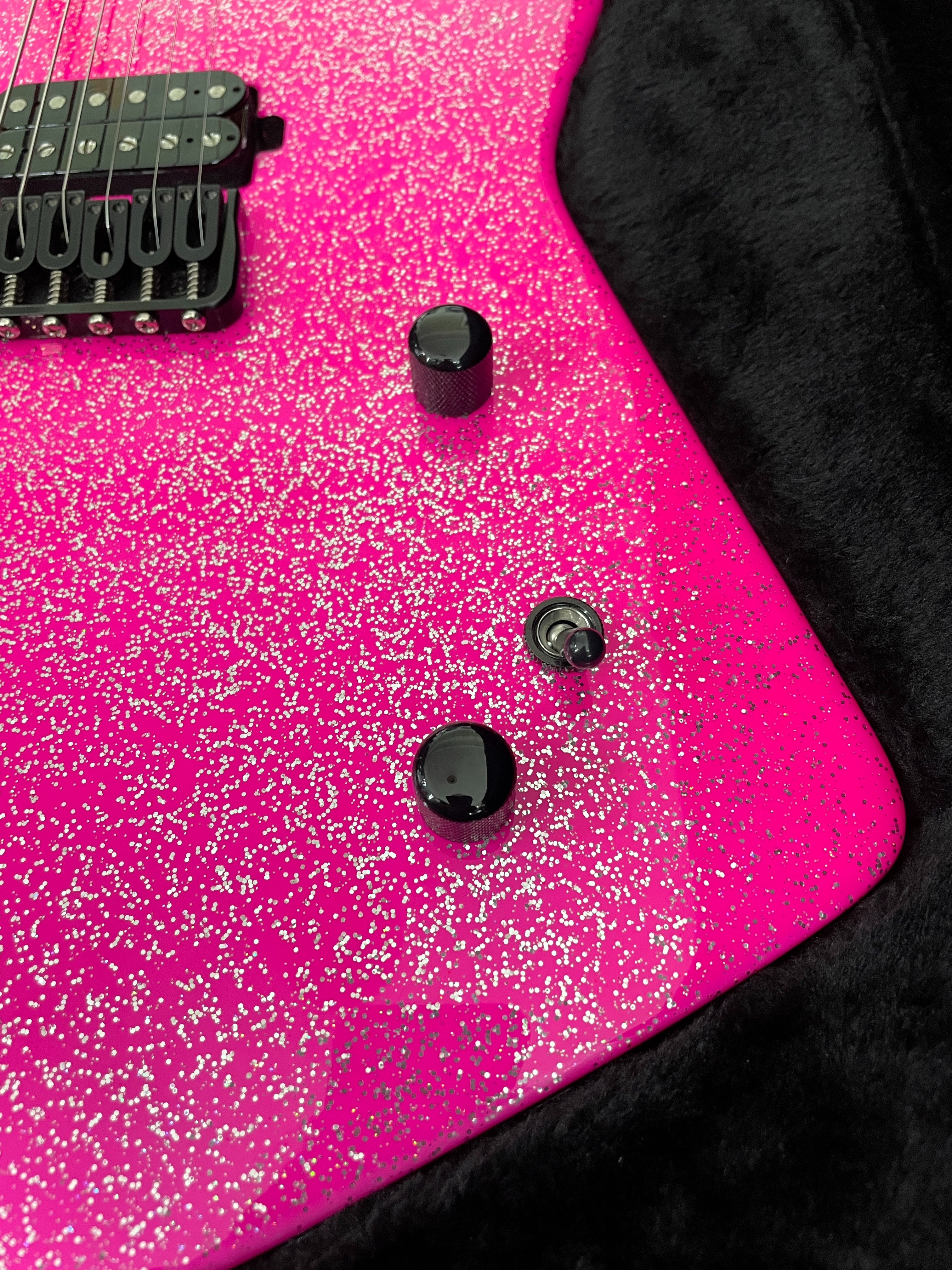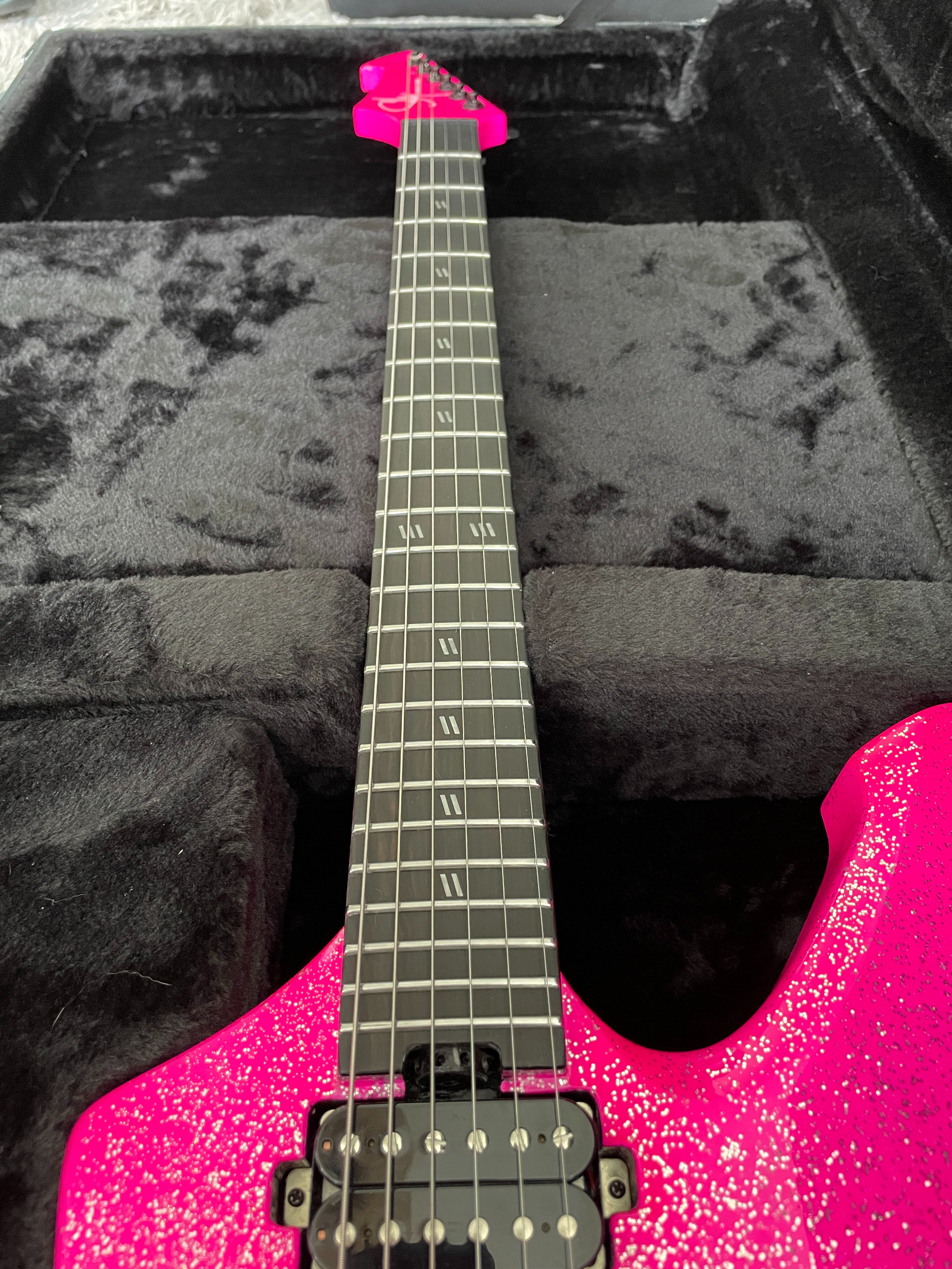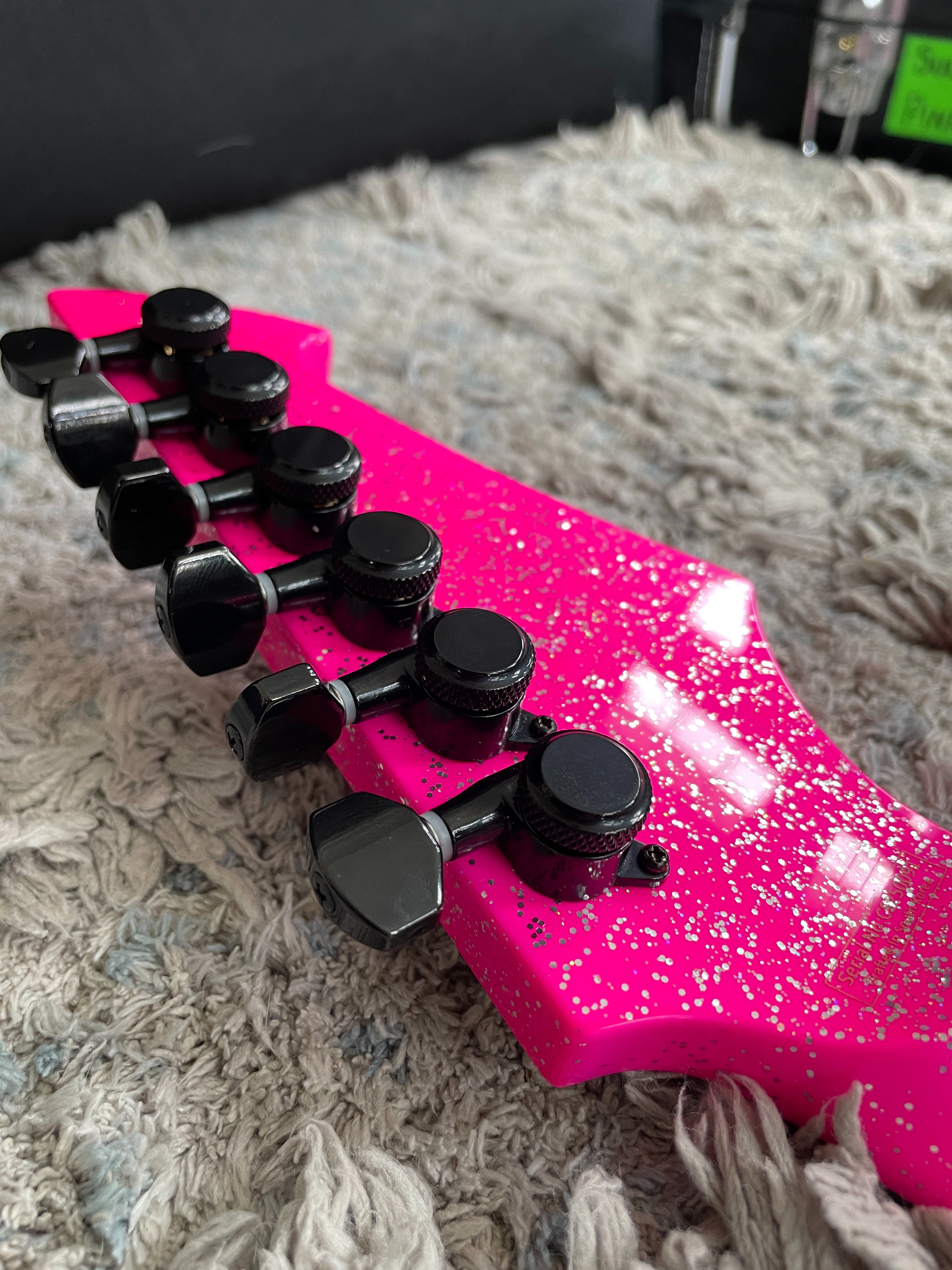 This plays and sounds great. I absolutely LOVE the pink sparkle, but the guitar itself is too big for me. I wear my guitars super high and this just doesn't feel good on my shoulders. My loss is your gain.