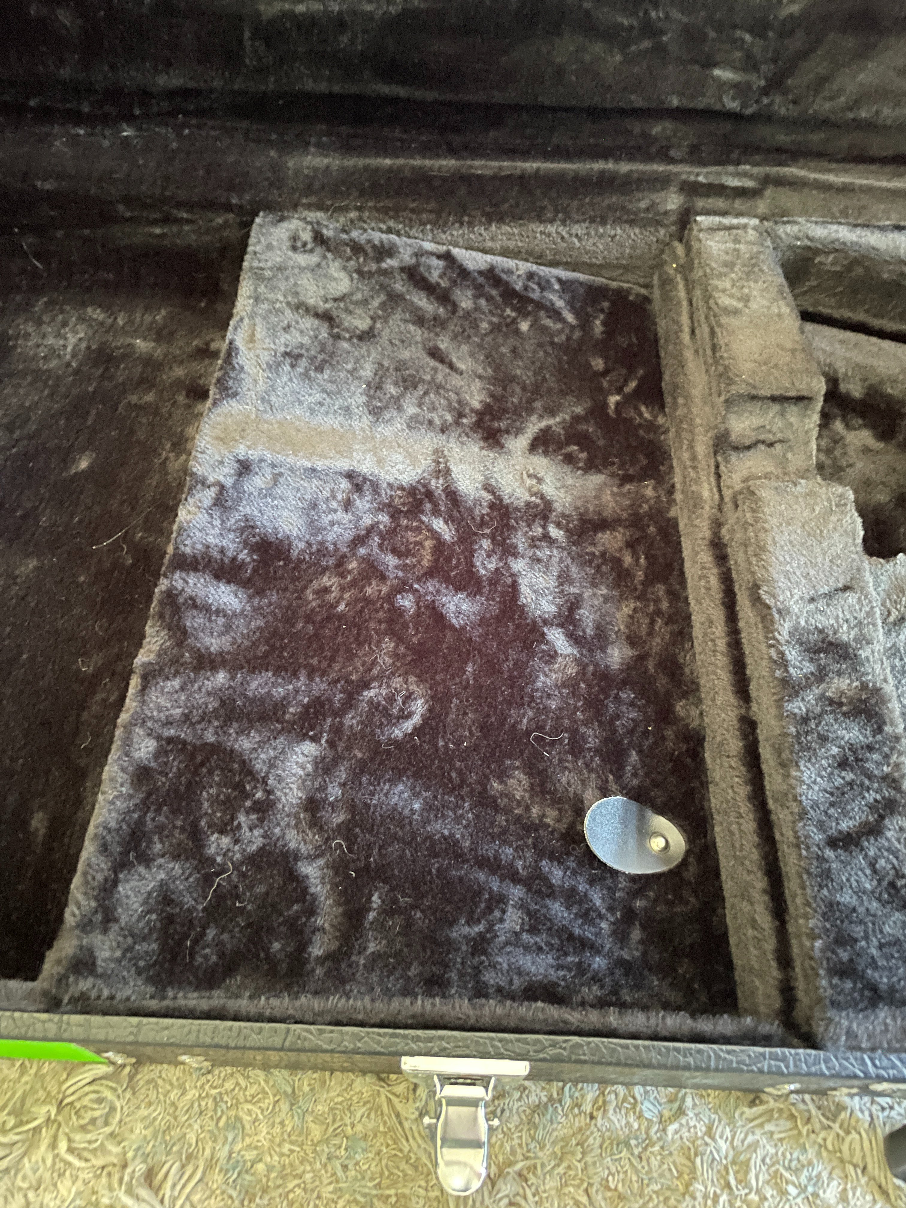 Branded hardshell case included. The pocket/opening/storage in the case is a bit ill-fitting. The swing-top cover rests flat sometimes, but sometimes it caves in.