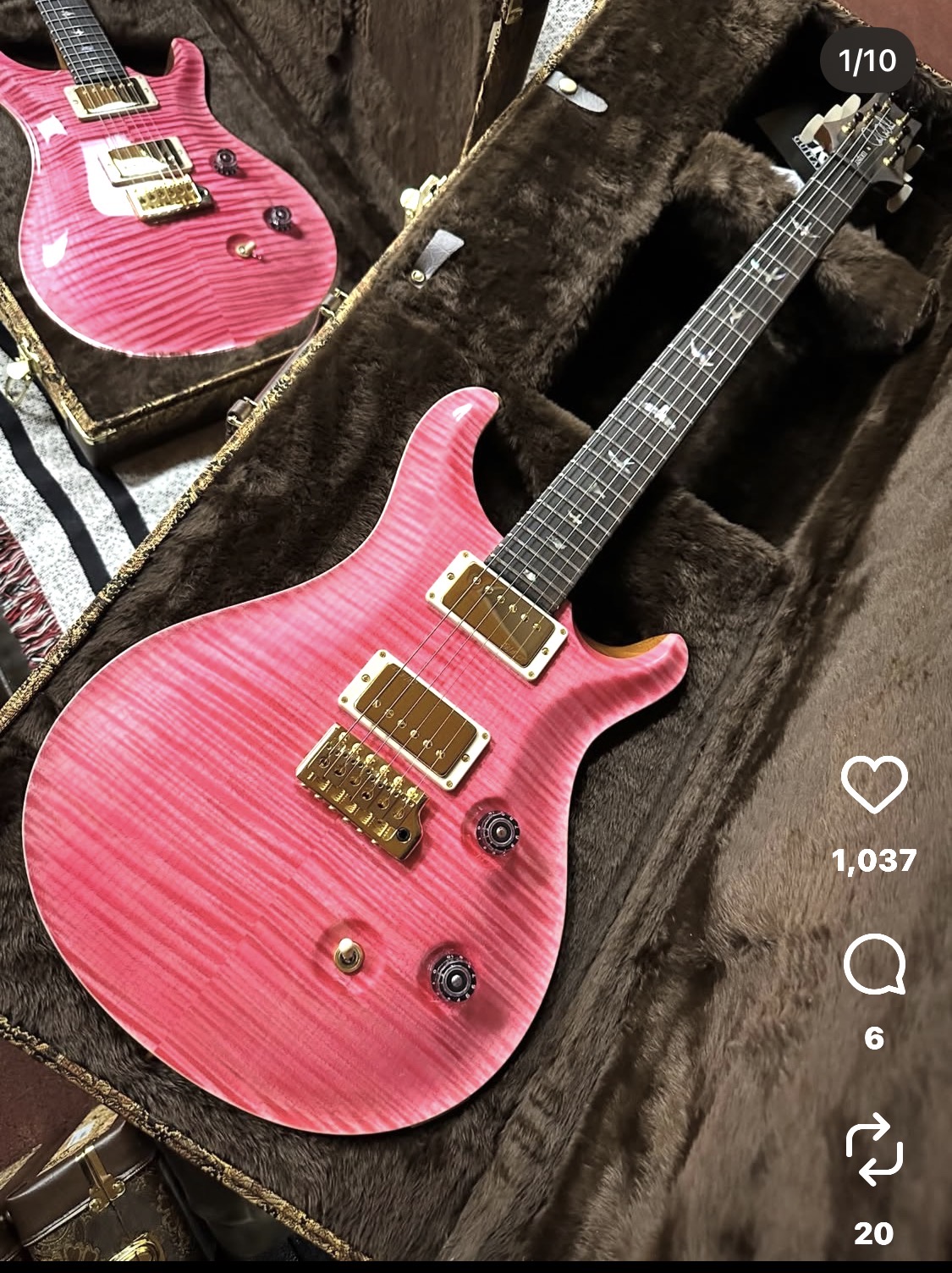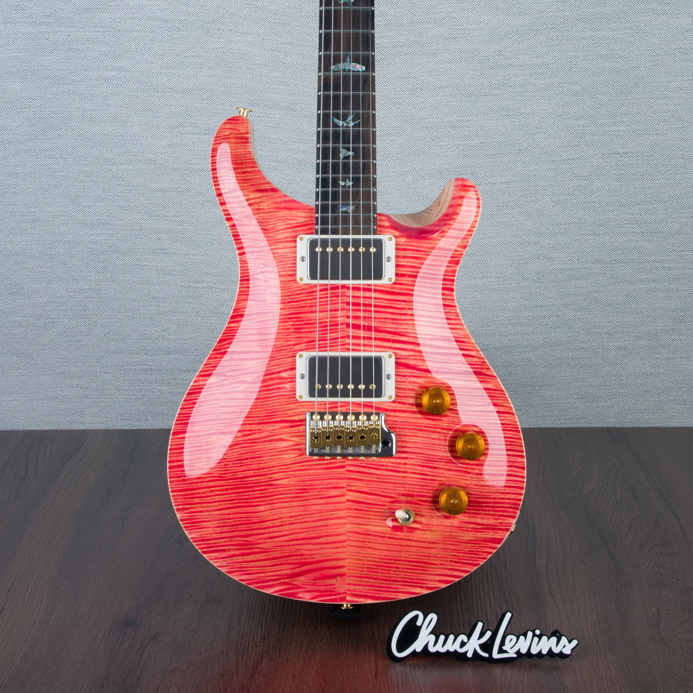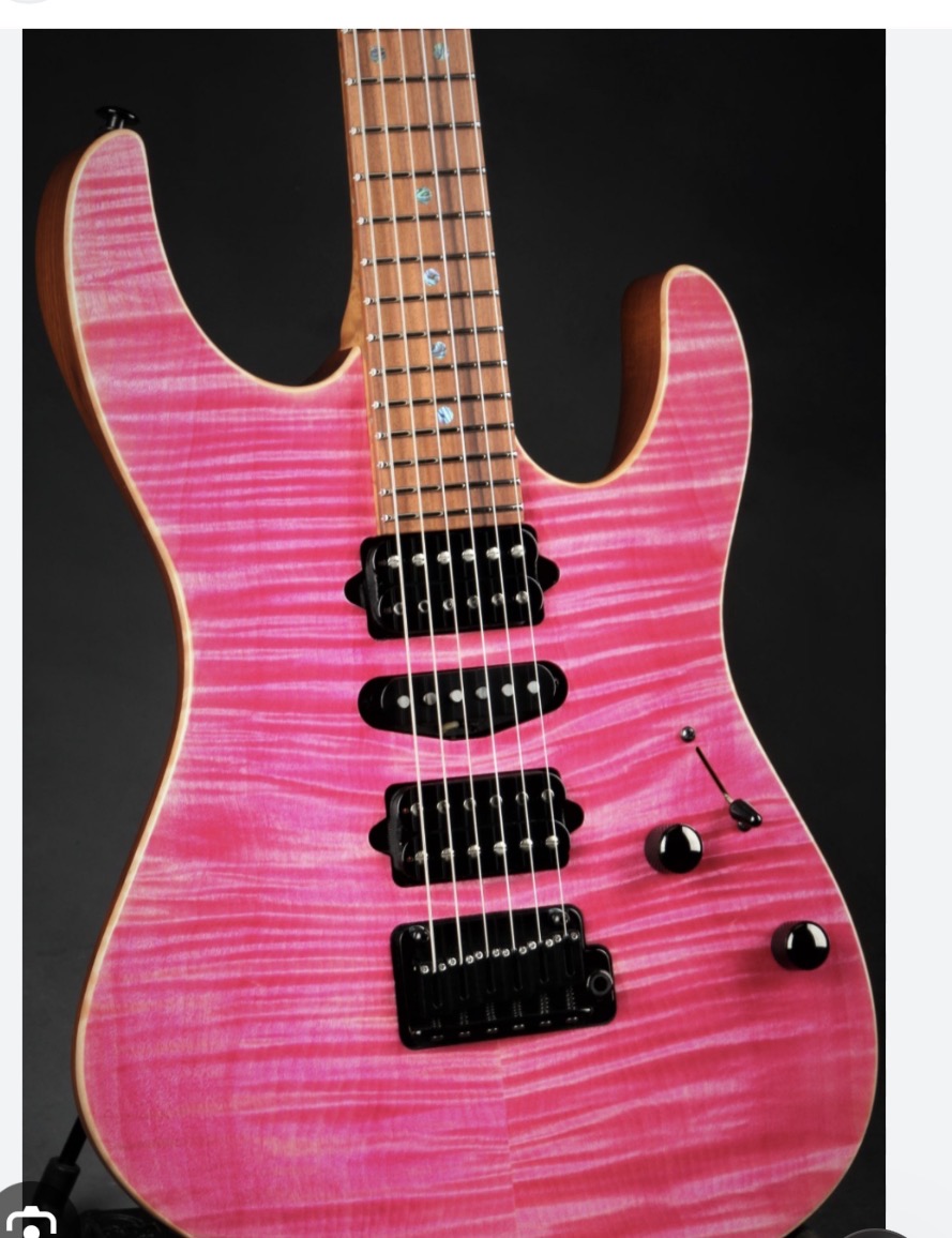Waterfall Burl Maple top- finished in trans Neon Pink (prs calls it Bonnie Pink, but sometimes does “salmon” which adds neon orange as well) I want the top to be vibrant neon pink (Maybe even slightly lighter neon pink)