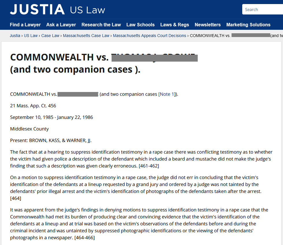"rock and roll fueled gang rape on a tour bus!!!" Made the TV news and all the papers. Next thing you know it's on TV that he's been sentenced to Walpole State Prison for a significant sentence.