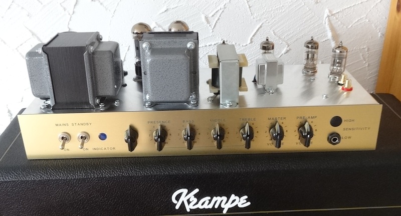 35 Watts (or so), 4 ECCs, tube loop, tube reverb. Single channel from clean to crunch/mild lead. Class A/B w/presence and a permanent depth (100k/4n7 after a 47k NFB). Housed in a small box (45ish) chassis/enclosure.