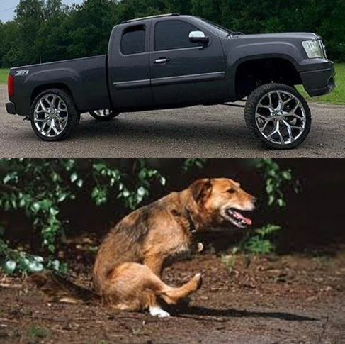 The other day my wife and I were out. We're driving down the interstate and she say's that truck must have have worms. I'm like what the hell are you talking about. She points and says that truck looks like a dog with worms dragging it's ass across the carpet. Now I can't unsee this.