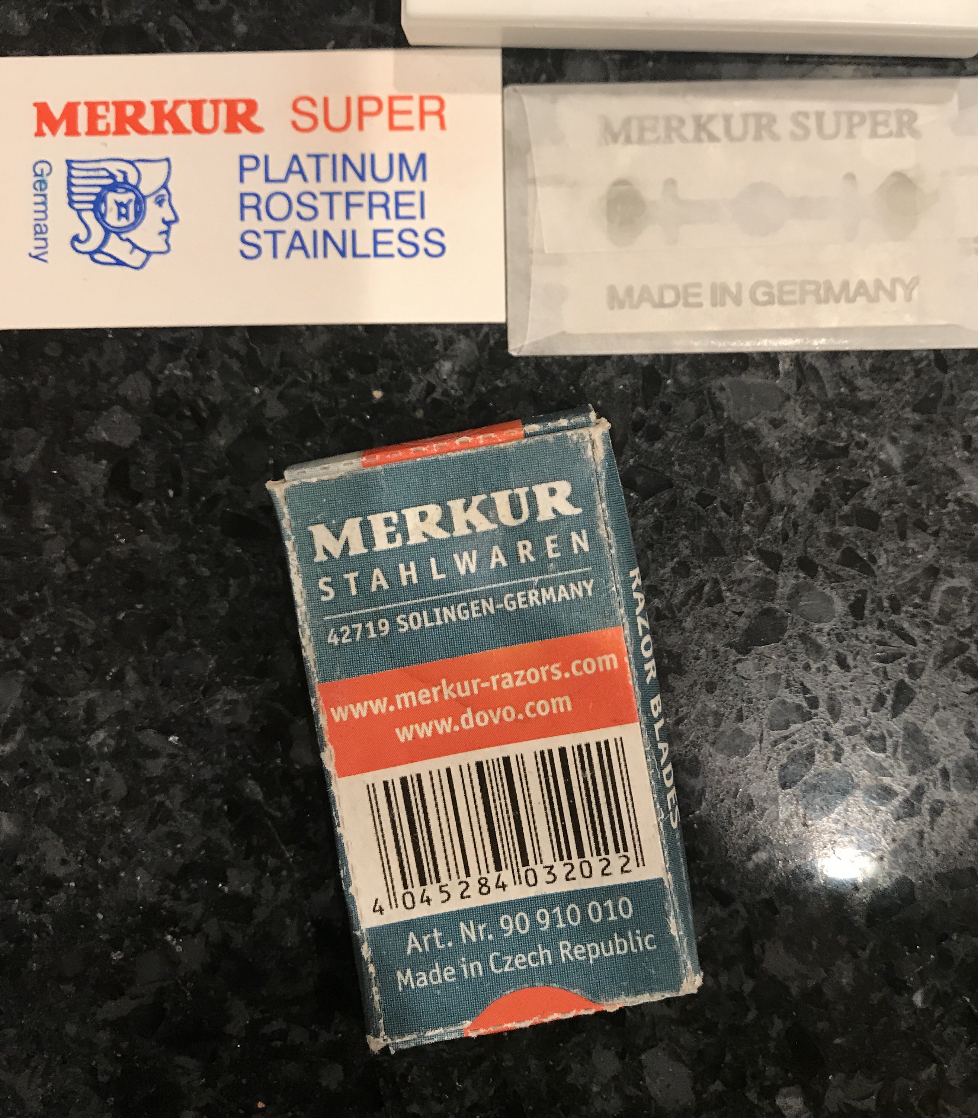 I have to admit even though Merkur is a big name in ( modern) shave gear I’ve never used any of their stuff. I’m sorta one way I guess. I started out with a sampler pack of blades from Maggards and a Gillette New. I really liked Feathers and Plats and they’ve worked well in the 30 or so other ( mostly vintage Gillette) razors I now own. I have three modern razors. An Above The Tie slant, Razorock Wunderbar slant and a Timeless .95. Other than those the newest razors I have are 1968. My birth year/quarter razors. My favorites are from 1931, 1956 and sometime in the 40s.These are the ones I used, but I don’t shave anymore and use the yellow bics to clean up the edges. The ones made in Czech we’re good but not the ones made in Germany, interestingly enough. And I got the half gray beard thing too.
