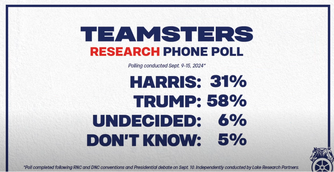 And the west coast local has defied the international and endorsed Harris.So, I'm not a fan of labor unions, especially for teachers, police, government workers,...