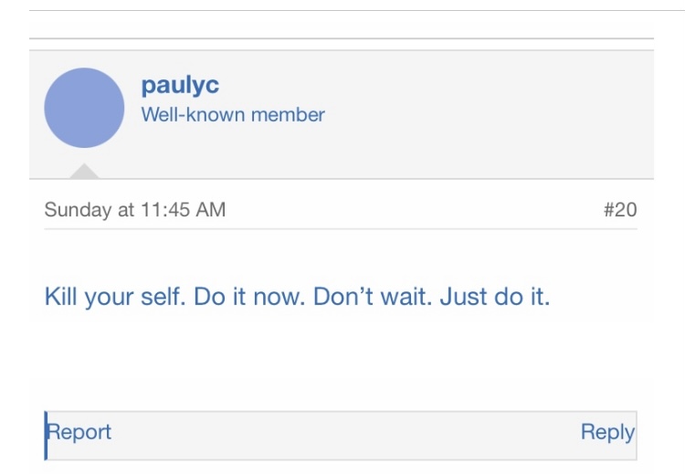 See this is what I’m talking about… people that take things personal when they don’t get jokes. You’ve been taking pot shots at me for months over my humor and when I call you on it you can’t take it… if you don’t like it, or don’t get something just ignore me no need to get personal. I’m very disappointed in you. I’ve always backed you up and this is how you play it… wow!It’s weird, just weird. And trying to get me to go off on you in the pub and the resulting consequences showed your true colors.