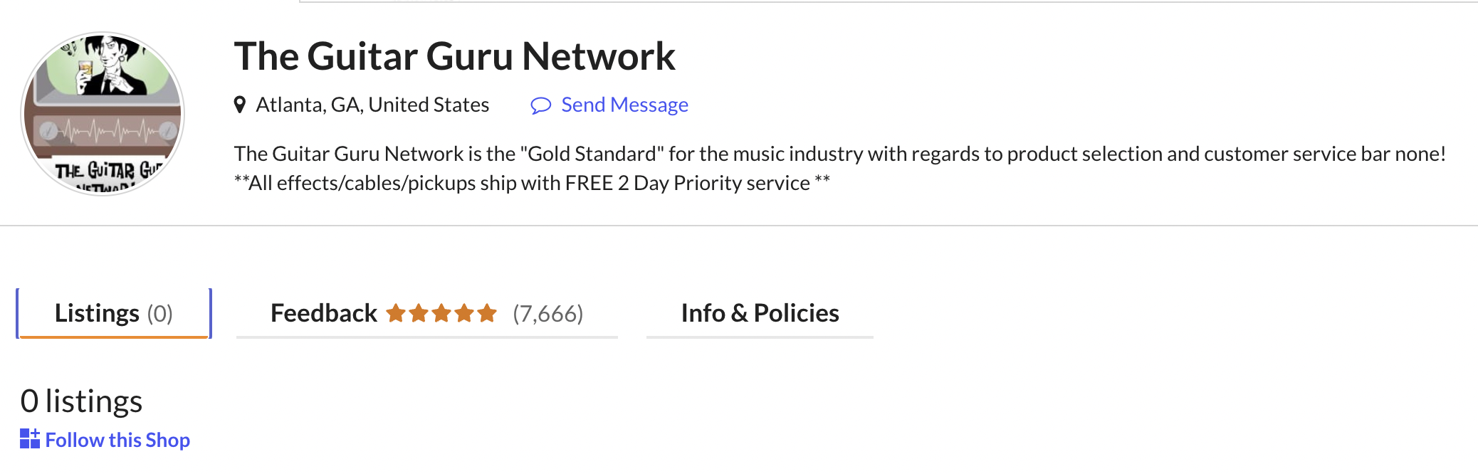 The Guitar Guru Network = The Guitar Drop Shipping Network "We don't have guitar gear, but we'll lie and say you'll receive it soon!" or "Um, my dog ate your amp and I have to order one from the manufacturer!"