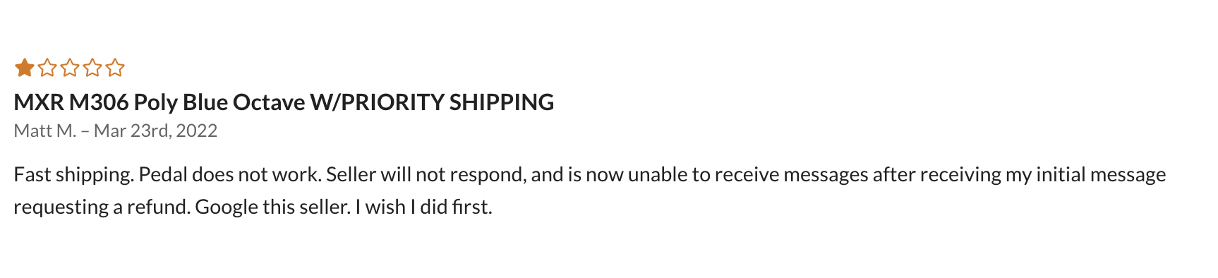 He couldn't even keep the lie straight in the context of our conversation thread. What happened to "The one we have seems to be spoken for as it must have been a pre order." Even though their Reverb site had two listed.