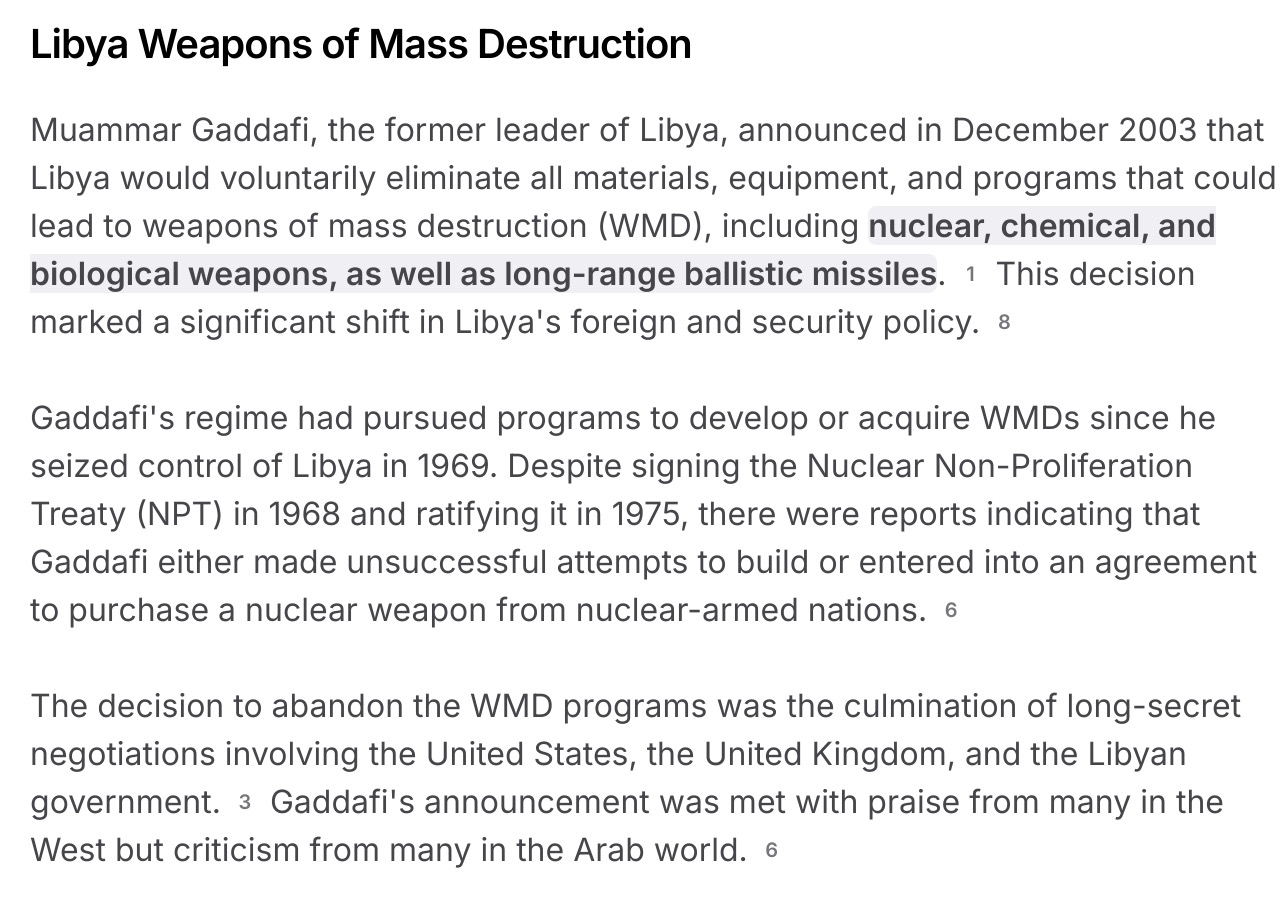 I'll guess Kim Jung etc, who isn't exactly a threat to the US. But he CAN shoot missles 20 miles out into the ocean...fishermen beware!Guess which dictator hasn't given up their nukes and hasn't since been sodomized to death in the streets?