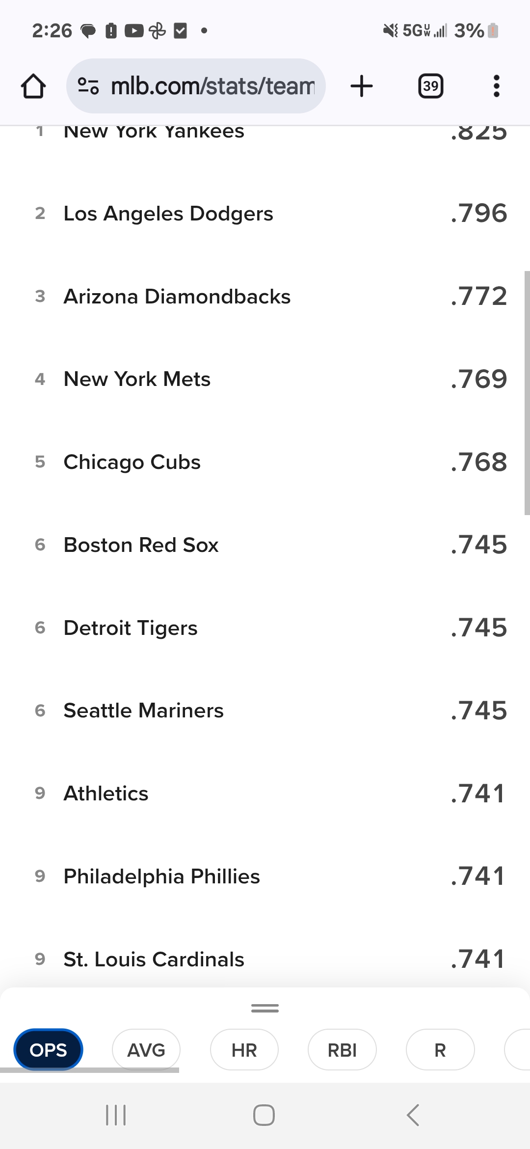 but the Cards in top 13 or better in both Team OPS/ERA....... that has got to count for something and it's a pretty balanced team ratio wise....... Definitely seems like a contender to crash Postseason now.