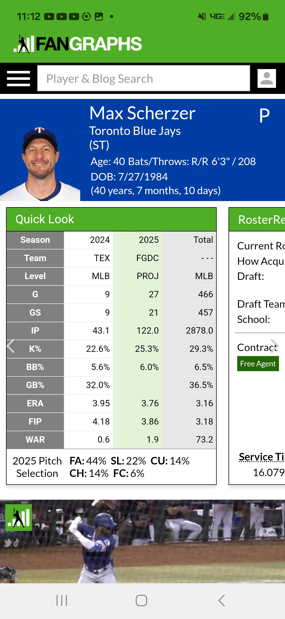 Yeah I hear you maybe not vintage Sherzer but I mean that was a great outing and I can see maybe a 1.5+ WAR...... last season of real Baseball left and here is hoping and still a bit of a coin toss or 60/40...... still a hard comeback but a low ceiling respectfully........ the fundamentals are there especially the BABIP saying he is at a rebound......