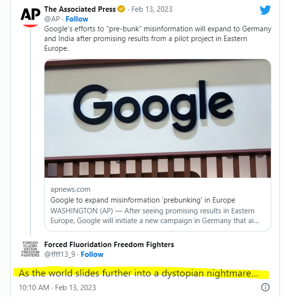Matt Taibbi posted his statement to the subcommittee as another episode in the “Twitter Files” series and it may have been the most disturbing release to date. In this release Taibbi documented what he calls the “Censorship-Industrial Complex.” This is the collusion not only between government and big tech to censor “wrong” views, but also those parts of the so-called “non-governmental” sector that are directly funded by government.