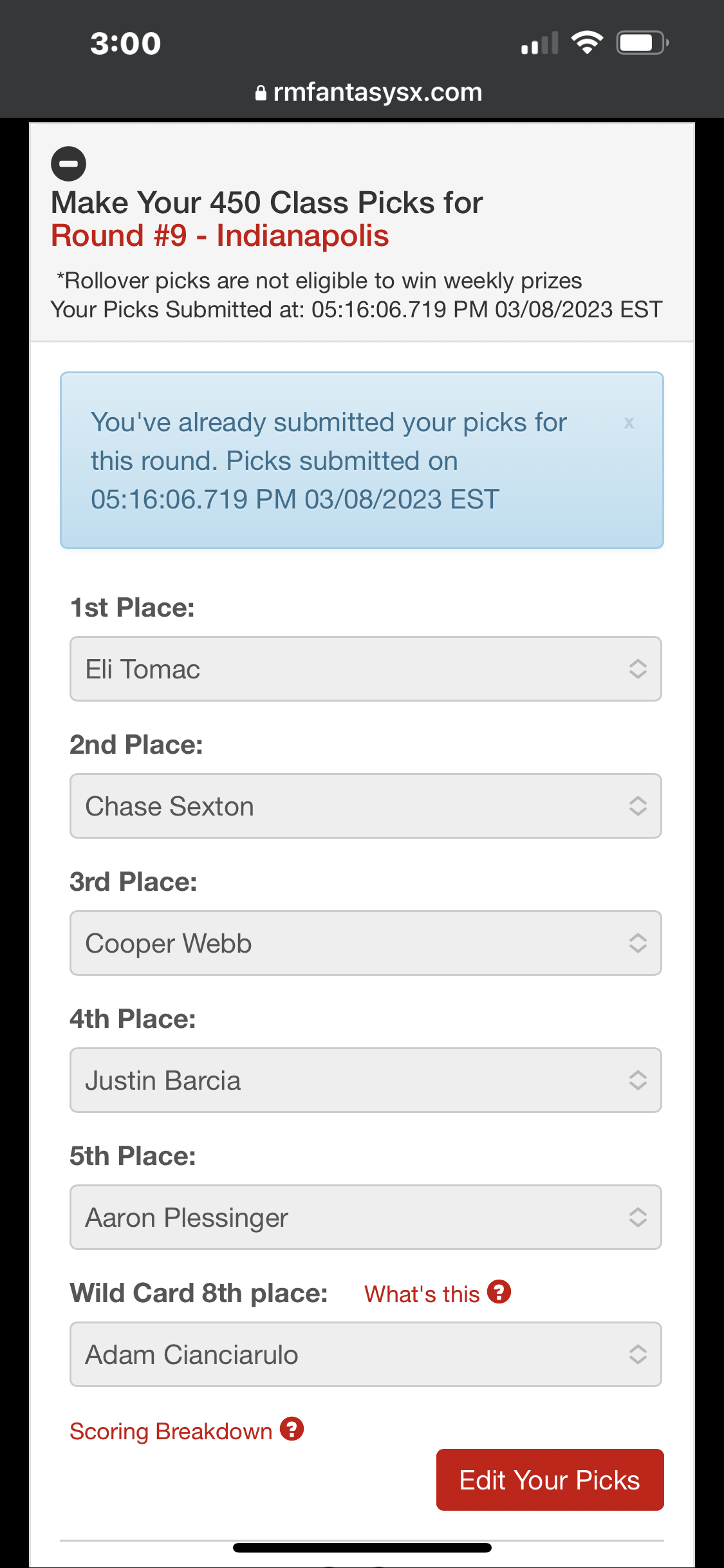 Yep…I lost my ass on my picks![]()