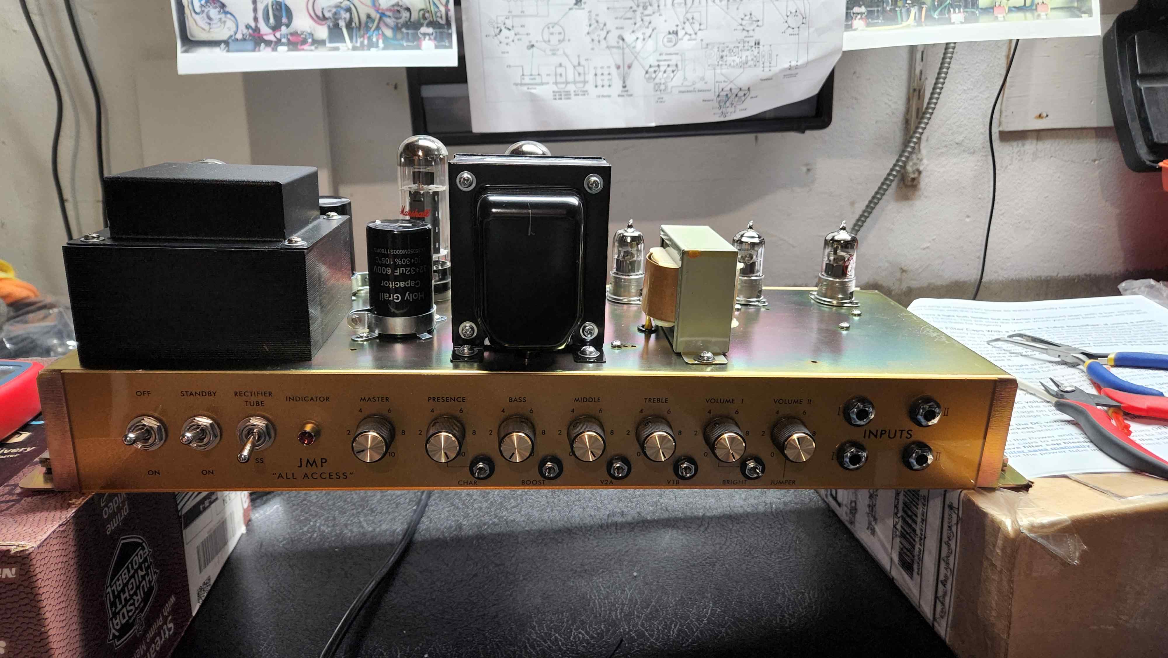 Well, here is my completed Plexi 51 All Access. Biased up to 35mV. I also played it for a while variac'd down to 90 volts and biased at 50mV. There are so many options to go through, but it sounds killer so far! Thanks to everyone in this group for helping me sort through the issues.