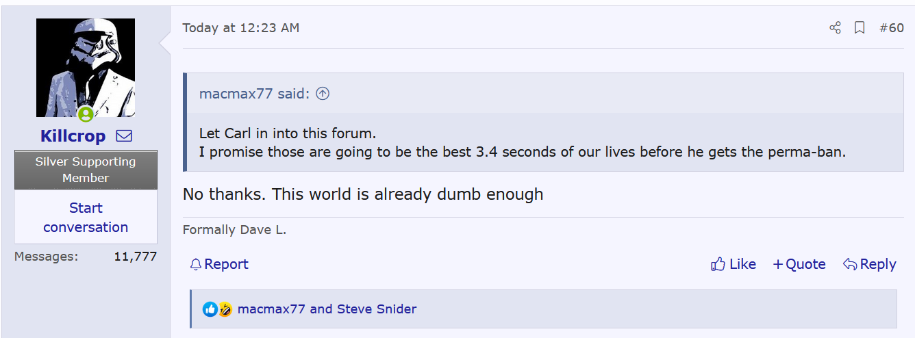 Doesn't bother me one bit. I am just enjoying a cup of coffee checking out the freak show. Life must be so hard for you. I almost feel sorry for you.Their choice. Real question is why does it bother you so much? Another guy with a big mouth. assholeView attachment 87577