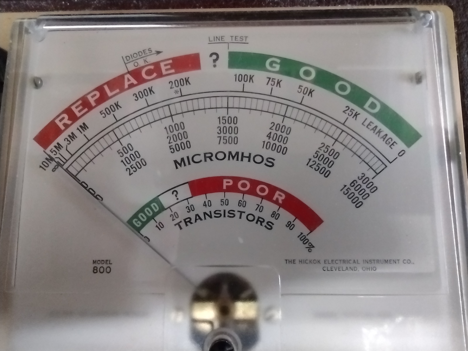 I think the issue comes from the way you test for pass/fail and then test for GM on this Hickok 800. To test for pass/fail you would use the supplied settings on the roller for a given tube and set everything to that to start. Once everything is warmed up, you do a line check to make sure your meter is reading "zero" and then hit the GM button and that gives you the pass/fail on the tube. I usually set a timer for about 2 minutes to make sure that the tube is warmed up, then check for shorts/leaks and then check for pass/fail using the bias and english settings.