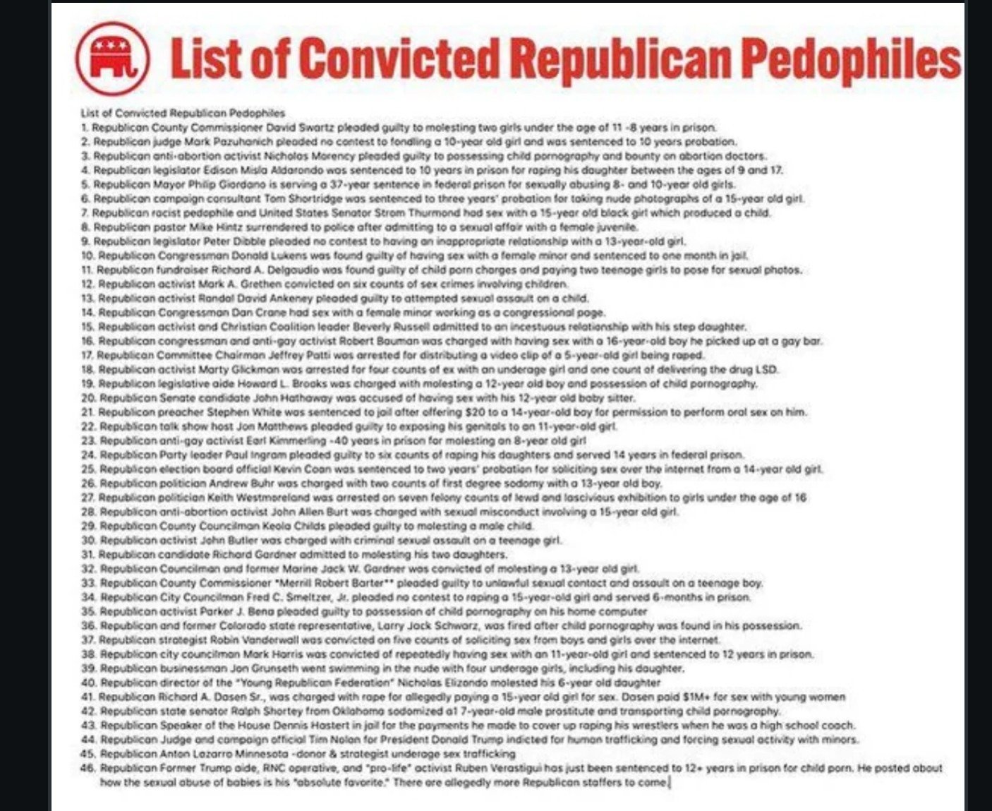 Not everyone. But definitely Trump, and also this listAnyone who thinks everyone is a pedo must have had their non no spot violated.